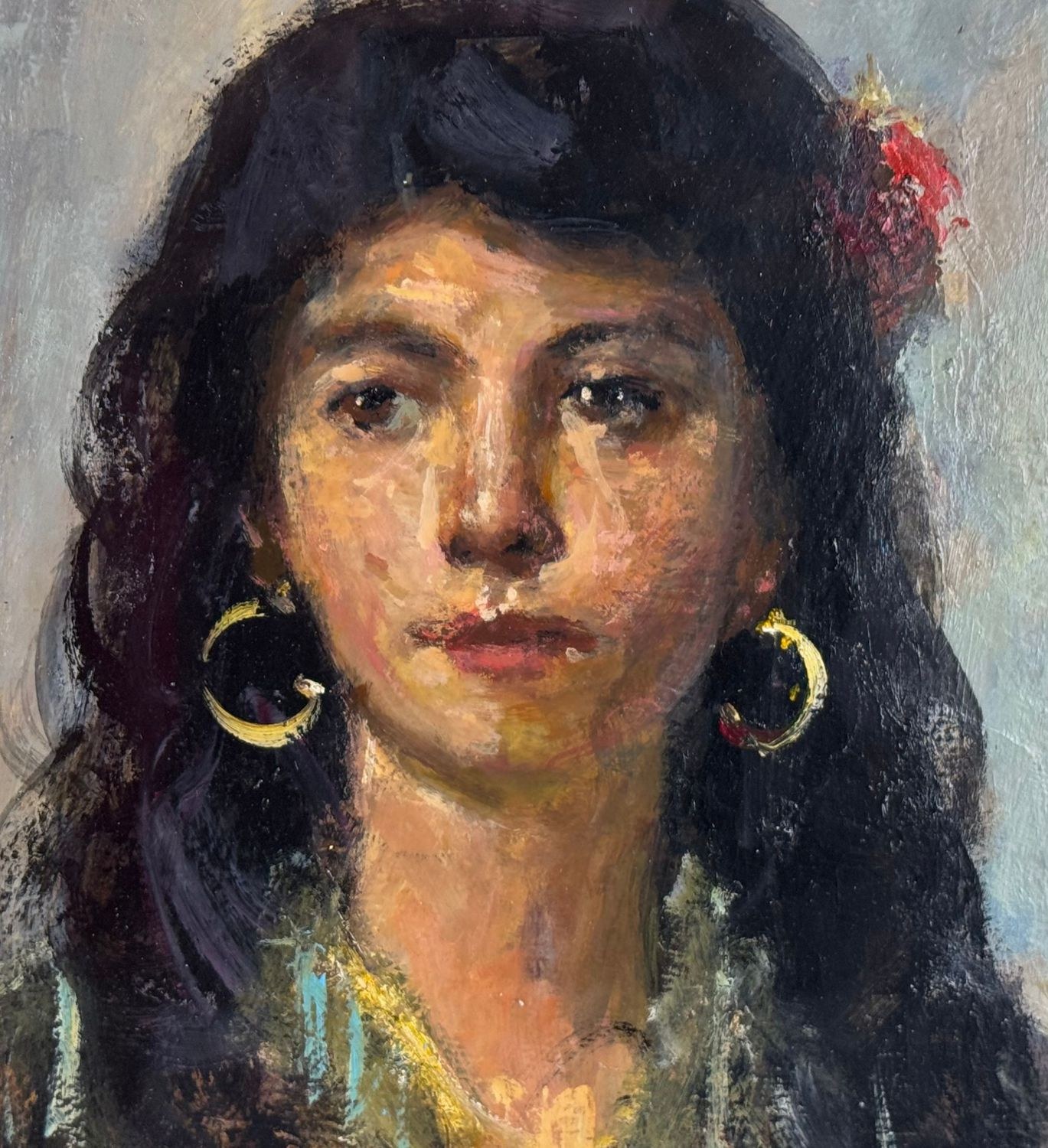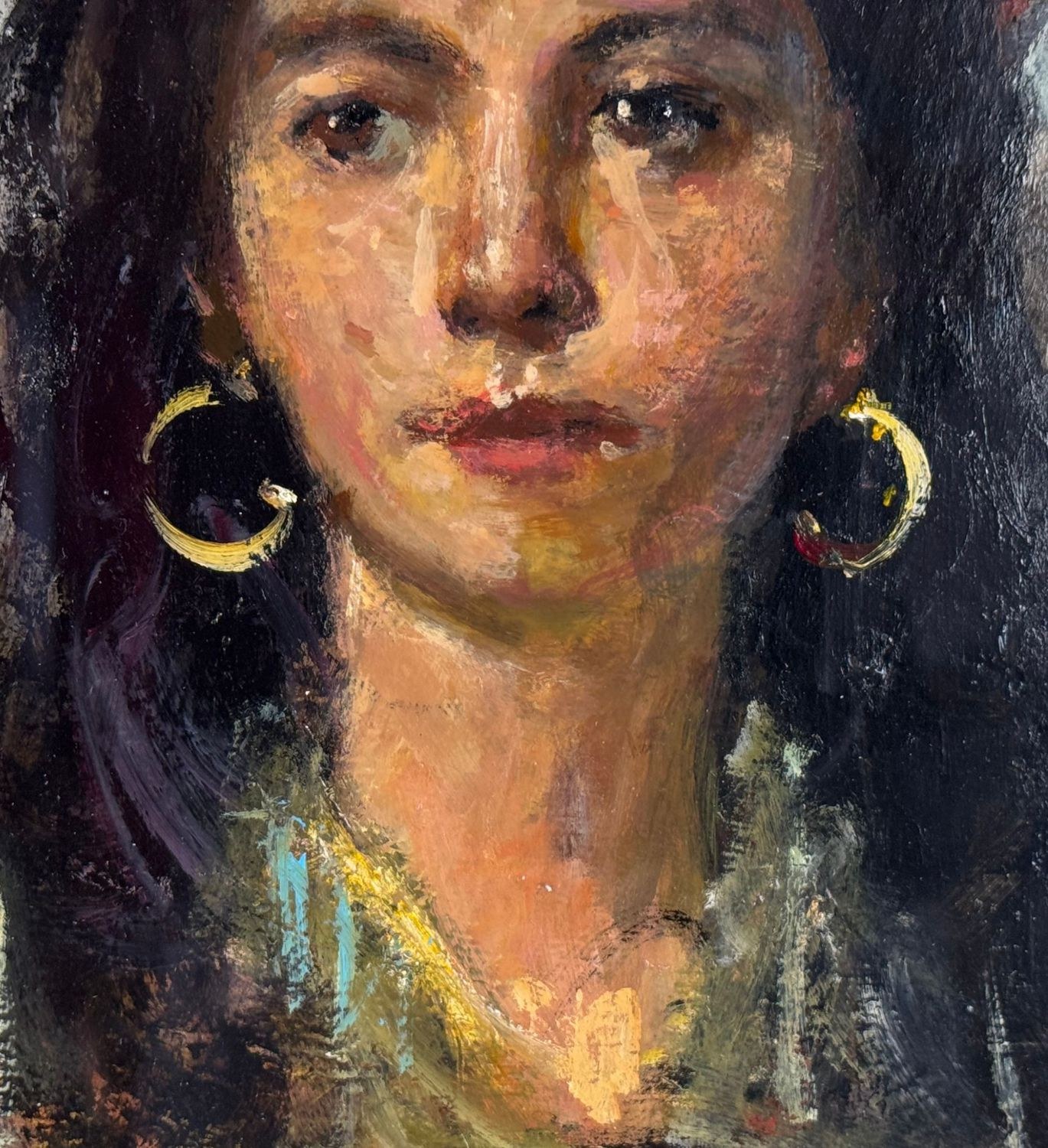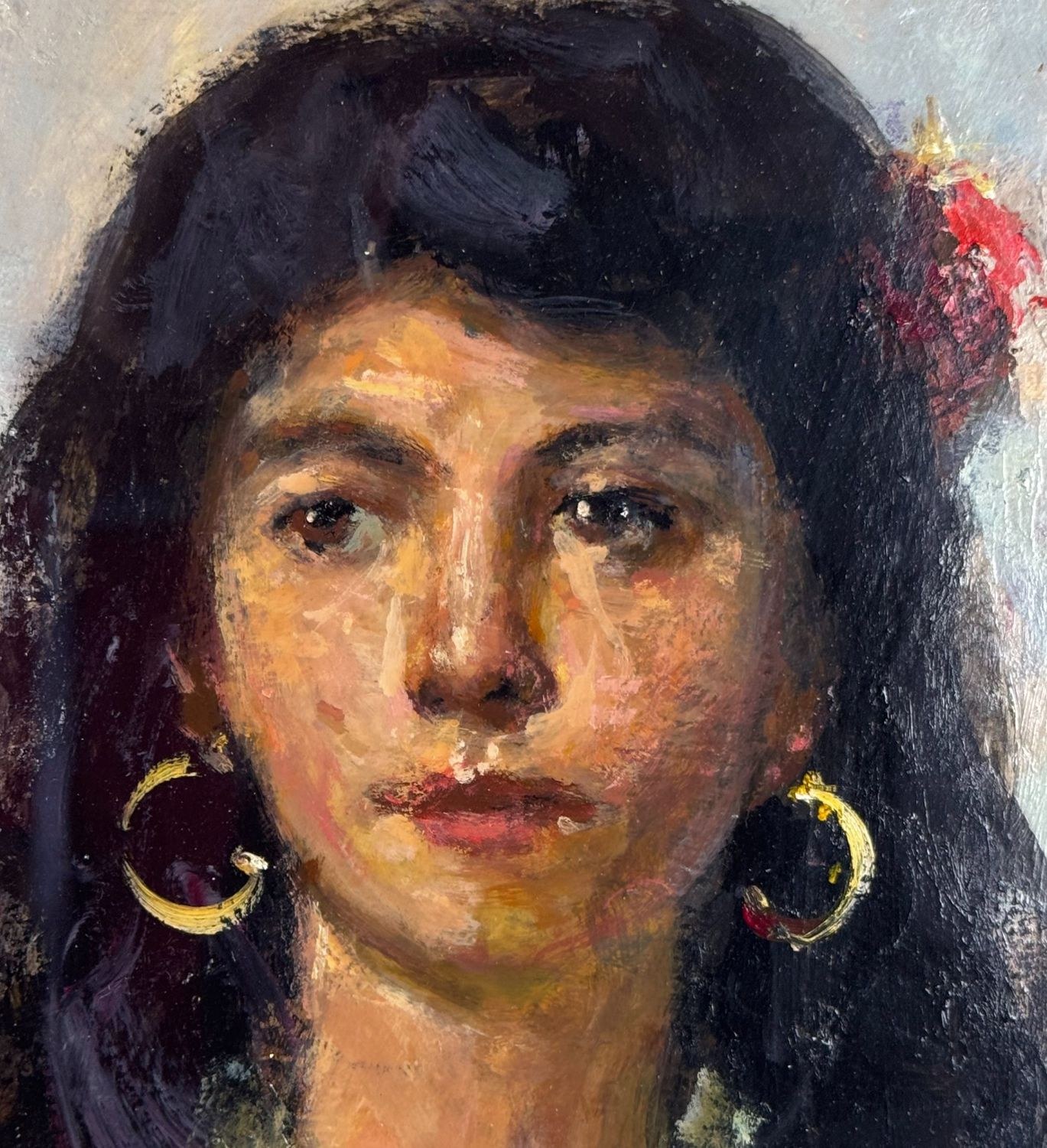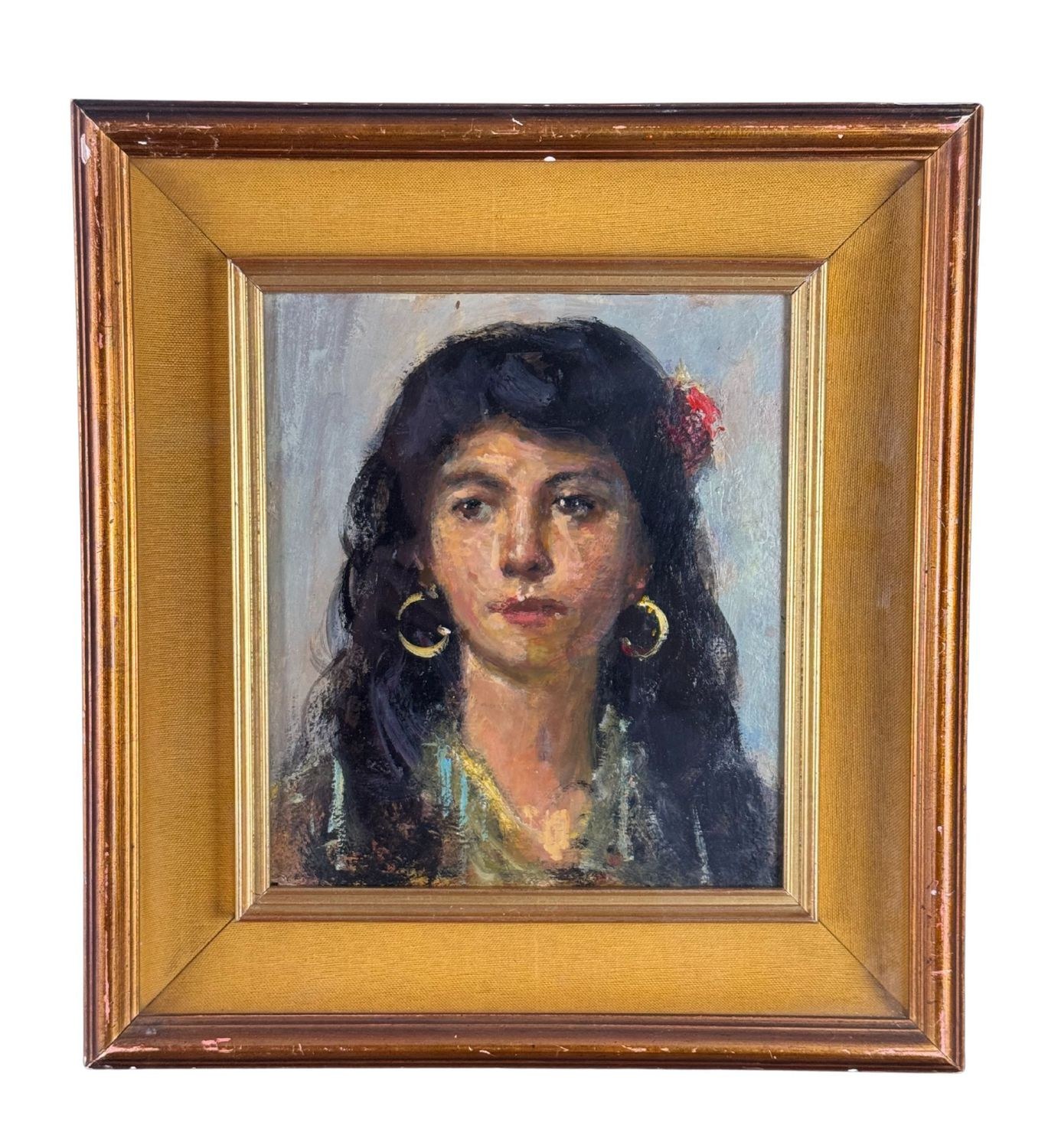 Oil on panel painting, 20th century, Italian school, depicting a Woman’s Face. Inner frame dimensions: 22x25 cm. Dimensions including frame: 36x40 cm. Anonymous. The work is in good condition and of fine artistic quality.