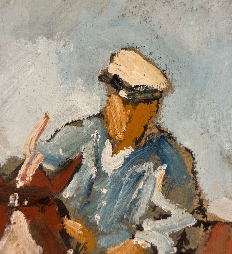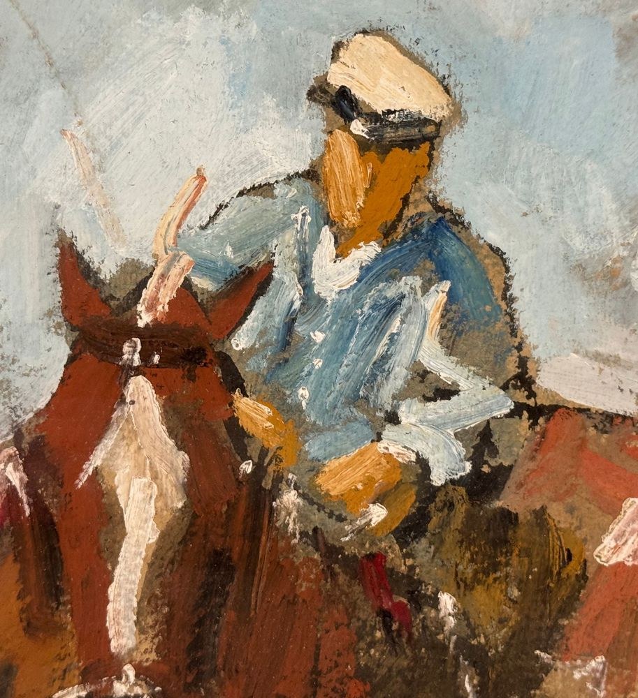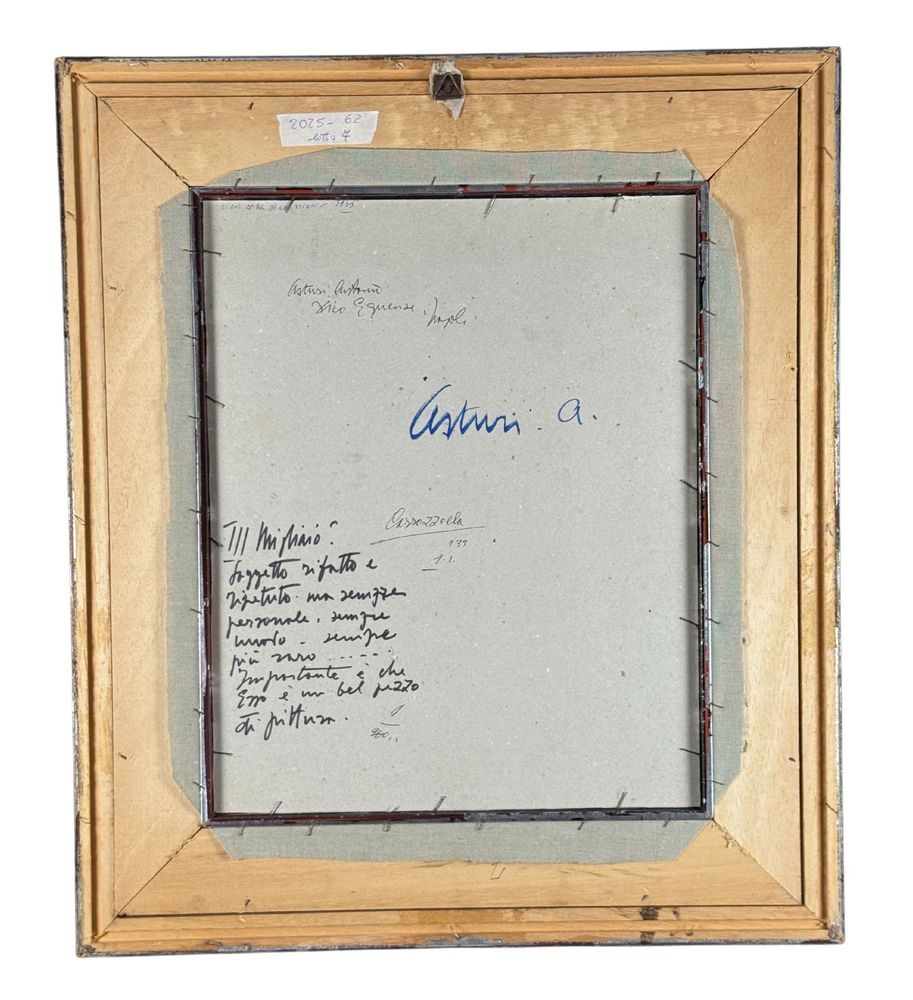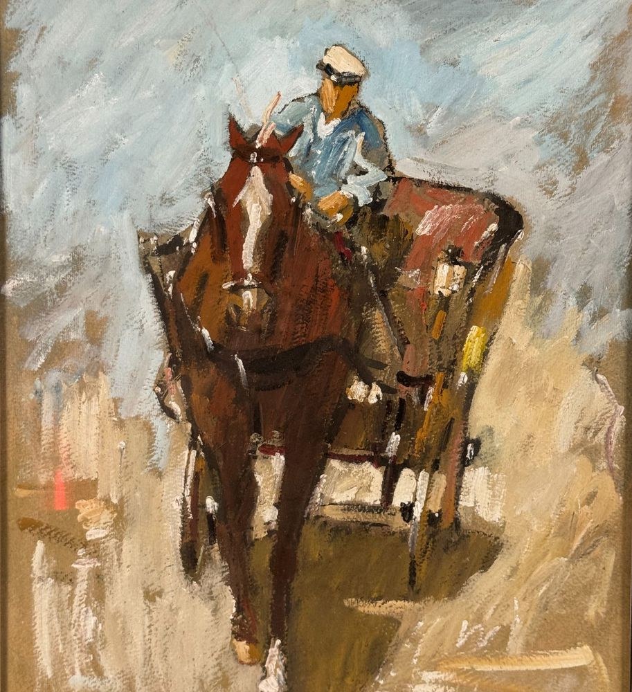 Oil painting on cardboard, 20th century, Italian school, depicting a Figure in a Carriage. Dimensions including frame: 63x72 cm. Inner frame dimensions: 40x50 cm. Signed lower right: Antonio Asturi. The artwork is in excellent condition.