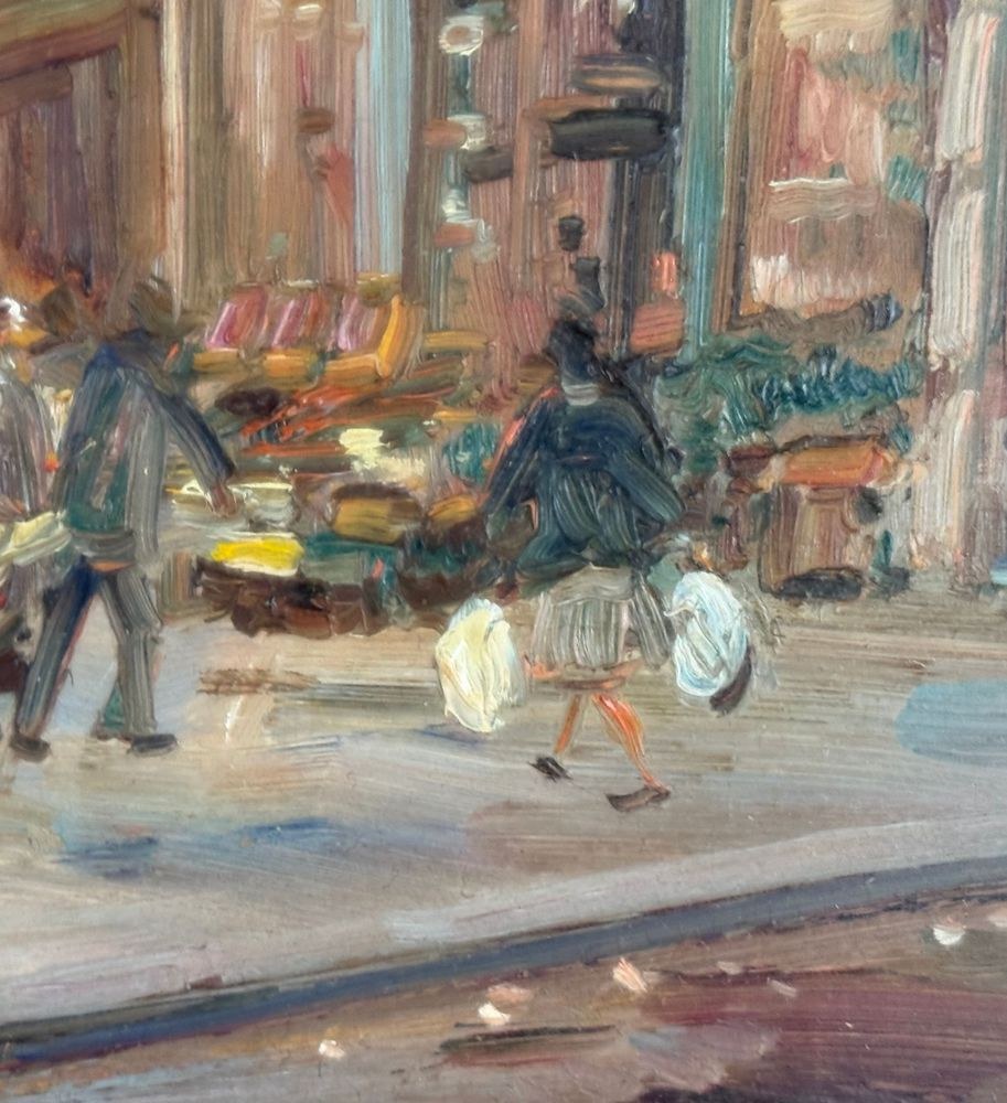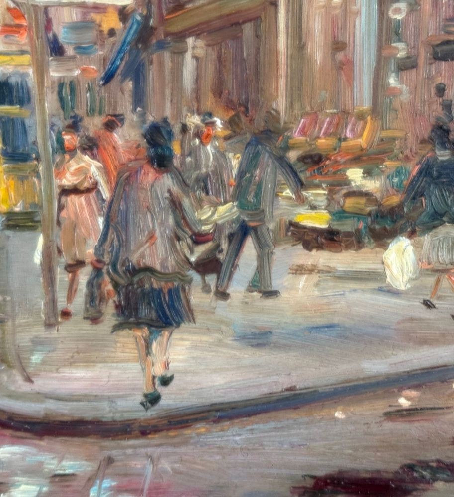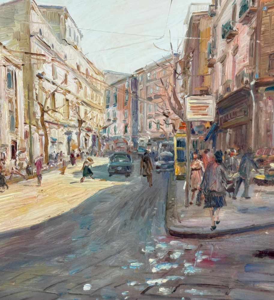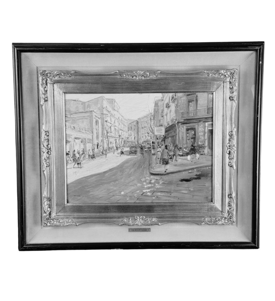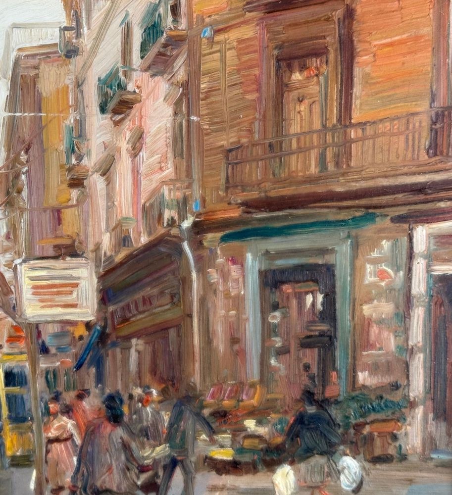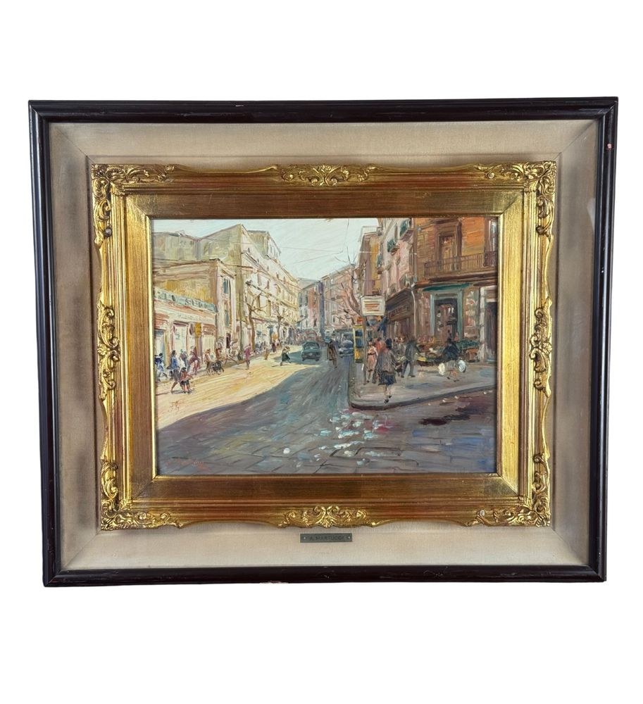 Oil painting on panel, 20th century period, Italian school, depicting *Neapolitan Street with Figures*. Dimensions including frame: 66x55 cm. Dimensions within the frame: 40x30 cm. Signed lower left: Antonio Martucci. Artwork in excellent condition and of outstanding artistic quality.