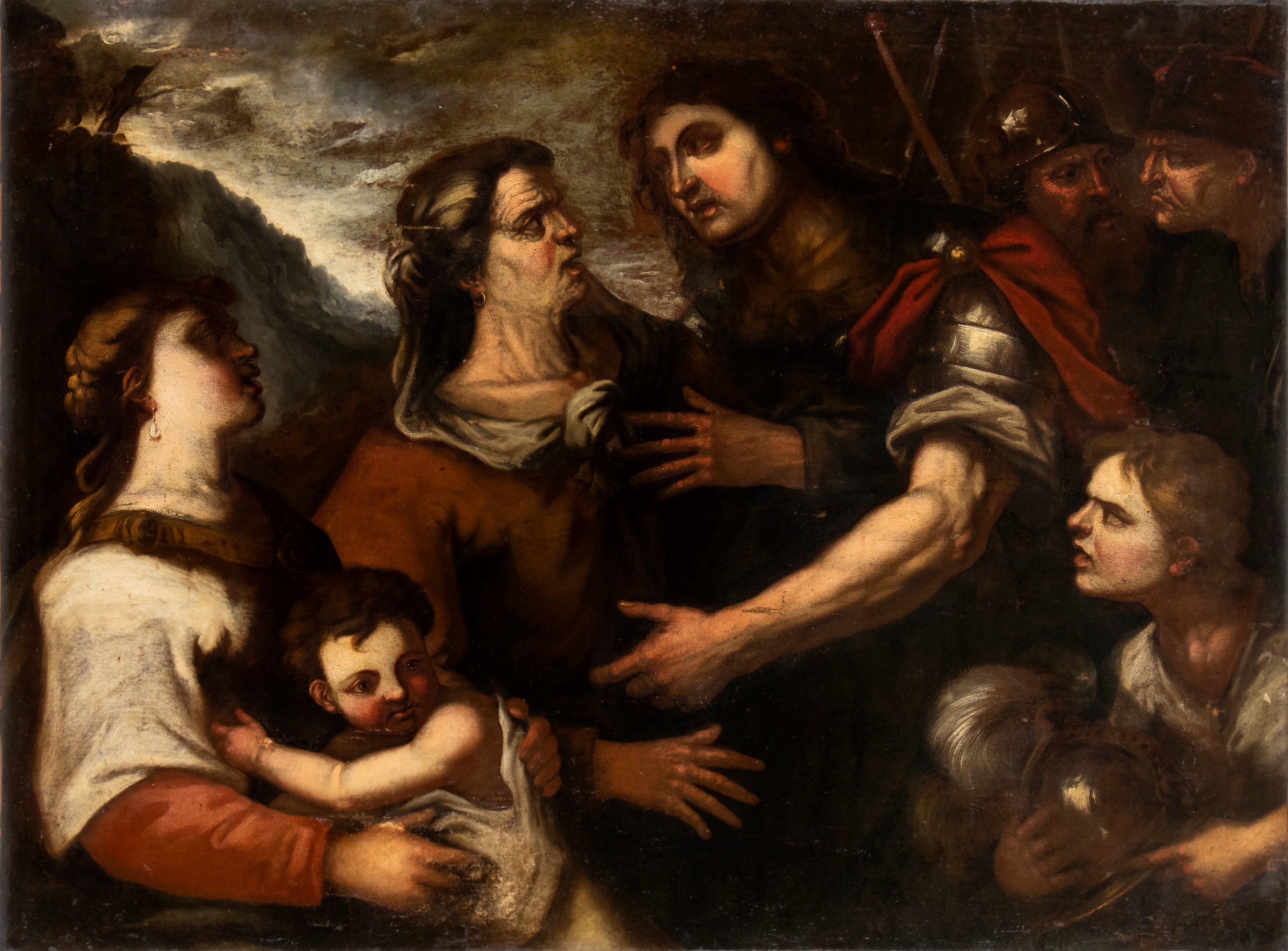 Artista genovese, XVII secolo, Farewell scene of a commander from his family