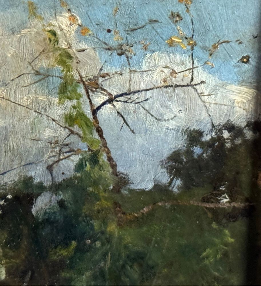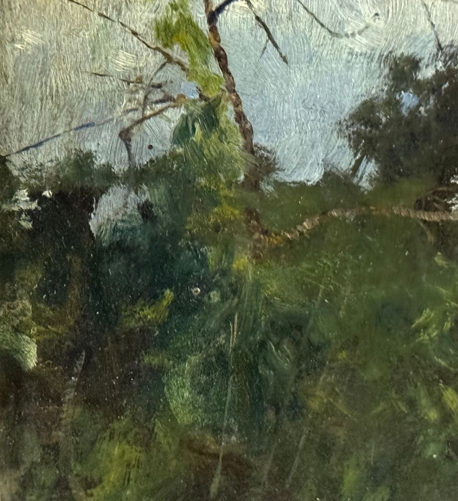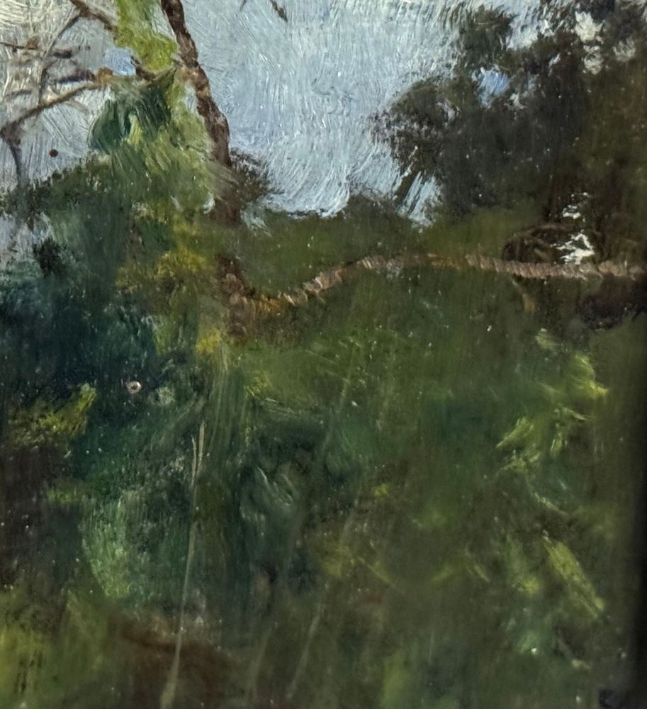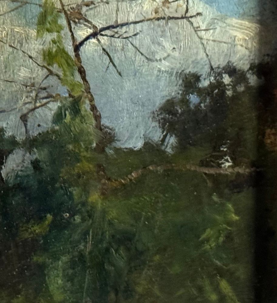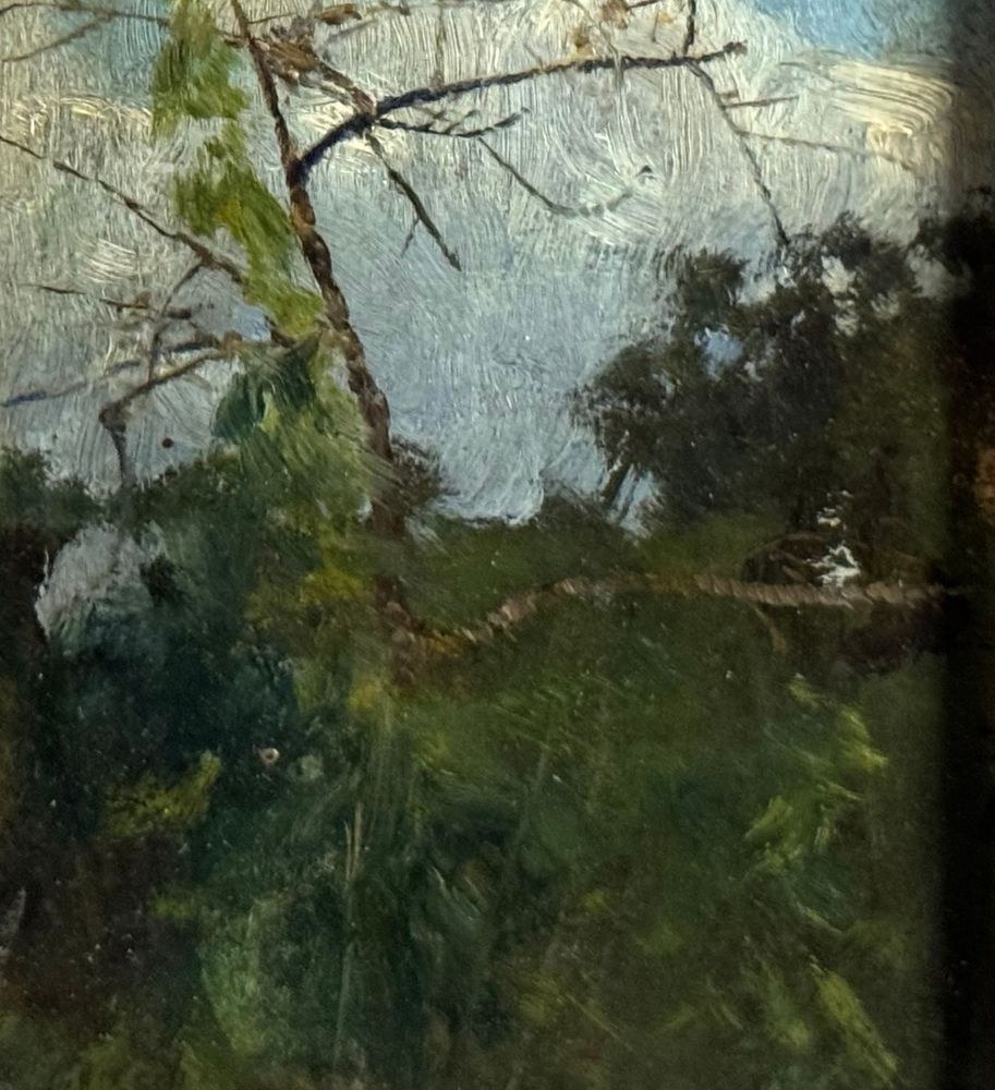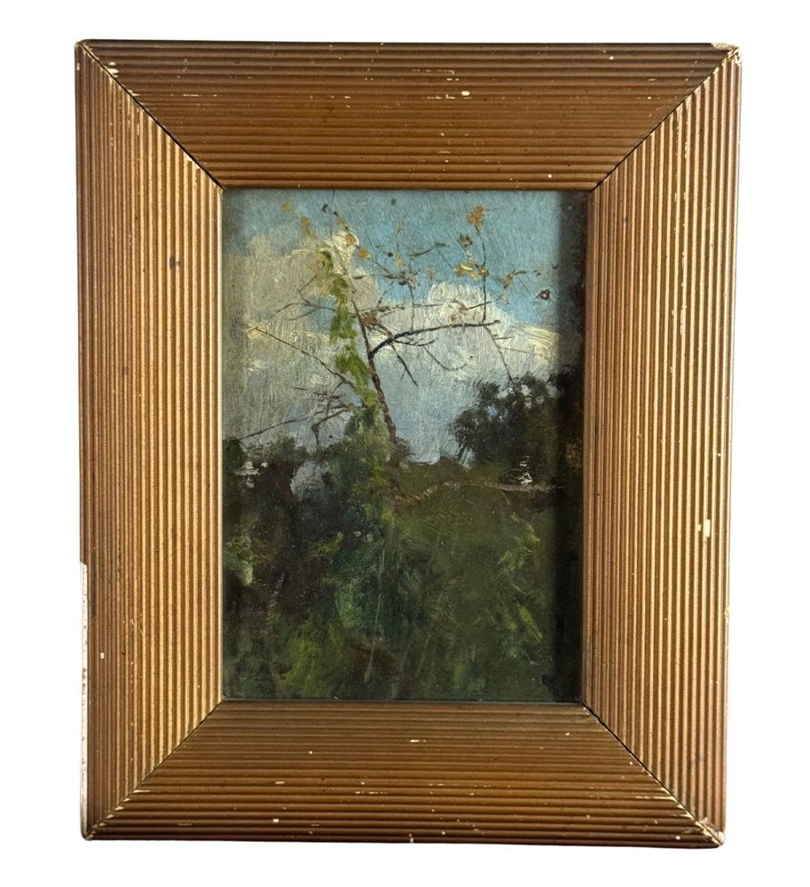 Oil on cardboard painting, 20th century, Italian school, depicting a landscape. Dimensions including frame: 18 × 22 cm. Inner frame dimensions: 11 × 15 cm. Attributed to Attilio Pratella. The artwork is in good condition.