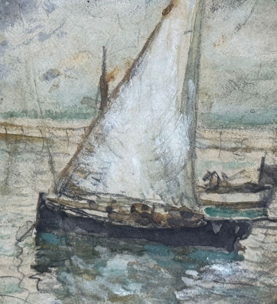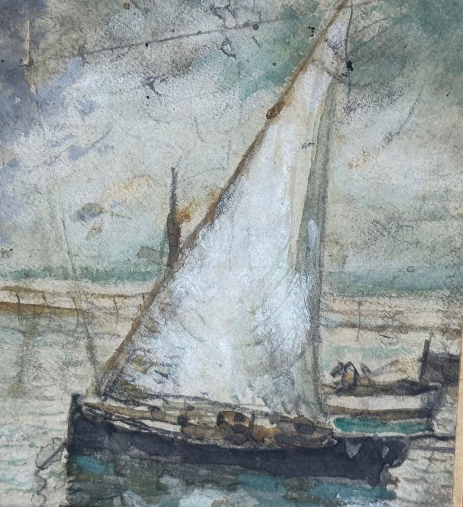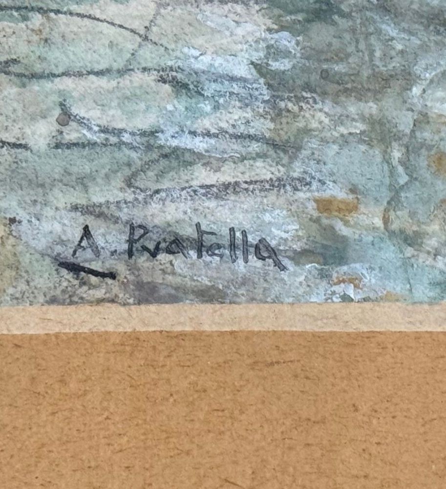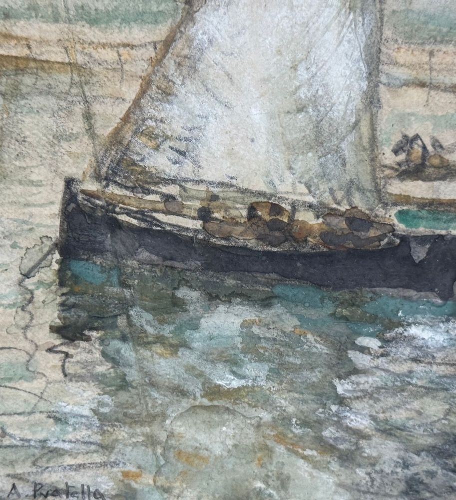 Watercolor on paper painting, 20th century period, Italian school, depicting a Sailing Ship. Dimensions including frame: 29x38 cm. Dimensions inside the frame: 11x16 cm. Signed lower left Attilio Pratella. Work in good condition.