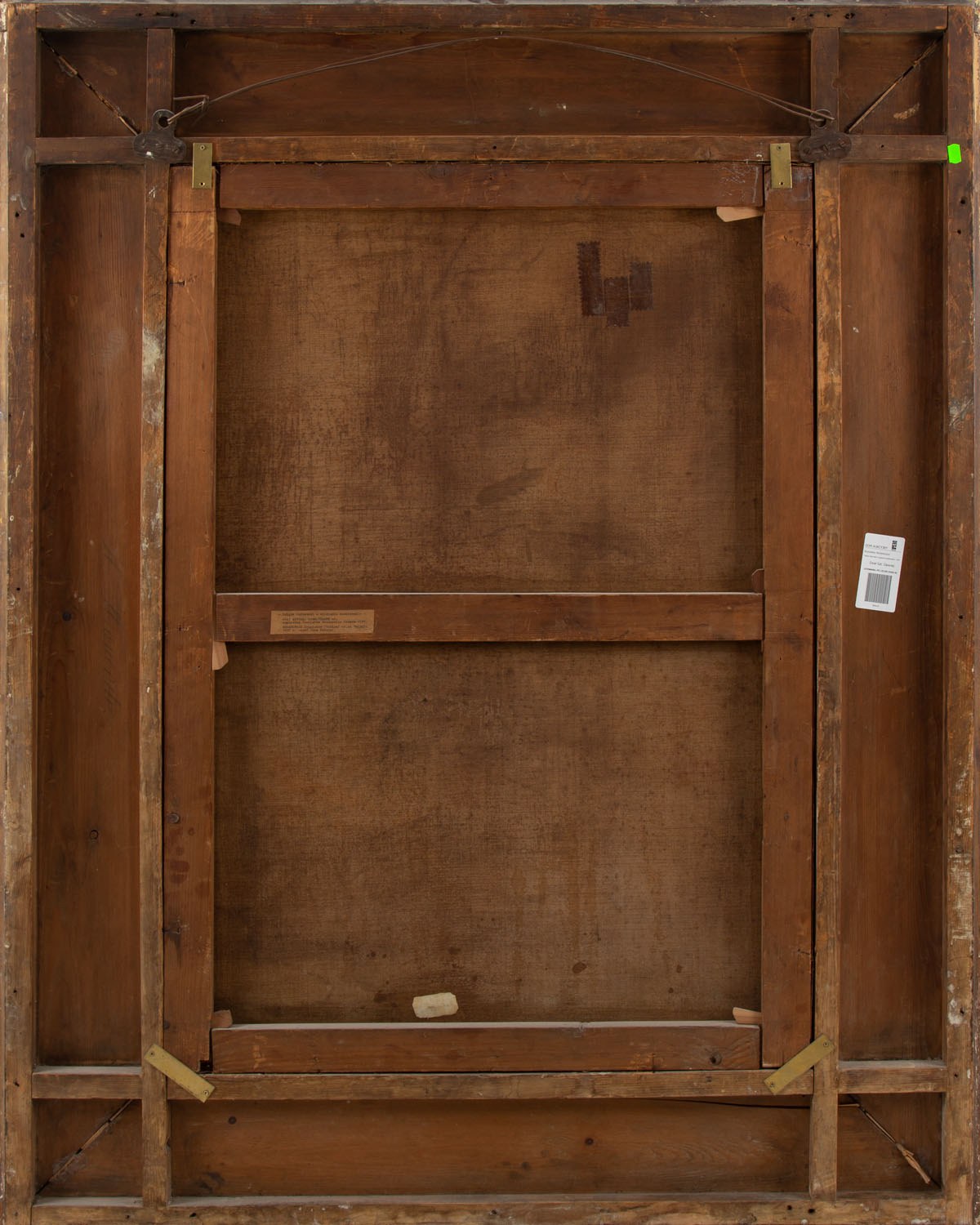 na krośnie malarskim papierowa nalepka z opisem obrazu
