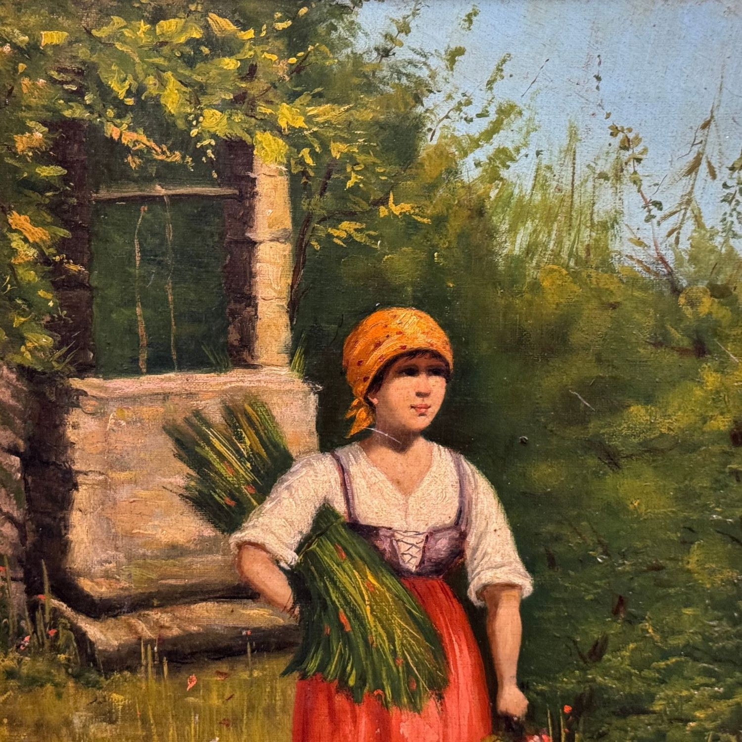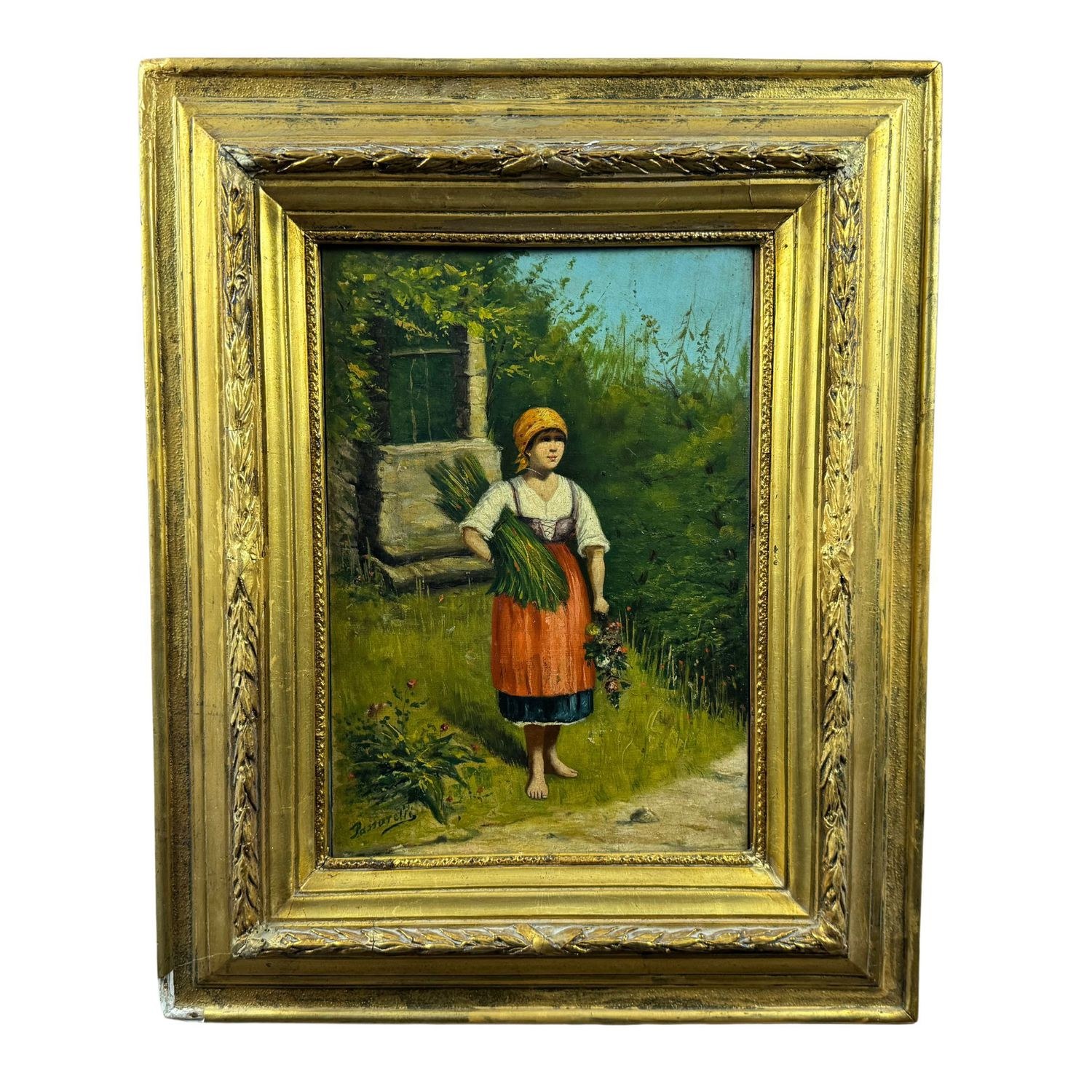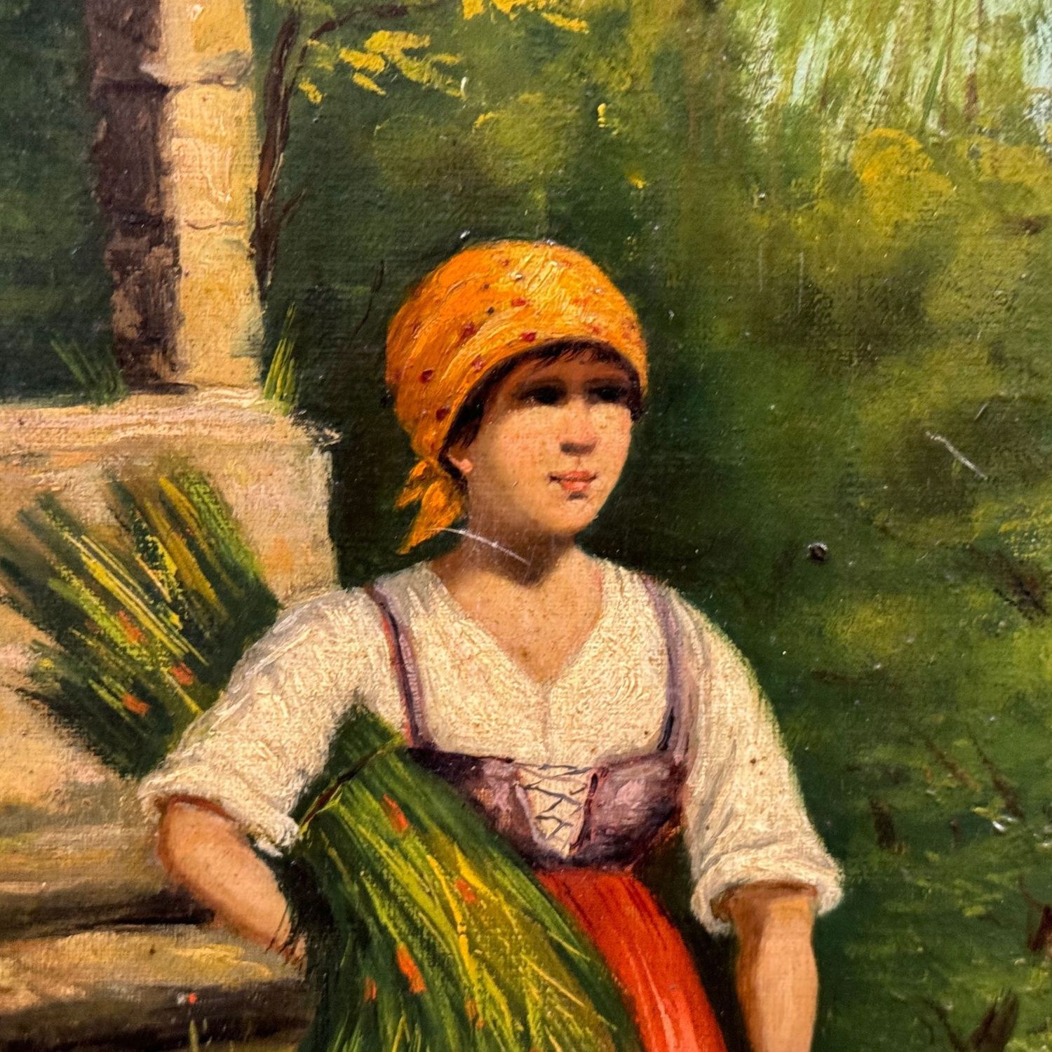 Oil painting on canvas, 19th/20th century period, Italian school, depicting Peasant Girl.