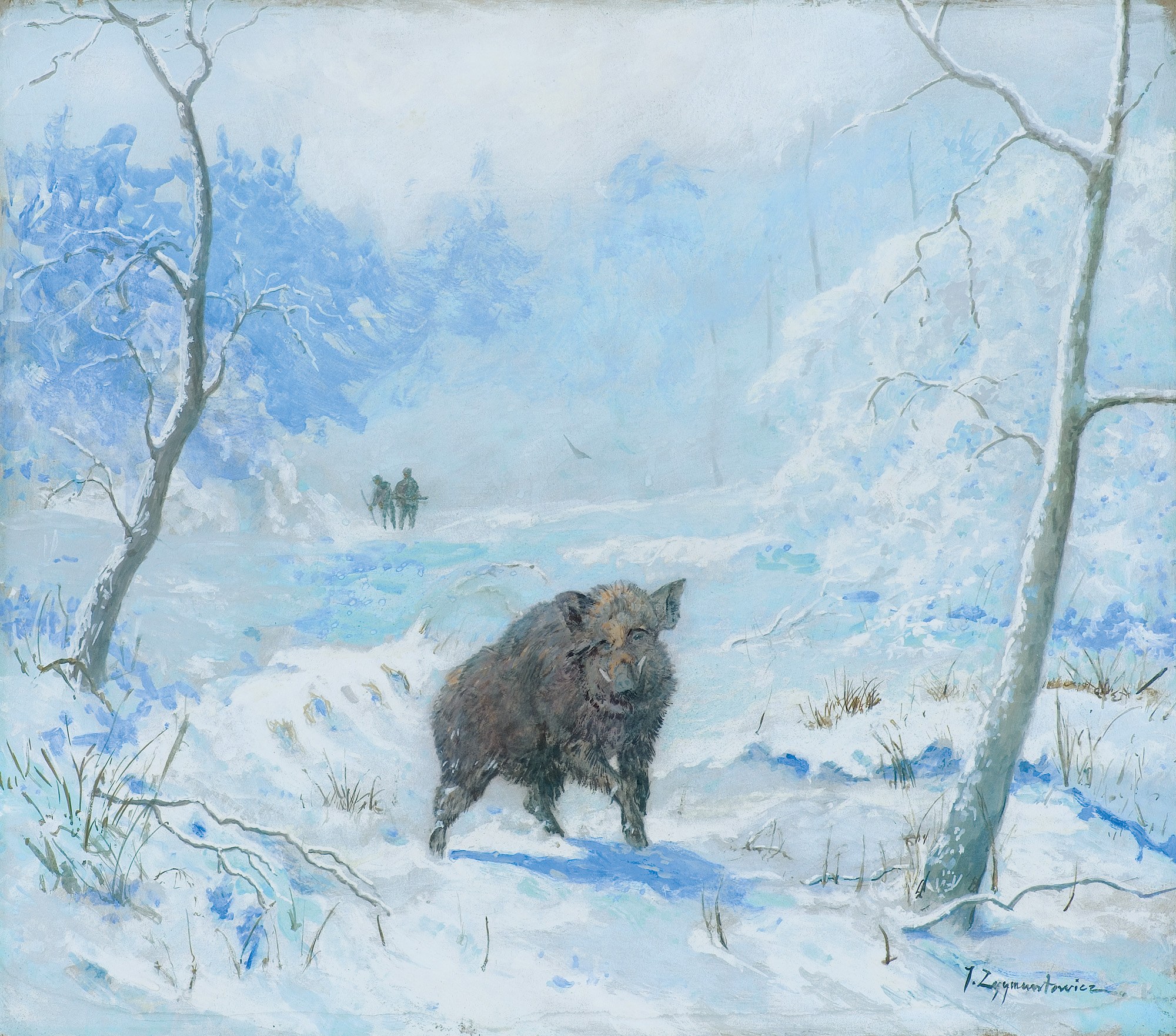 Czesław Wasilewski (ok. 1875 - Warszawa/ Łódź 1946?47) to popularny w okresie międzywojennym warszawski malarz, autor obrazów inspirowanych płótnami Kossaka, Brandta, Chełmońskiego, Wierusza-Kowalskiego czy Fałata. Był samoukiem; wprawdzie w 1911 zapisał się do warszawskiej Szkoły Sztuk Pięknych, ale o jego studiach nic bliższego nie wiadomo. Być może uczęszczał tam (1913-1917) do pracowni Wojciecha Kossaka, dla którego później, na początku lat dwudziestych, przygotowywał podmalówki do obrazów. Uczestniczył w wystawie w Lublinie (1922), wystawiał na Salonach warszawskiej Zachęty (1925,1926, 1927), w Katowicach (1926), Częstochowie (1927), Gdyni (1929), Kaliszu (1931), Poznaniu (1928, 1931). Malował przede wszystkim liczne zaprzęgi, sanny, wyjazdy na polowania, wypadki w podróży, ułanów na patrolu, łosie, sarny i dziki w lesie. Tworzył także nastrojowe pejzaże, wyraźnie inspirowane malarstwem J. Chełmońskiego Rzadziej malował także kwiaty i martwe natury. Utożsamiany z malarzem o nazwisku „Zygmuntowicz”, którego prace pojawiały się na rynku sztuki od trzydziestych lat XX wieku. Stawiany przed tym nazwiskiem inicjał I. lub F., sugerować może imię Ignacy lub Franciszek. Sylwetkę malarza bliżej omówił S. Bołdok w artykule Malarz o dwóch nazwiskach (Art and Business 1992, nr 7-8, s. 48-49).