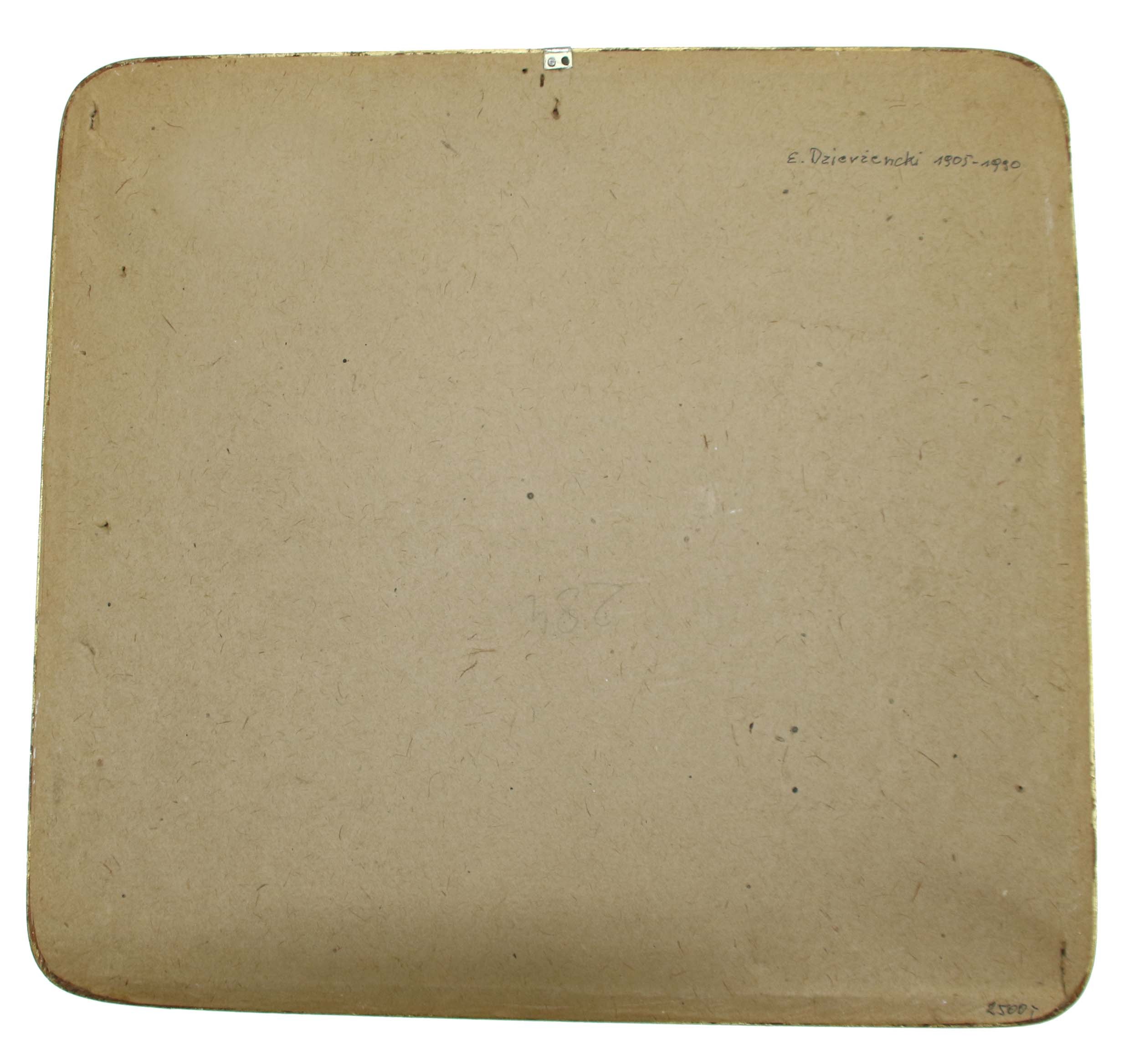Eugeniusz DZIERŻENCKI (1905-1990). Olej, tektura. Wym 18 x 20 cm, rama 31 x 34 cm. Szkło.