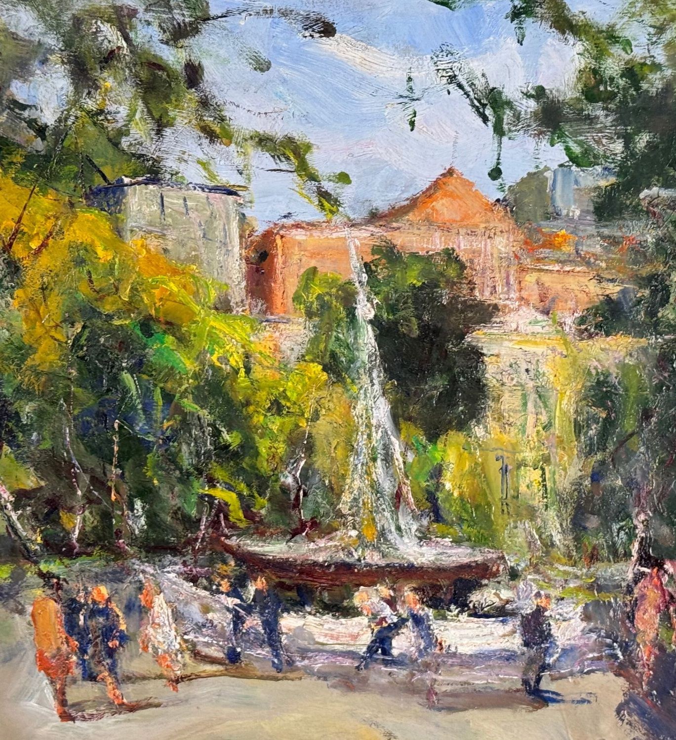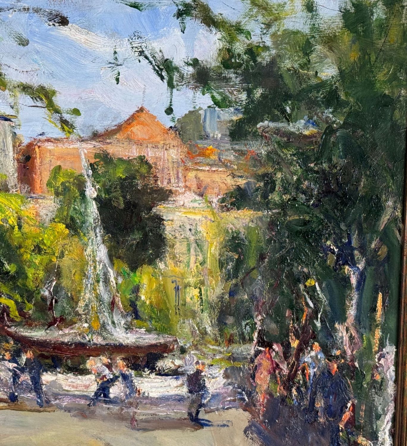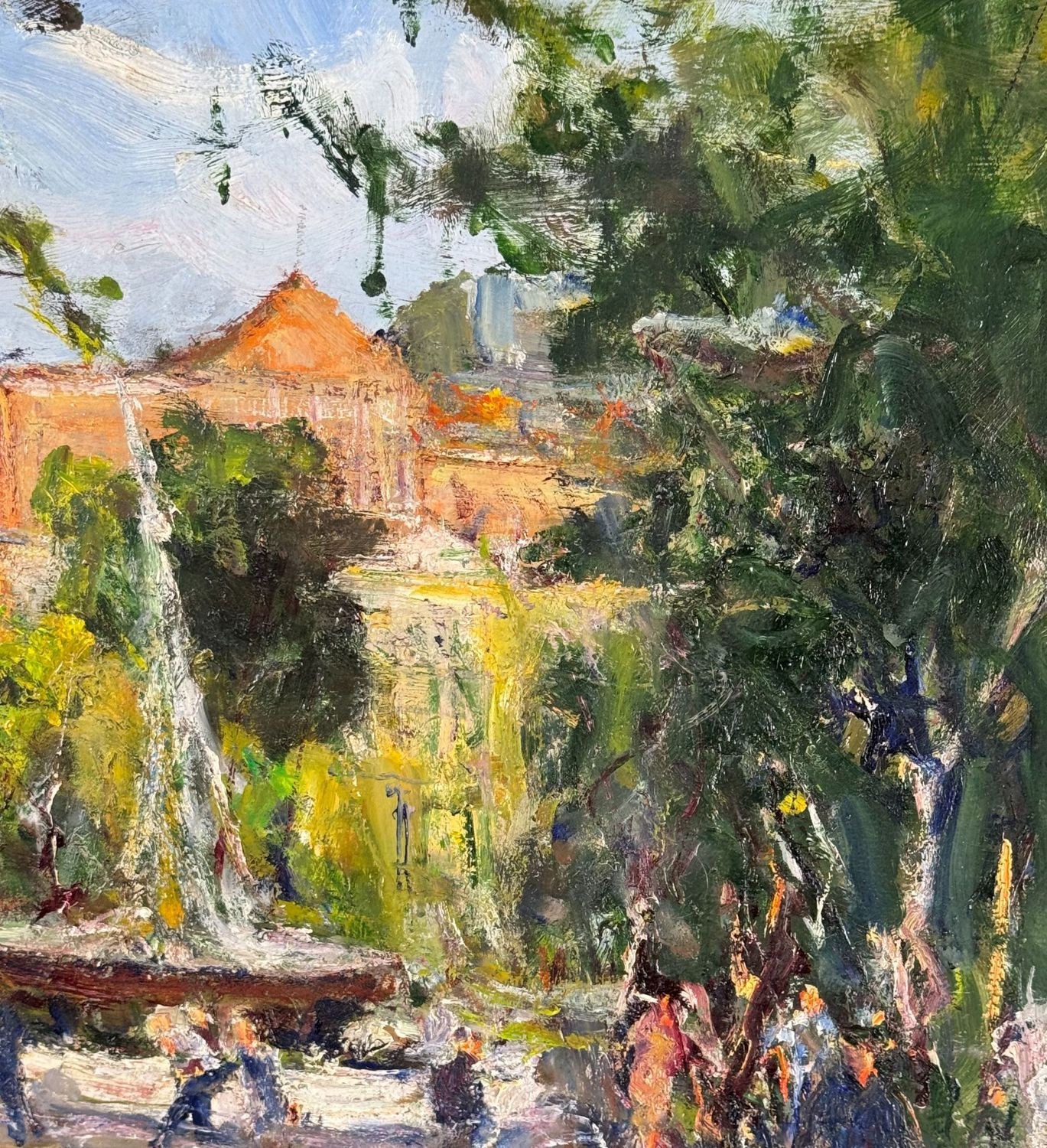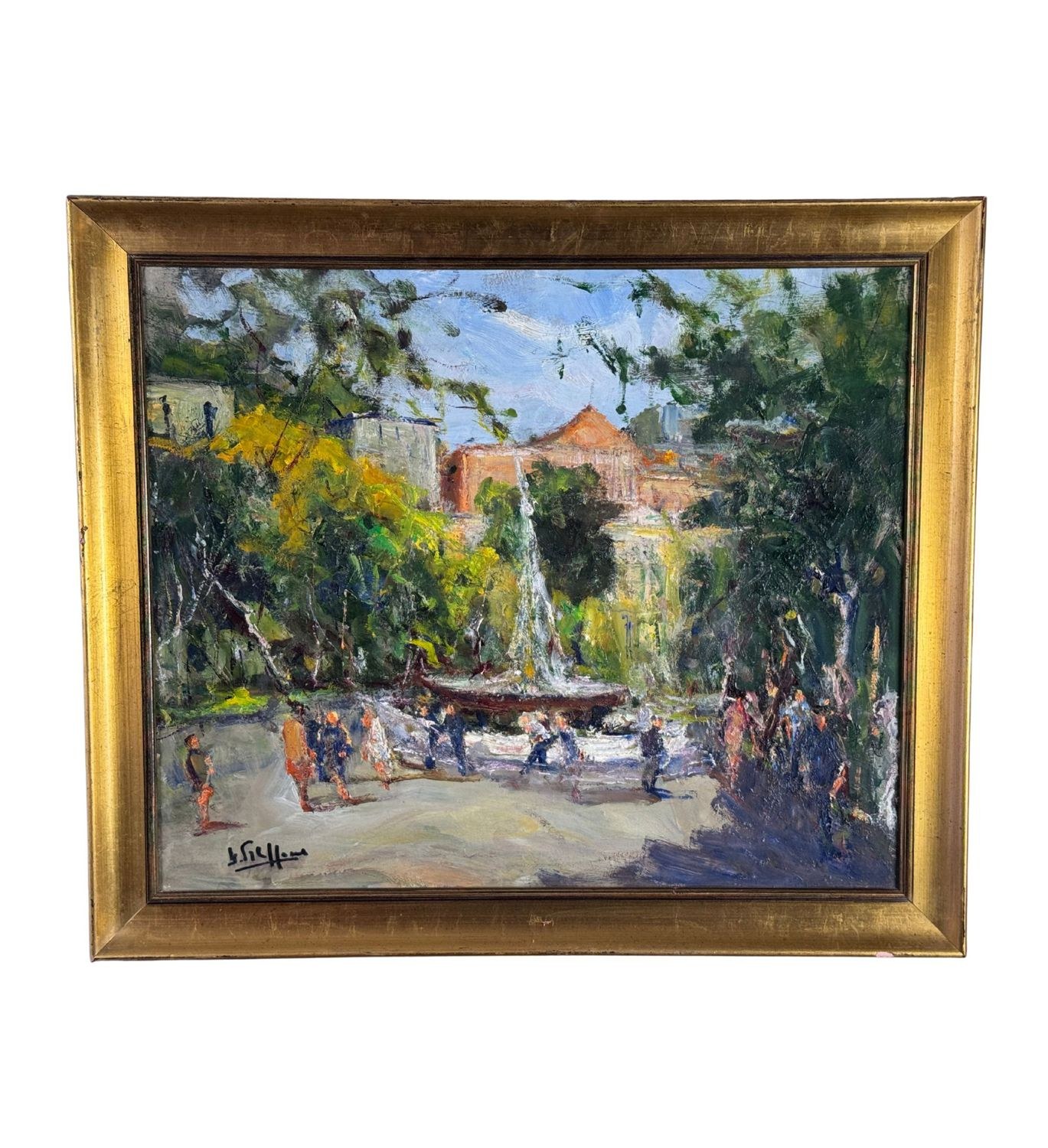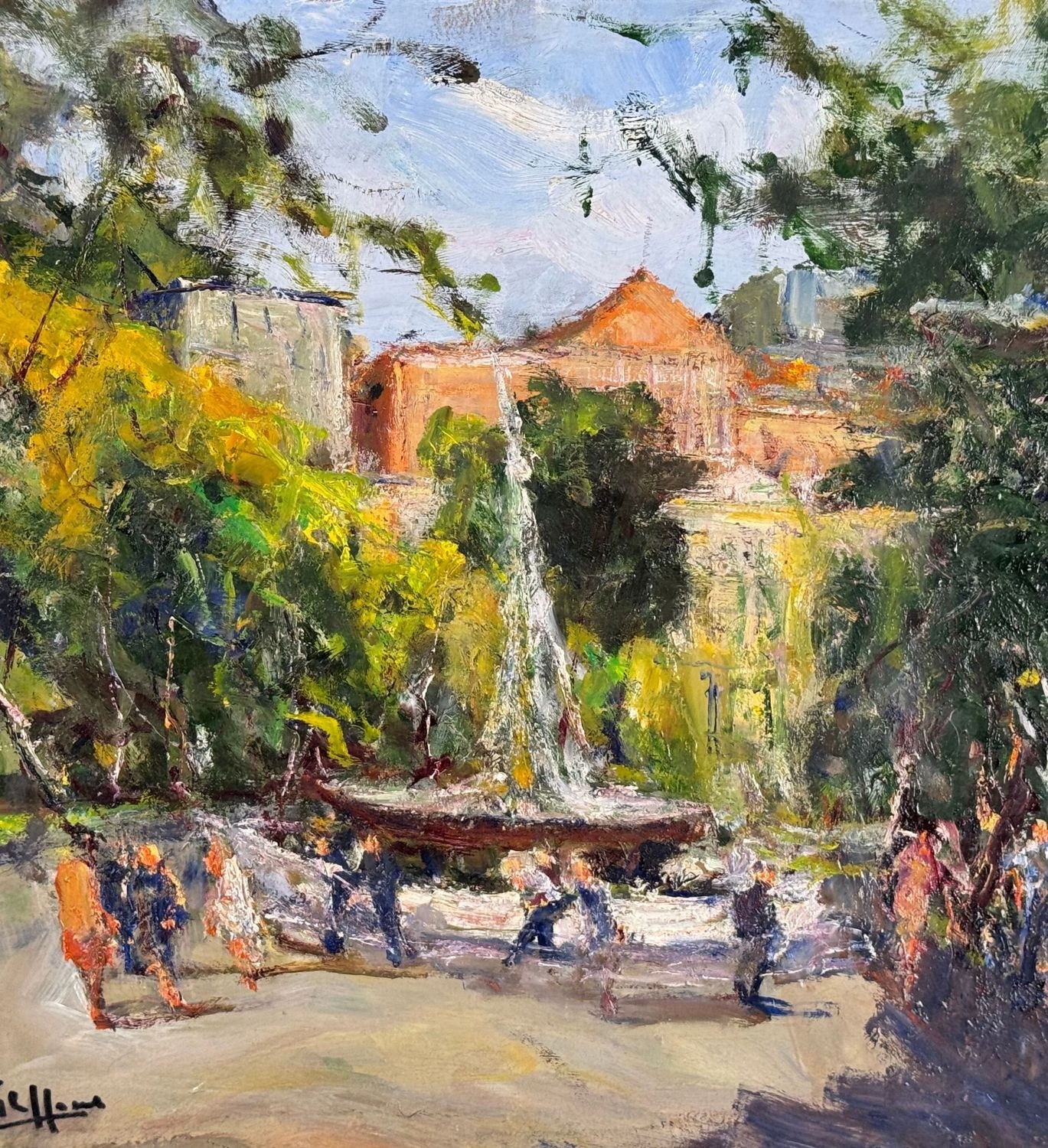 Oil painting on panel, 20th-century Italian school, depicting the Villa Comunale. Dimensions including frame: 58.5x69 cm. Dimensions inside the frame: 50x60 cm. Signed lower left and authenticated on the back: Filippone. The artwork is in good condition.