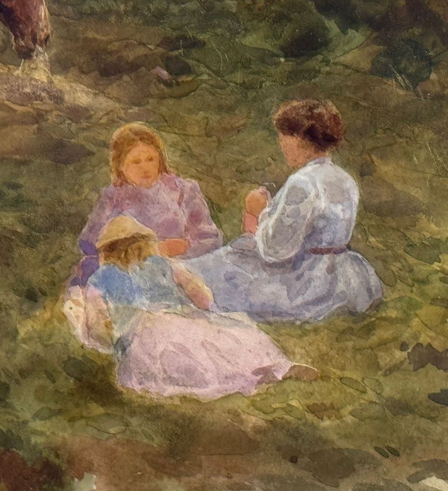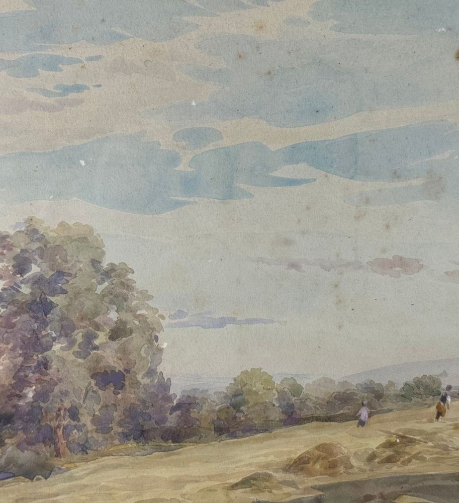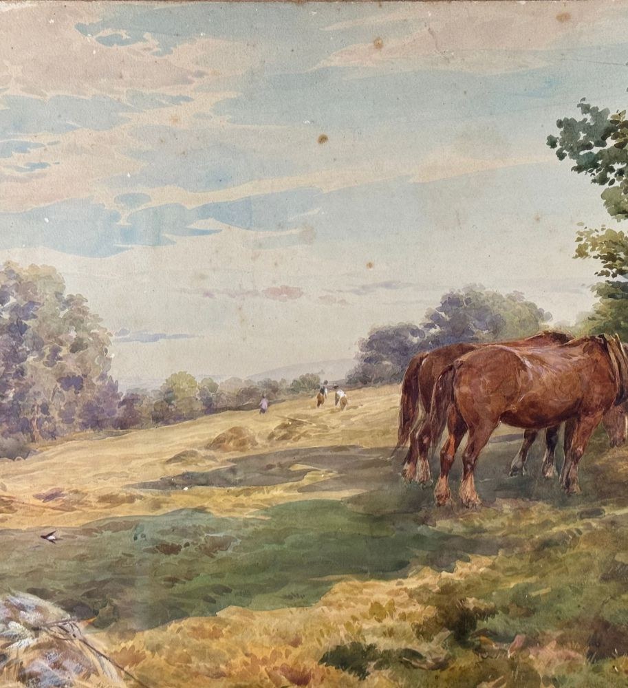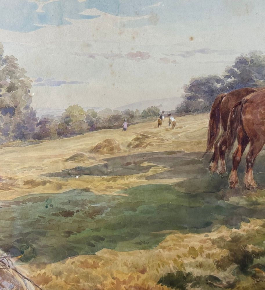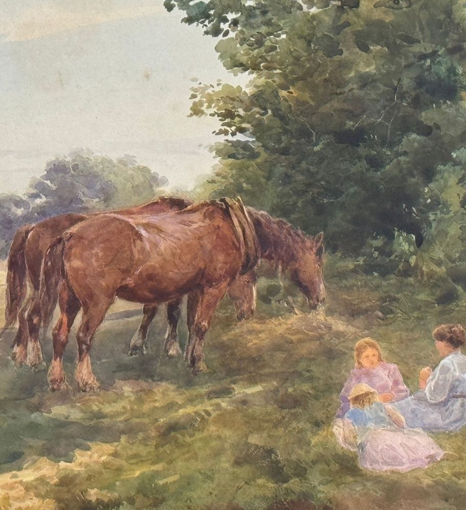 Watercolor on paper, 19th/20th century, European school, depicting a Landscape with figures and horses (Summer). Dimensions including frame: 84x69 cm. Inner frame dimensions: 52x37 cm. Signed in the lower right corner by Francis Appleton. The work is in good condition with a certificate of authenticity on the back from the National Institute of Art.