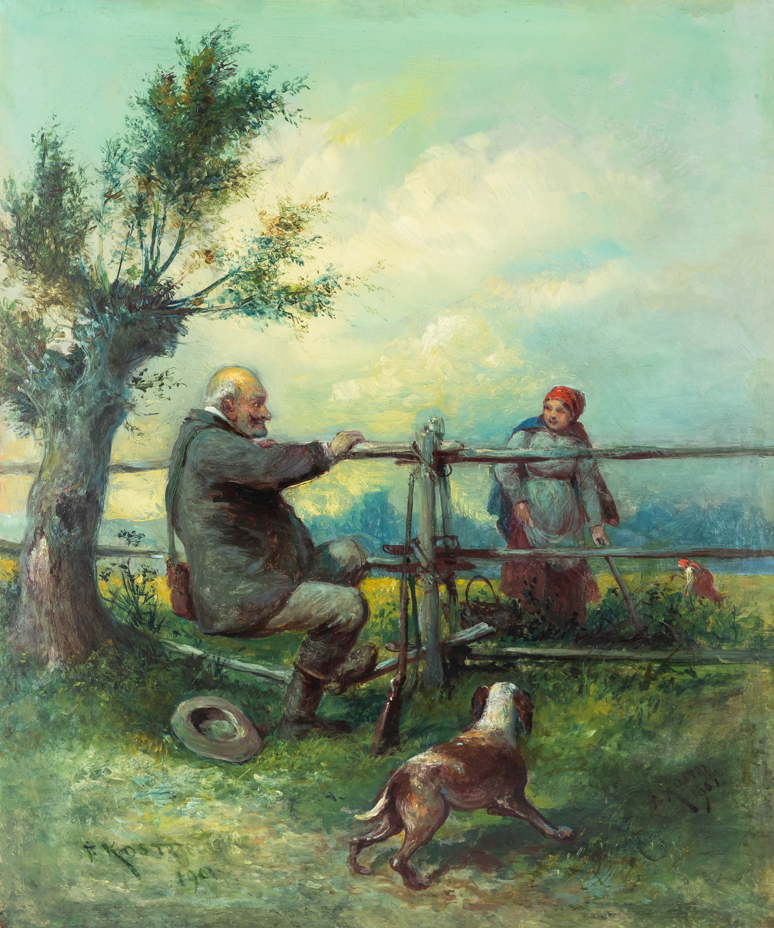 Franciszek Kostrzewski (1826 Warszawa - 1911 tamże), Pogawędka przy płocie