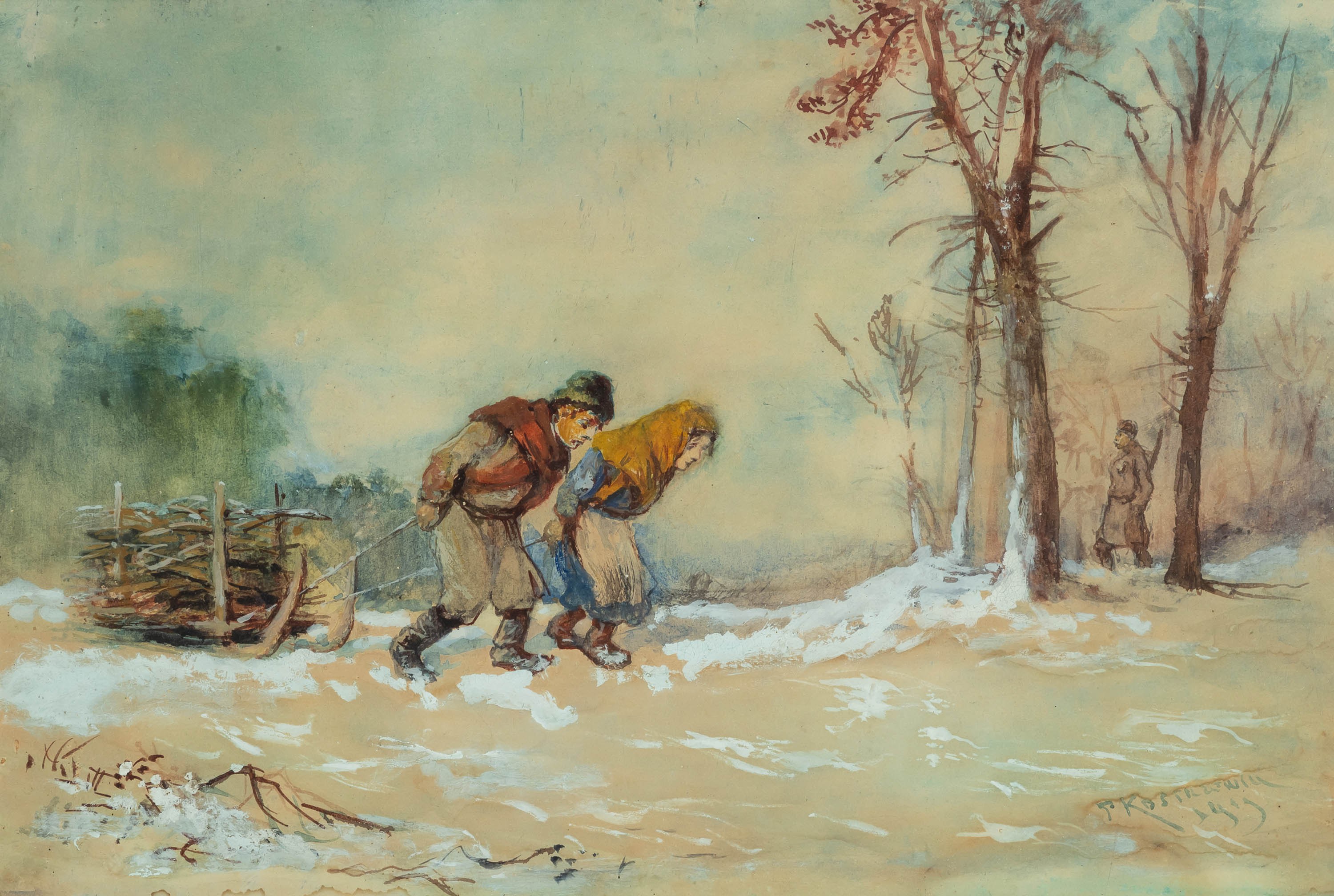 Franciszek Kostrzewski (1826 Warszawa - 1911 tamże), Scena rodzajowa, 1909 r.