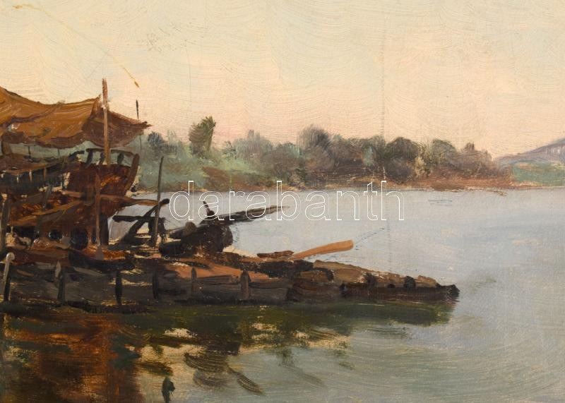 Györök Leó (1847-1899): Trogiri részlet. Olaj, vászon. Jelezve jobbra lent. Dekoratív, kissé kopott fakeretben, 29,5×51,5 cm