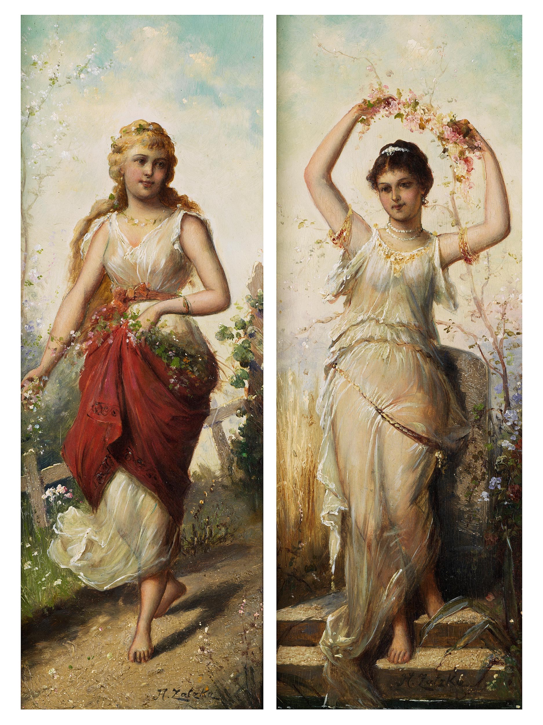 Jeweils rechts unten signiert „H. Zatzka“, verso durch Aufkleber bezeichnet „Nummer 61 Printemps“, sowie das andere „Nummer 62 Été“.