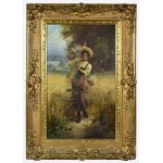Die beiden Jahreszeiten jeweils als Personifikationen in Mädchengestalt wiedergegeben, der Frühling durch eine junge blonde langhaarige Frau, die in ihrer Schürze frisch gepflückte Blumen hält, der Sommer durch eine dunkelhaarige Frau in dünnem, fast durchsichtigen Kleid, ein Blütengebinde über ihrem Kopf hochhaltend. Pendants Ende des 19. Jahrunderts. (1411687) (18)