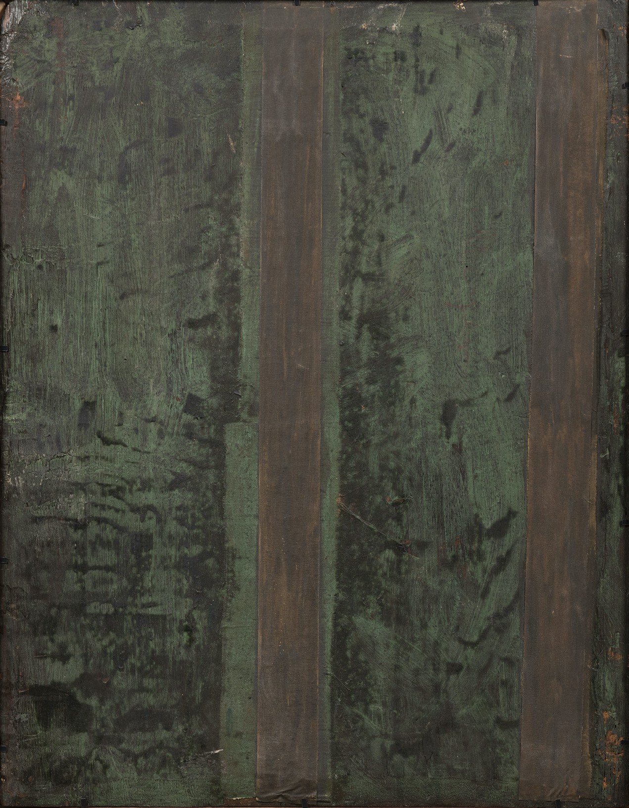 To punish the arrogance of her mother Cassiopeia, according to Greek mythology, her daughter Andromeda was forged to a rock by the sea on the instructions of Poseidon to be sacrificed to the sea monster. You can see the beautiful, almost naked Andromeda with long blond hair and a red, shiny, wrinkled wrap over her left shoulder. She stands in front of a large brown piece of rock, on her right side the seawater with the sea monster swimming in it, which has its mouth wide open with sharp teeth and shows the red oral cavity. Her gaze is directed all the way up to the sky, in which her savior Perseus can be seen carrying a shield and a sword. He is equipped with flying sandals, which can be clearly seen on his feet with small wings. He succeeds in defeating the sea monster and freeing Andromeda, whom he then takes as his wife. The popular theme of the time, in which the beautiful young Andromeda is the center of attention with a high-quality reproduction of the shiny red fabric surrounding her.