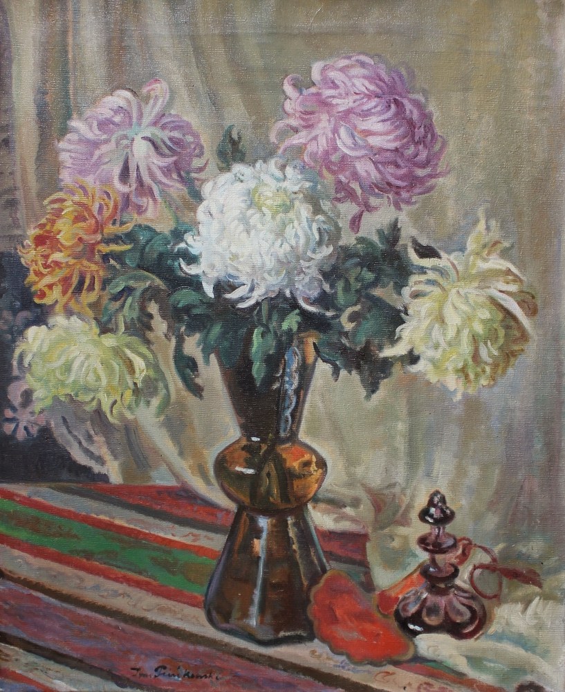Chryzantemy w wazonie sygn.l.d. Ign. Pieńkowski