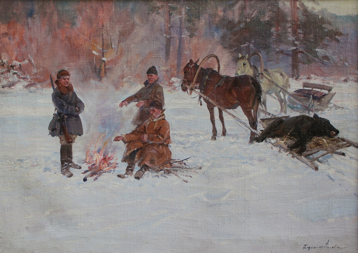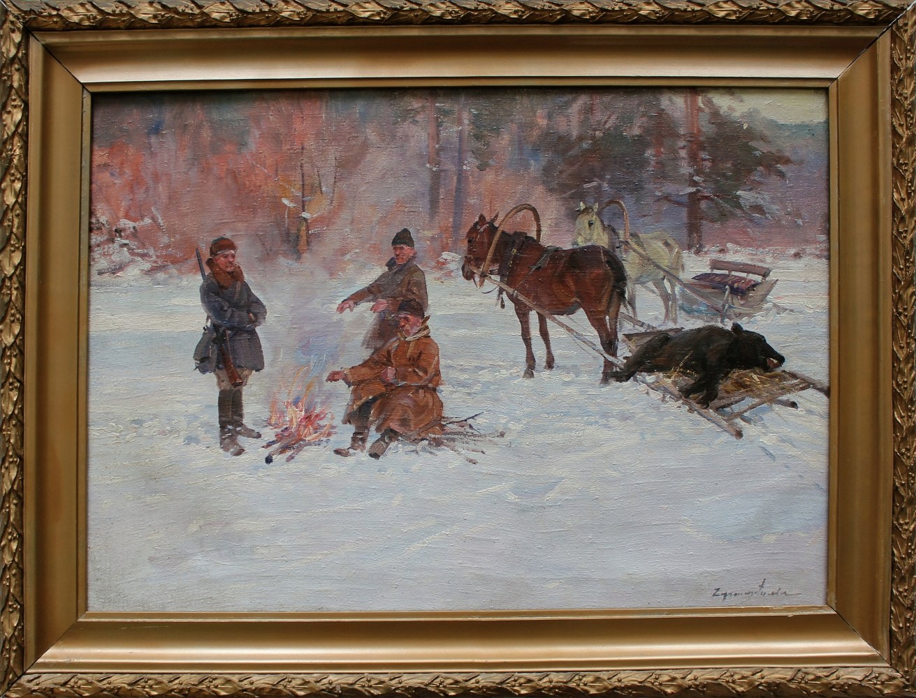Po polowaniu na niedźwiedzia sygn.p.d. Zygmuntowicz