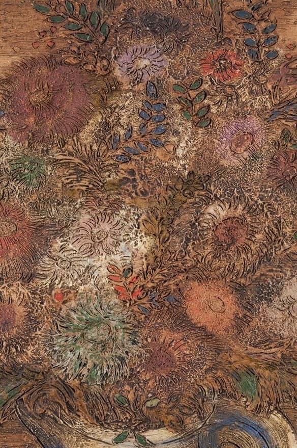 Obraz został stworzony w specyficznej, stosowanej przez artystę na przełomie lat 20. i 30., technice mieszanej, w której kontur jest wydrapywany w miękkiej, przypominającej formę gipsową farbie.