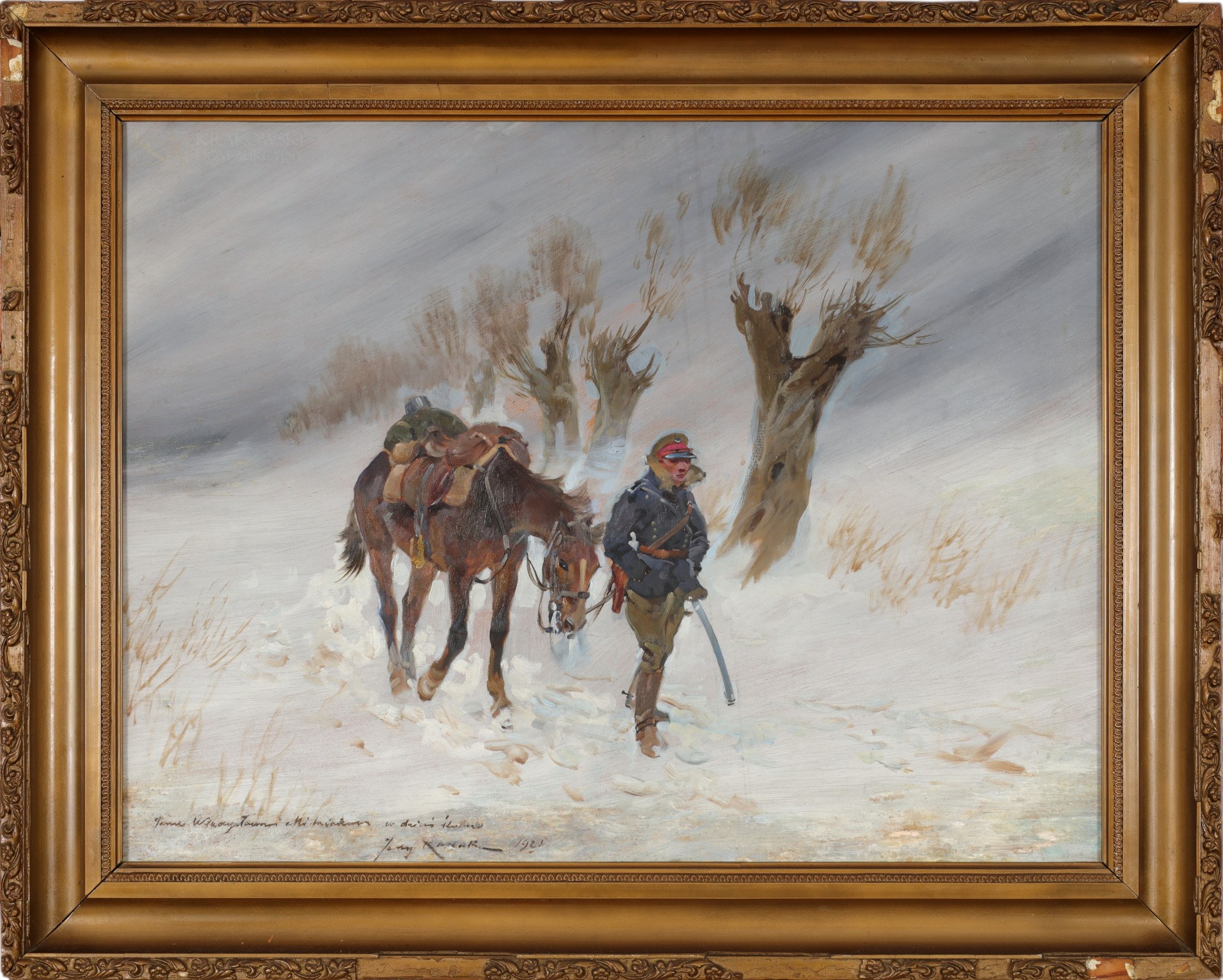 Tytuł: W zimowej zamieci - ułan z koniem (1921)