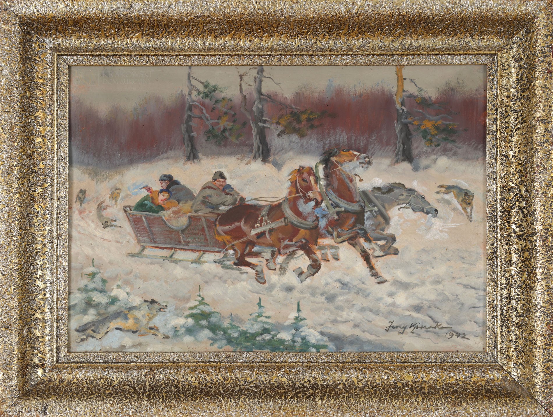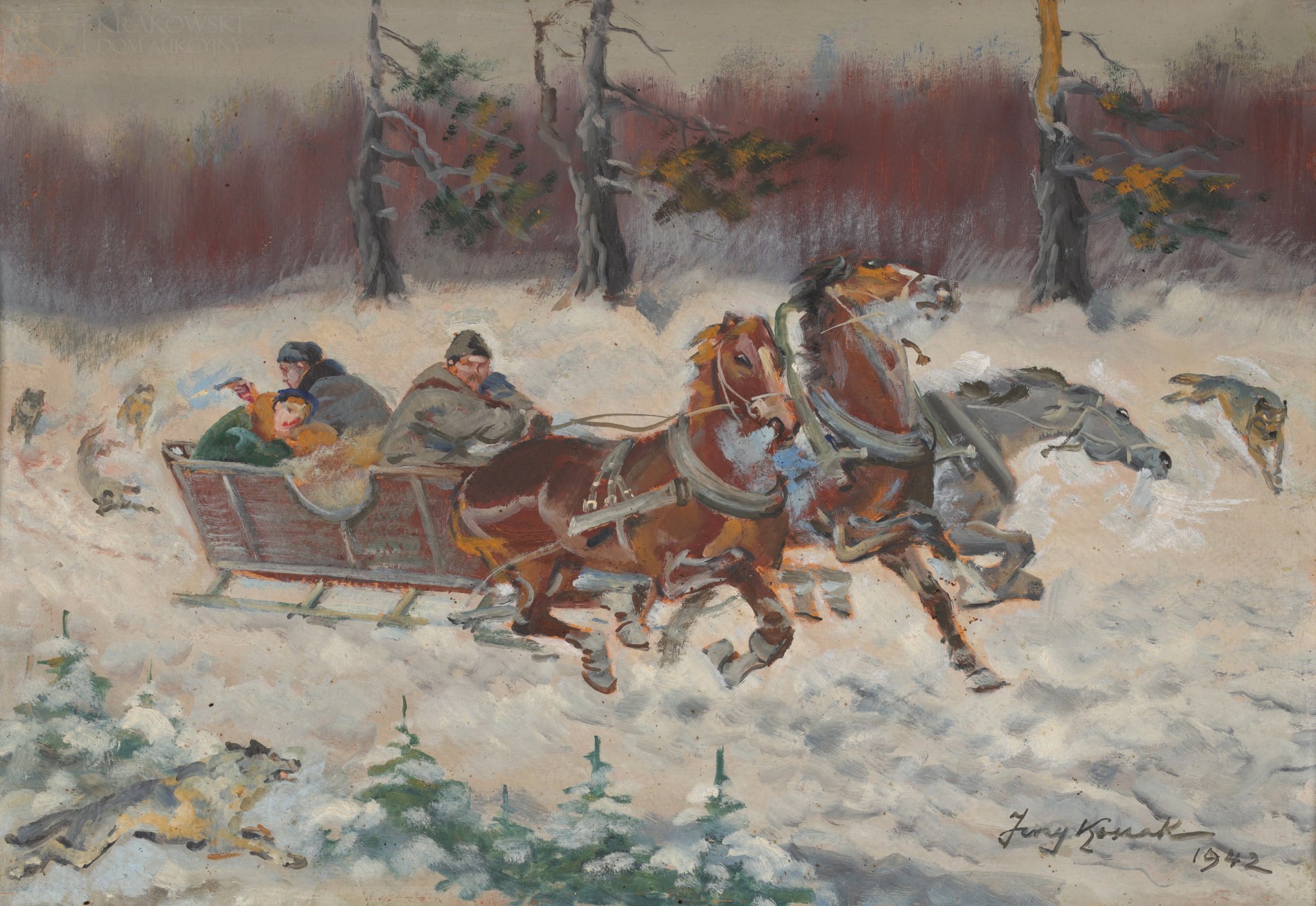 Sygnowany i datowany p.d.: "Jerzy Kossak | 1942"