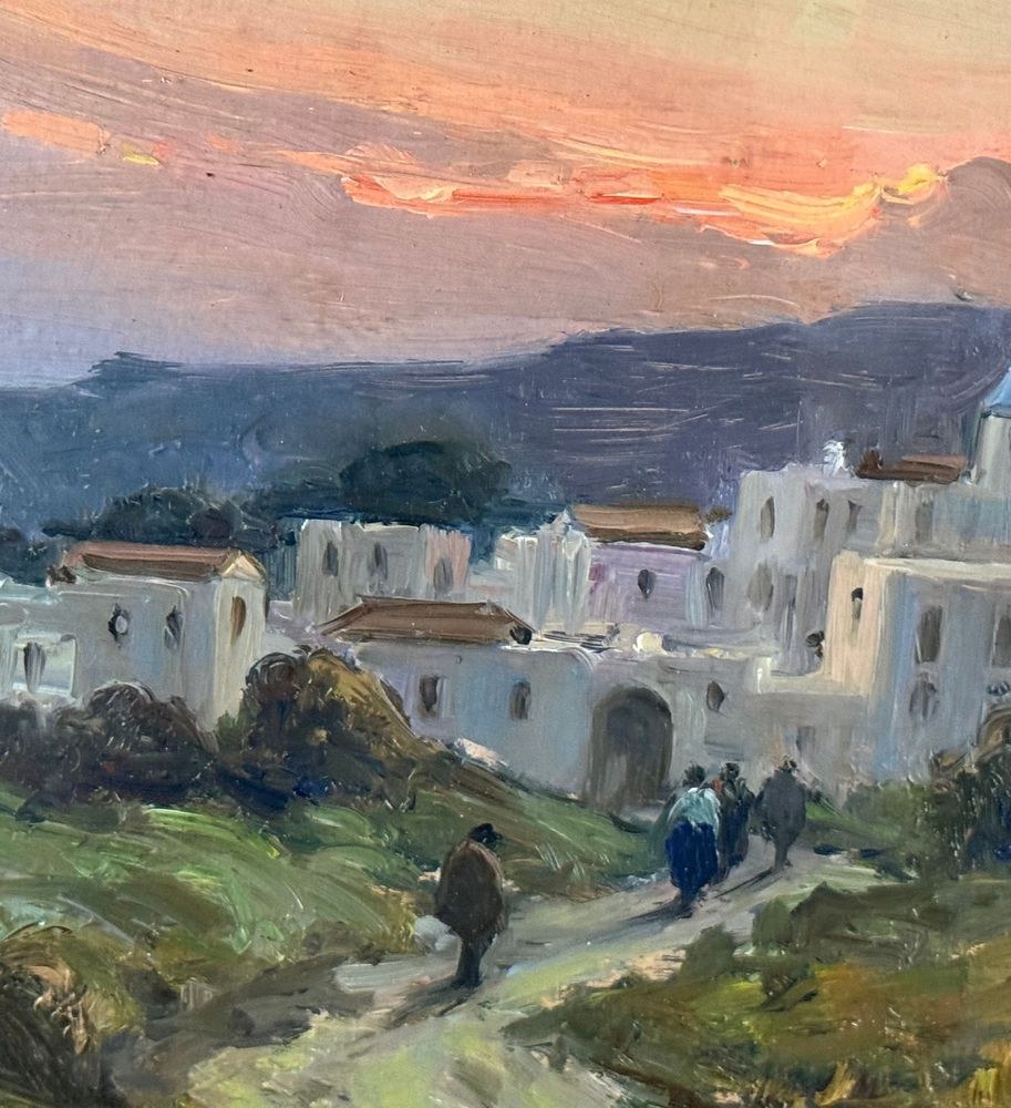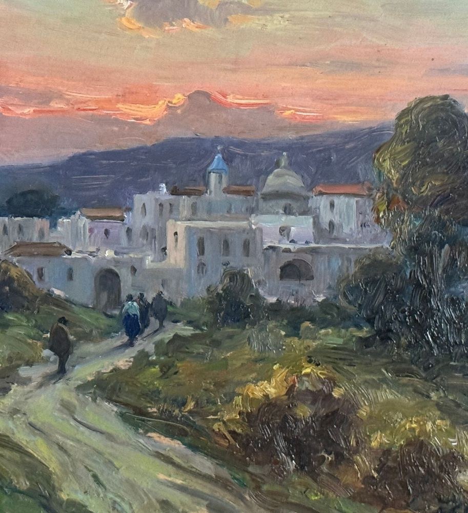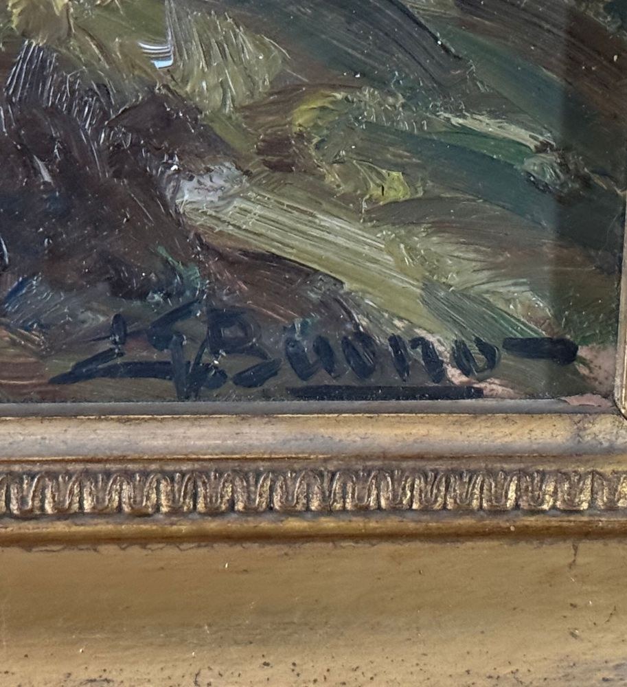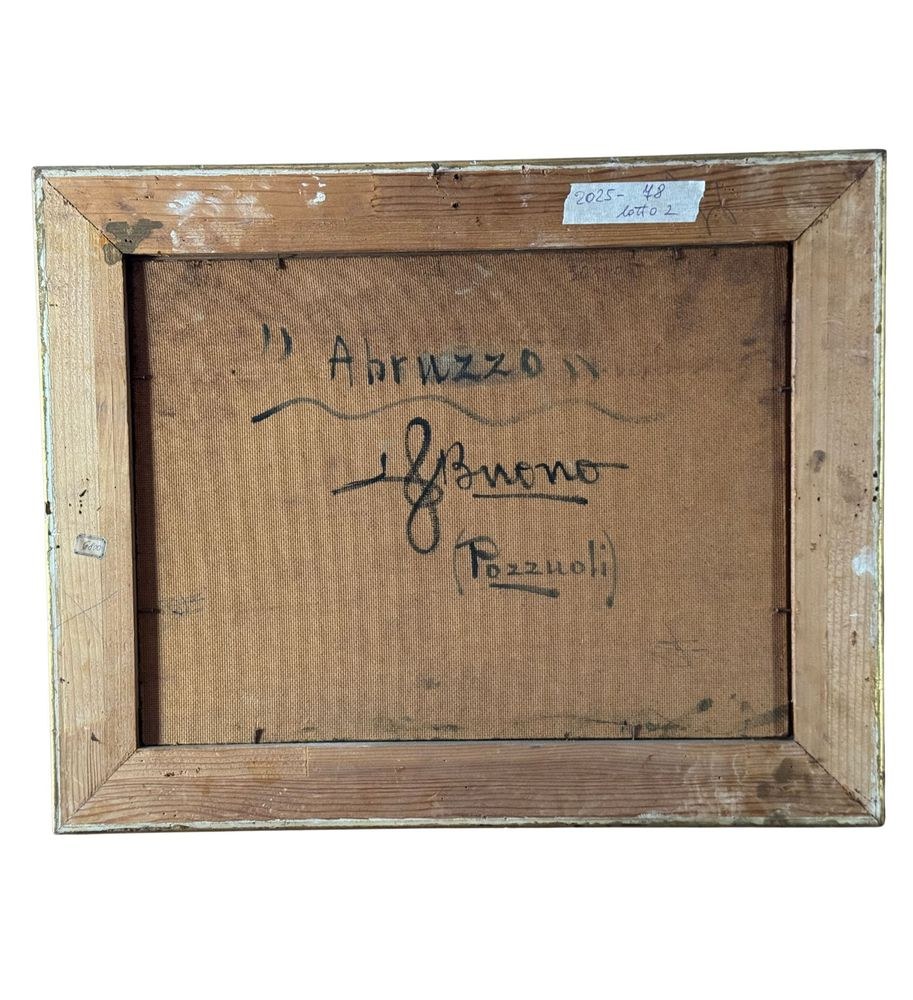 Oil painting on panel, 20th-century Italian school, depicting a landscape. Dimensions including frame: 51x41 cm. Inner frame dimensions: 40x30 cm. Signed lower right and on the back: Leon Giuseppe Buono (1888 – Pozzuoli, 1976). Work in excellent condition.