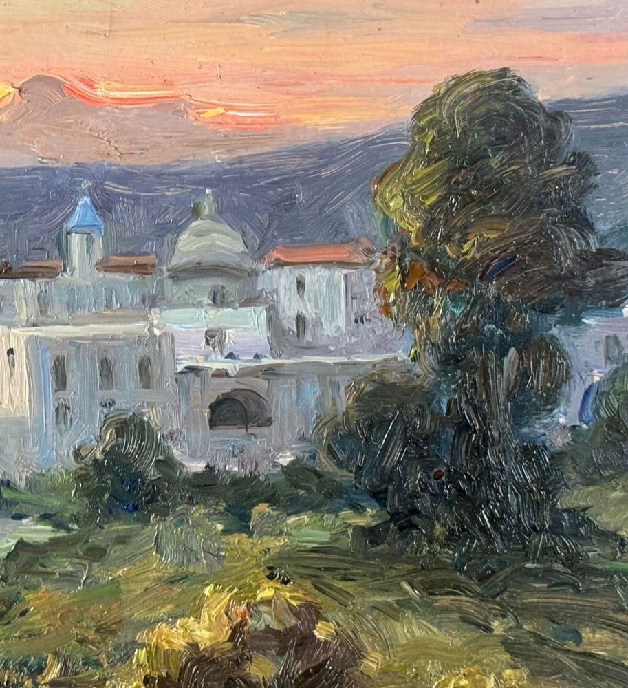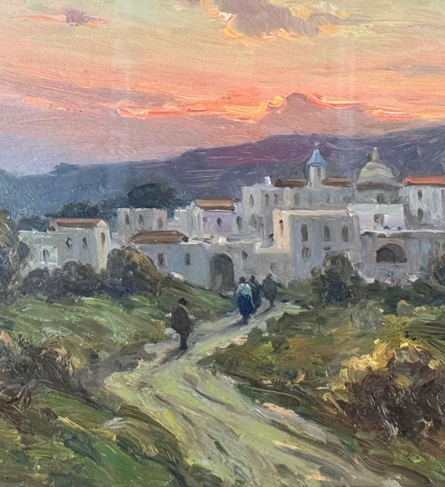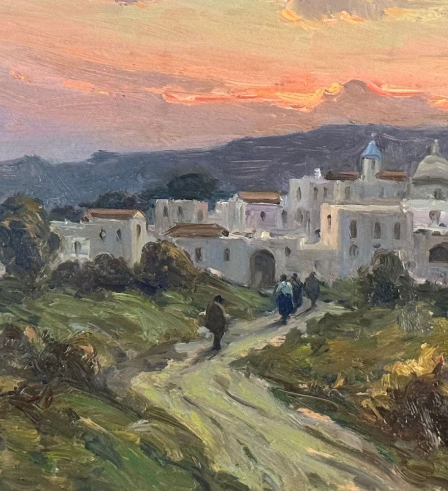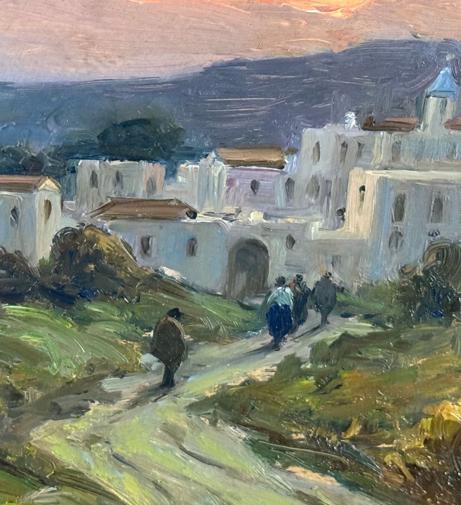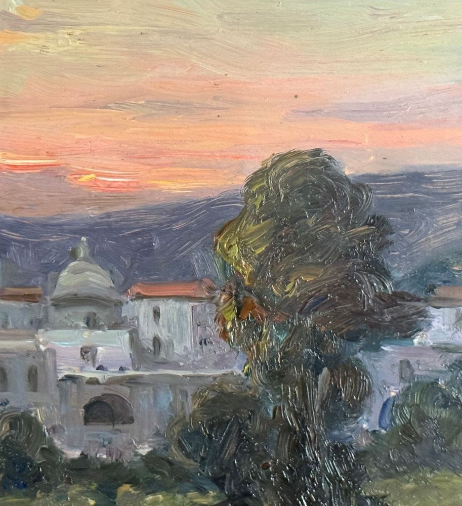Oil painting on panel, 20th-century Italian school, depicting a landscape. Dimensions including frame: 51x41 cm. Inner frame dimensions: 40x30 cm. Signed lower right and on the back: Leon Giuseppe Buono (1888 – Pozzuoli, 1976). Work in excellent condition.