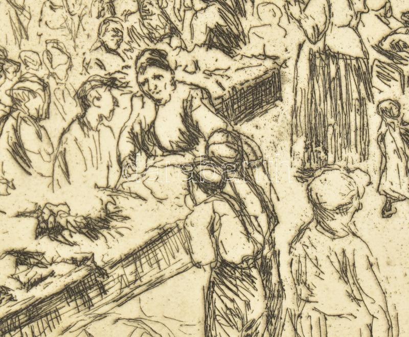 Liebermann, Max (1847-1935): Amsterdami zsidónegyed (Das Judenviertel in Amsterdam). Rézkarc, papír, jelzés nélkül. Paszpartuban. Megjelent: Hermann Struck, Die Kunst des Radierens. Ein Handbuch (Berlin: Bruno Cassirer). 13,5x18,5 cm. / Liebermann, Max (1847-1935): The old jewish quarter in Amsterdam. Etching on paper, unsigned. Published in the book: Hermann Struck: Die Kunst des Radierens. Ein Handbuch (Berlin: Bruno Cassirer).