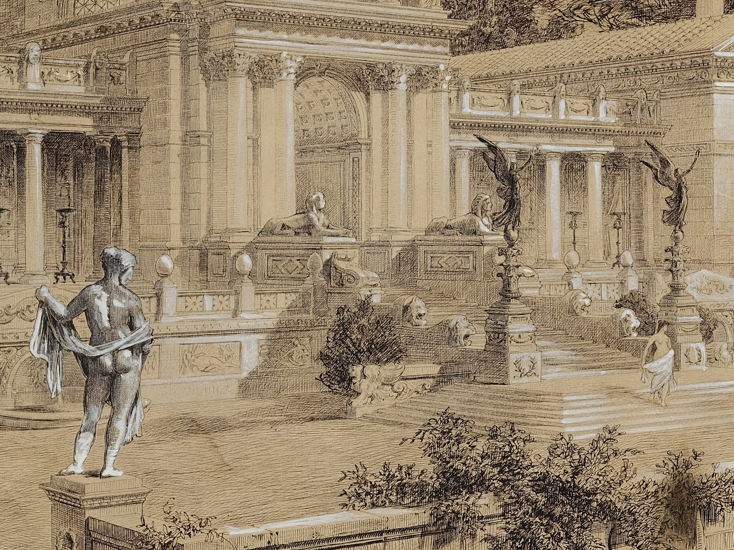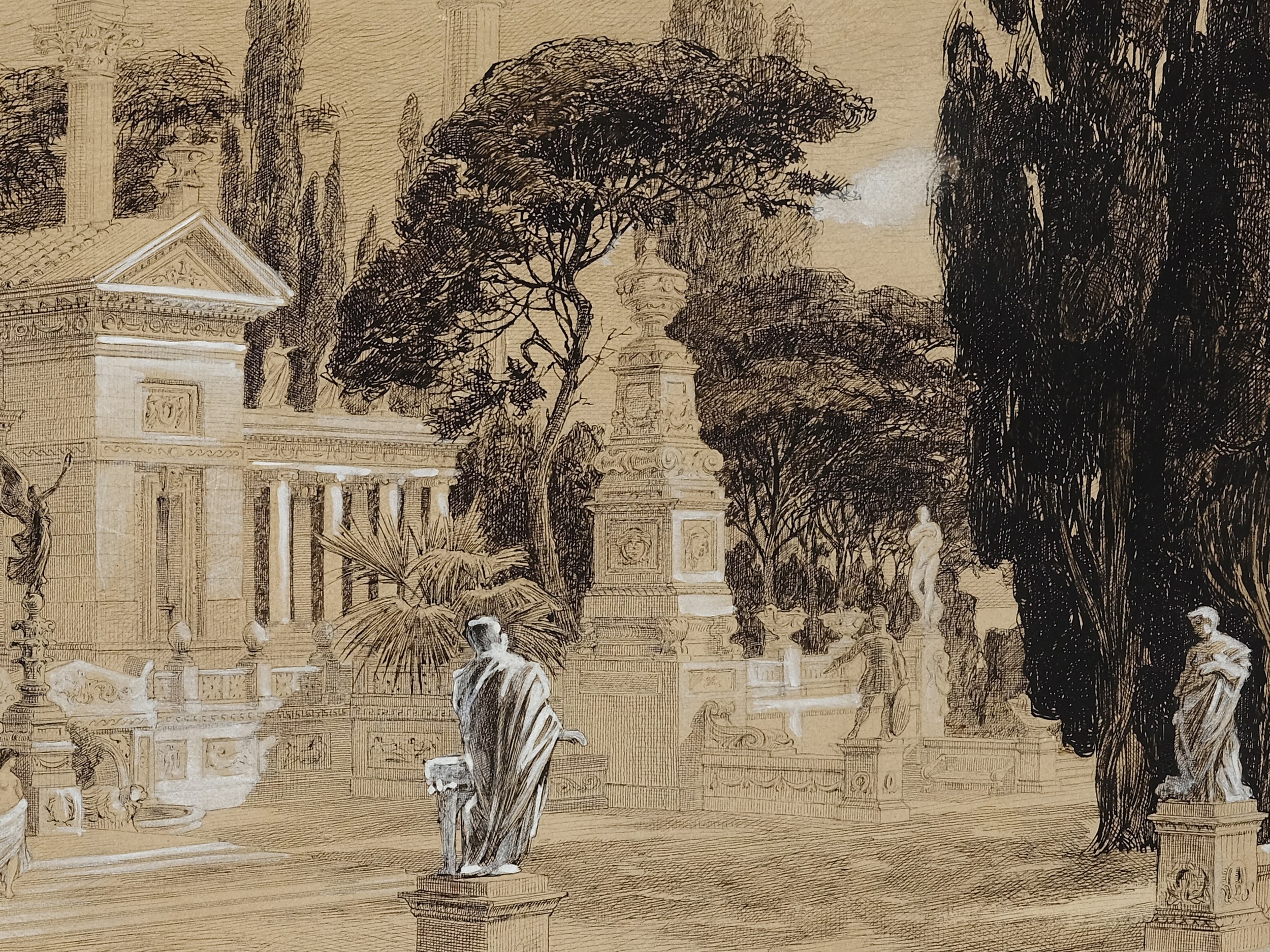 Ink drawing with opaque white on cardboard
