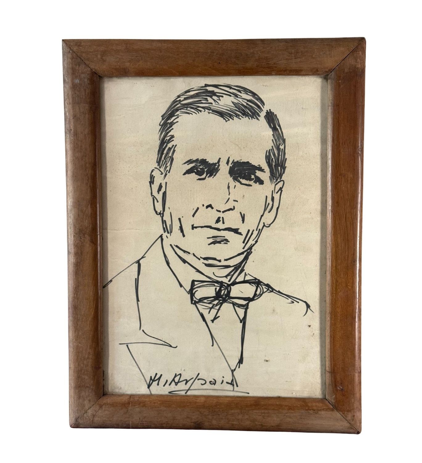Acrylic painting on paper, 20th century period, Italian school, depicting Male Portrait. Dimensions including frame: 43 x 56 cm. Dimensions inside the frame: 33 x 46 cm. Signed at the lower left M. Arpaia. Artwork in good condition.