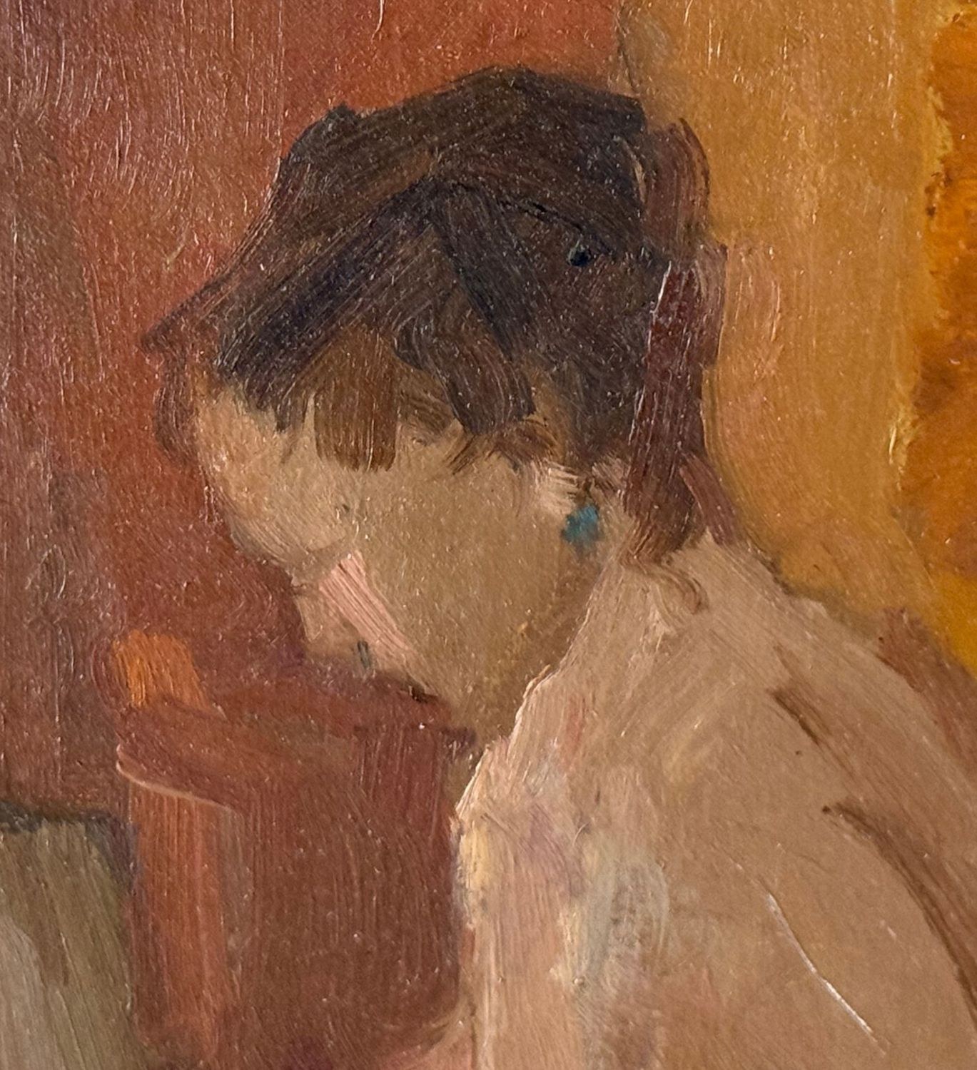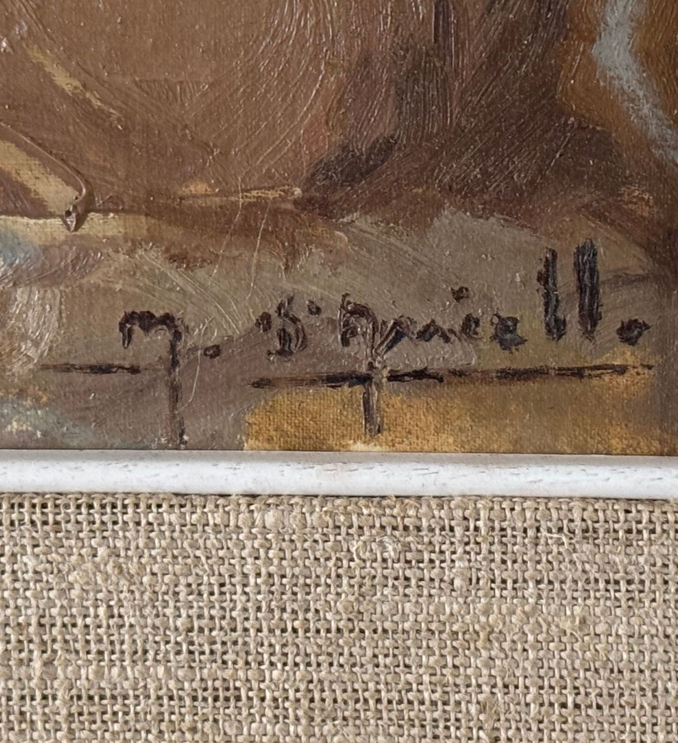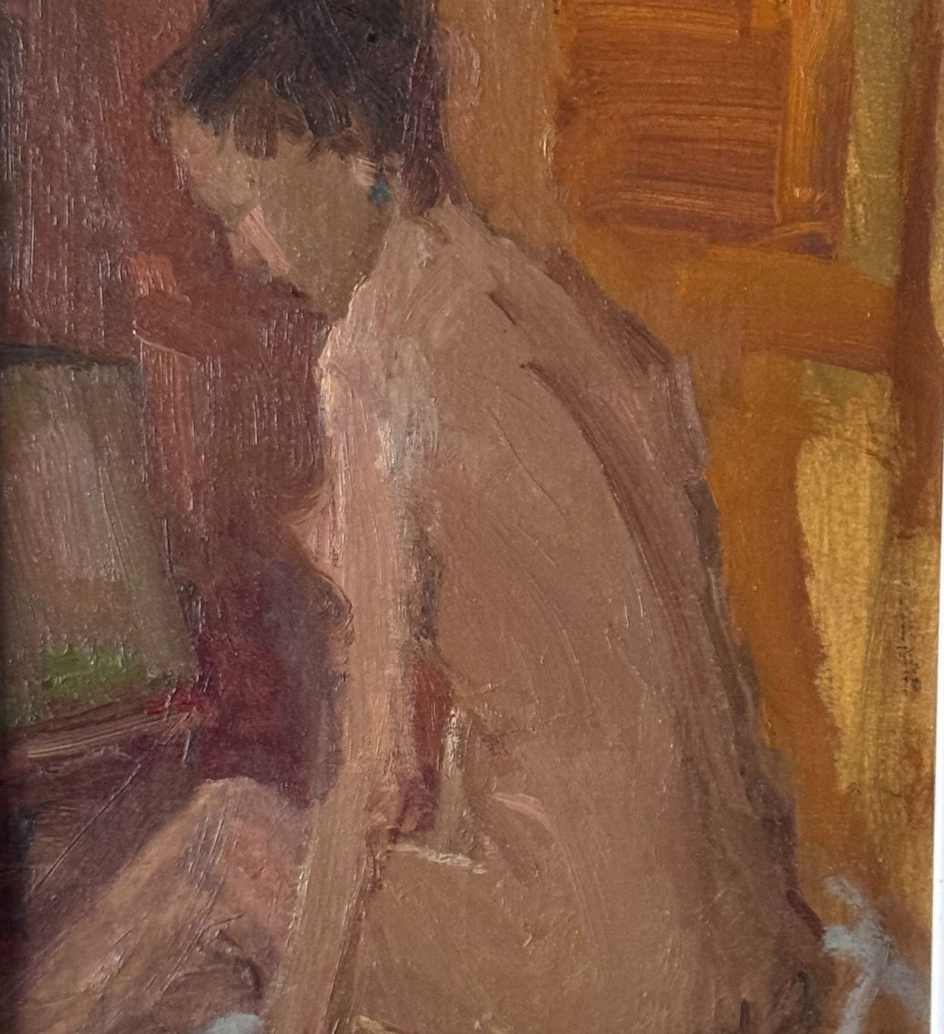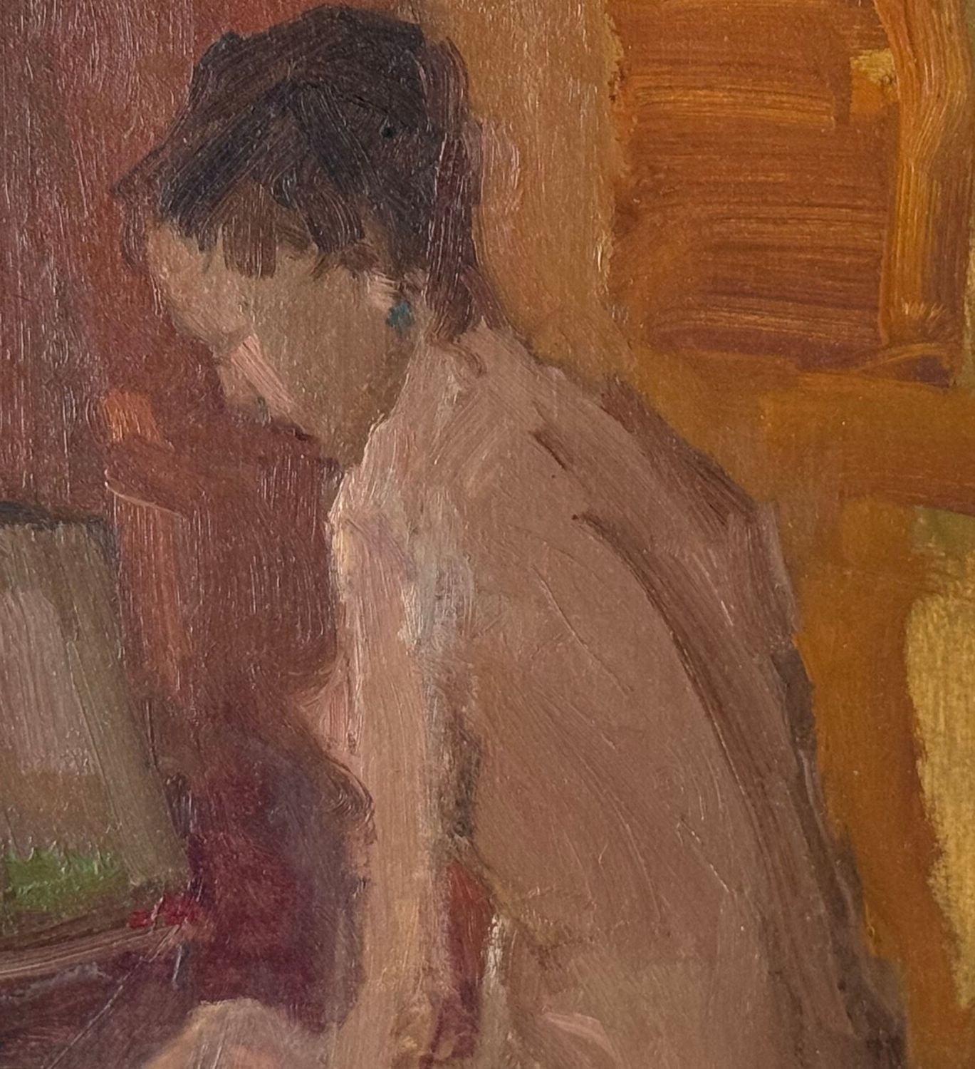 Oil on panel painting, 20th century, Italian school, depicting a female nude. Dimensions including frame: 35 x 47 cm. Inner frame dimensions: 20 x 30 cm. Signed lower right *M. D'Aniello*. The artwork is in good condition.
