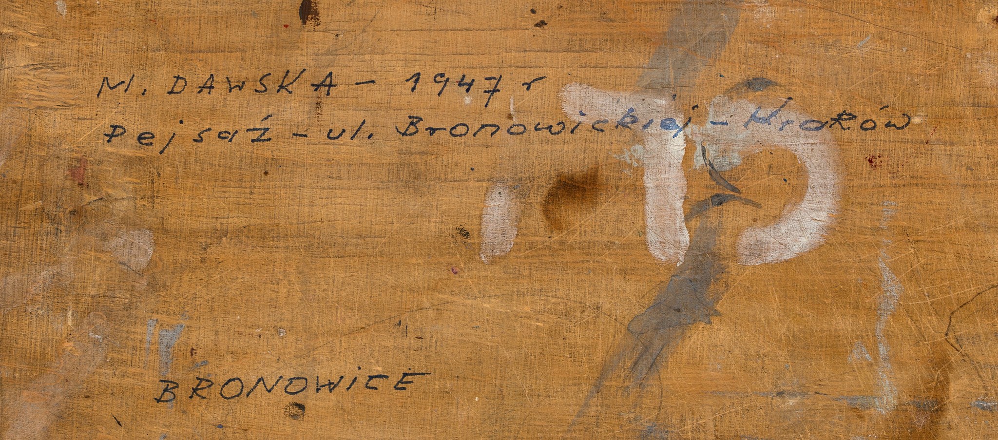 Na odwrocie odręczny opis: "M. DAWSKA – 1947 r | Pejsaż – ul. Bronowickiej – Kraków | BRONOWICE".