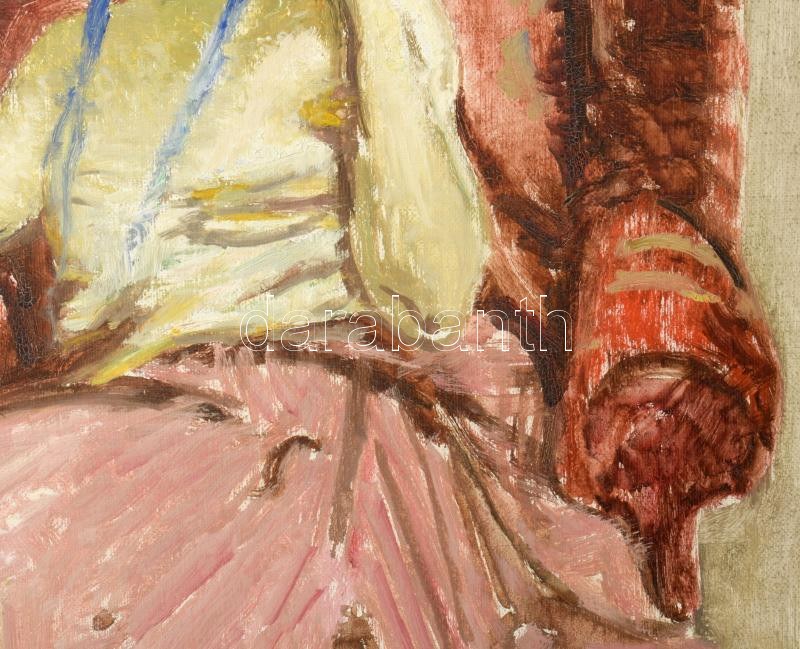 Márk Lajos (1867-1940): Dáma fotelben. Olaj, vászon, jelezve jobbra lent. Dekoratív fakeretben, 80×60 cm / Lajos Márk...