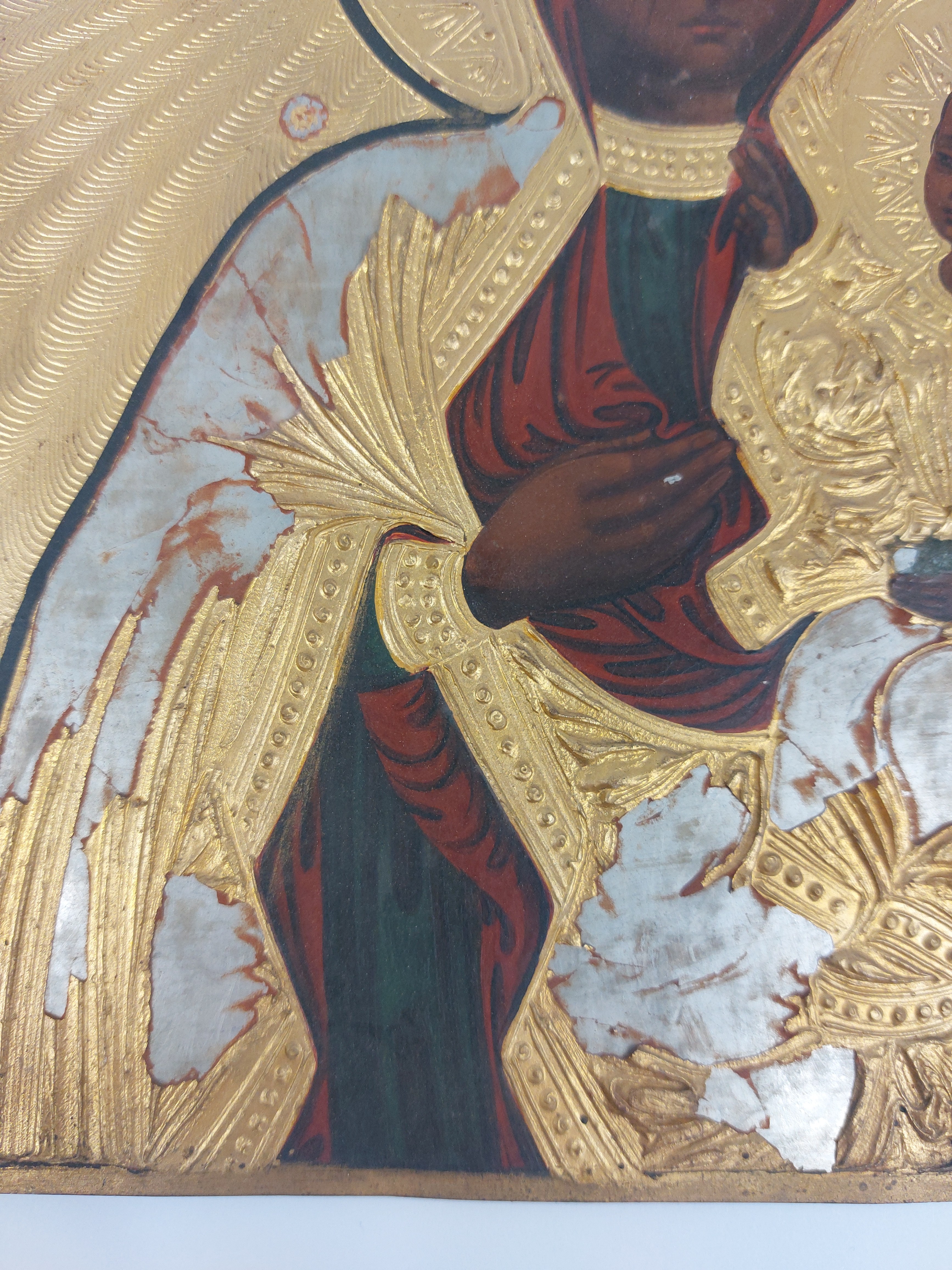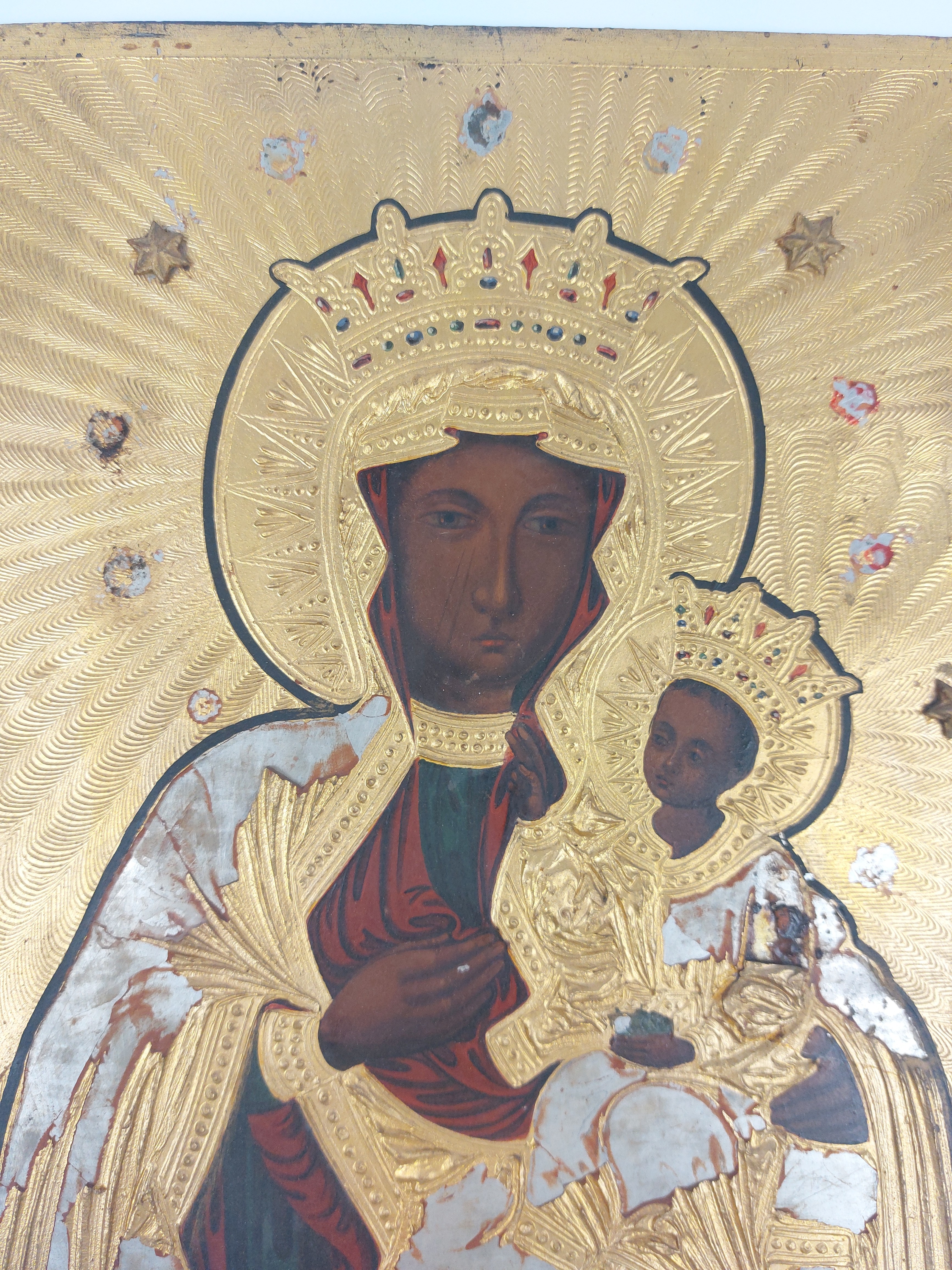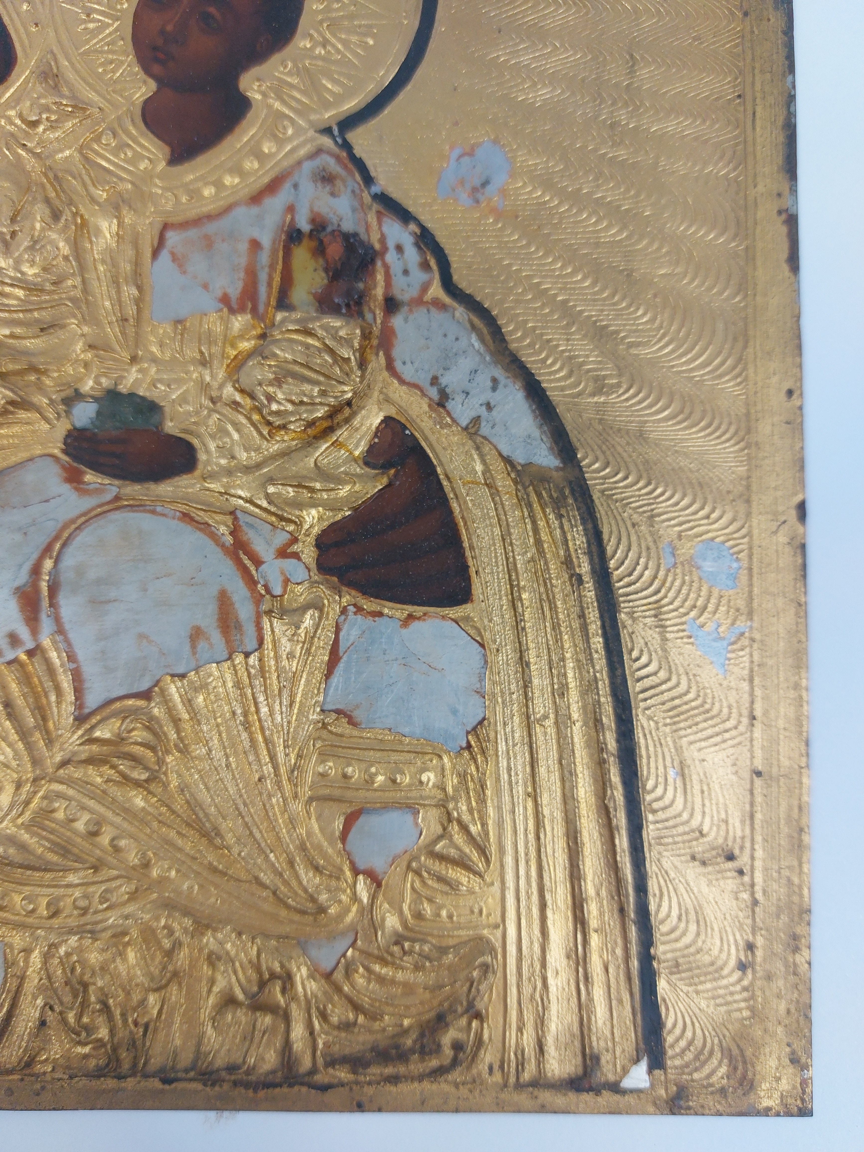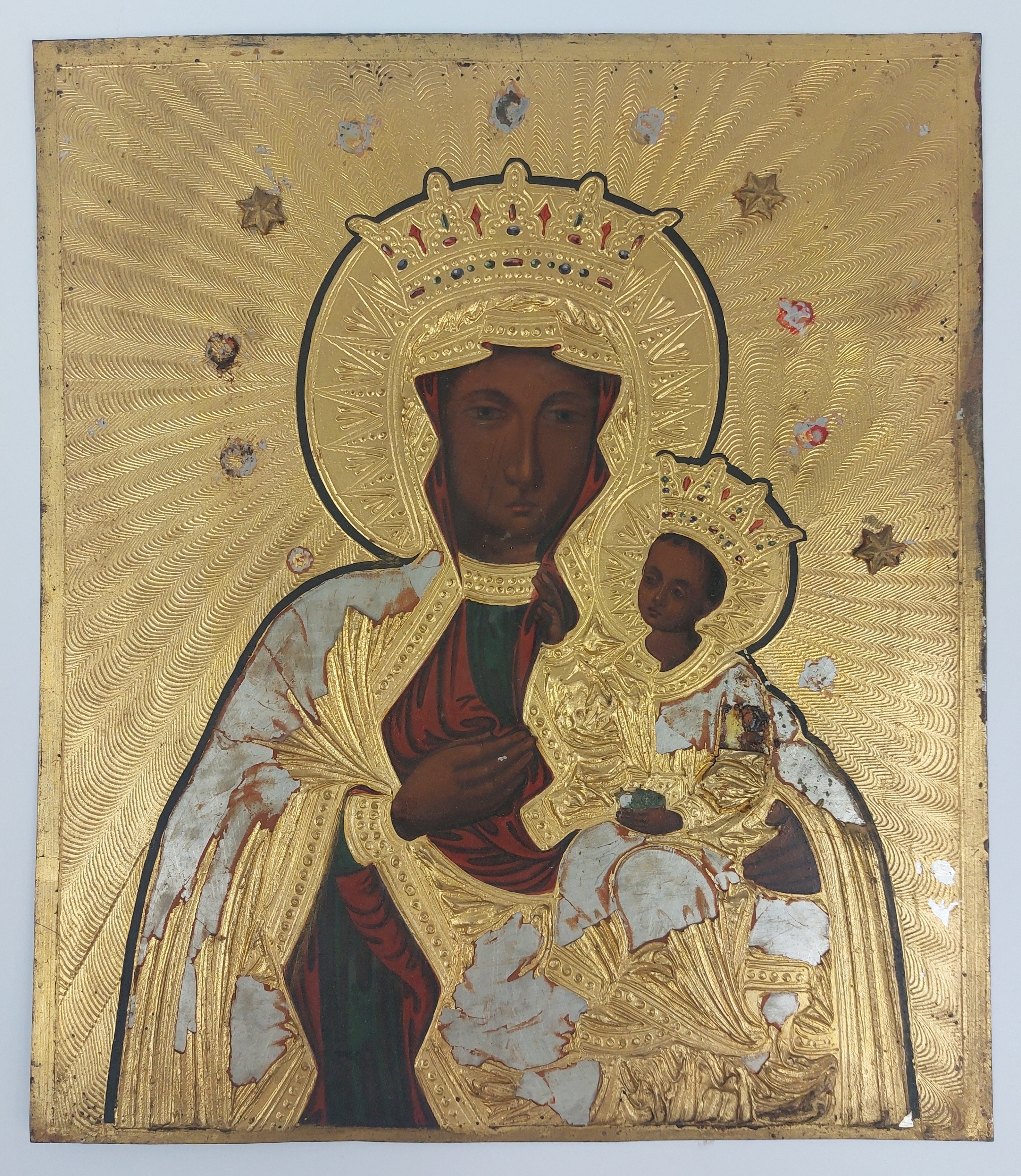obraz olejny na blasze stalowej, ze złoceniami, wymiary ok 28,5 x 24,5 cm