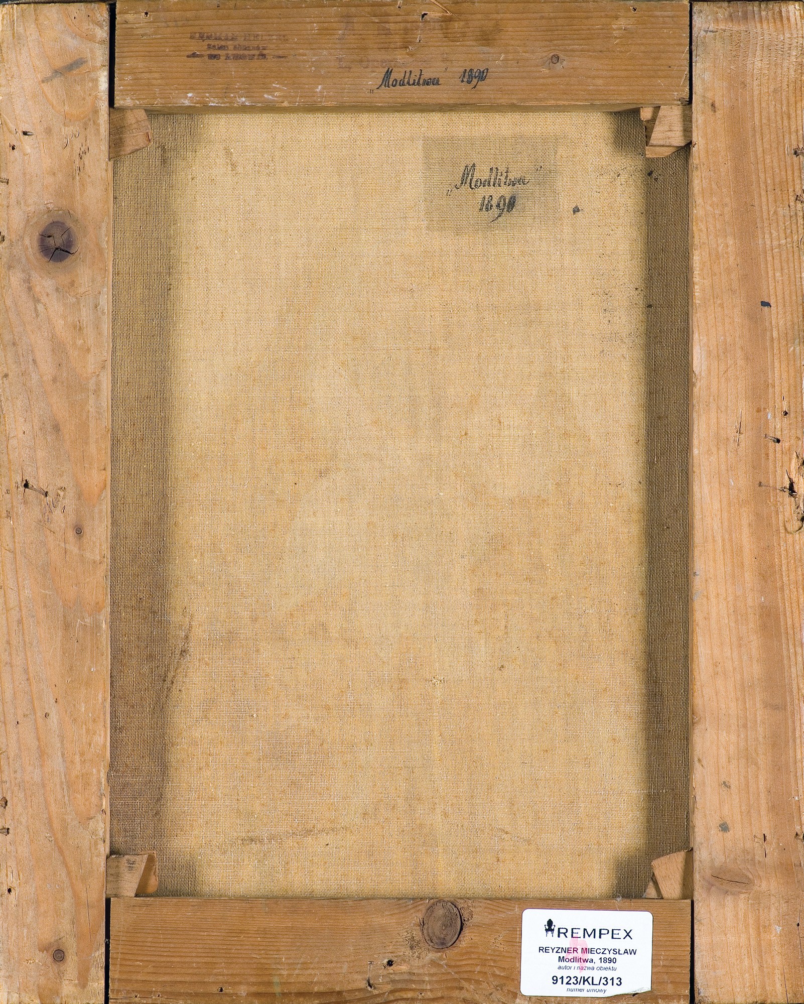 Na odwrocie na krośnie malarskim i płótnie napis: Modlitwa 1890.
