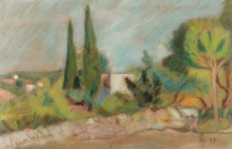 pastel, papier; 22 x 34,5 cm (w świetle passe-partout);