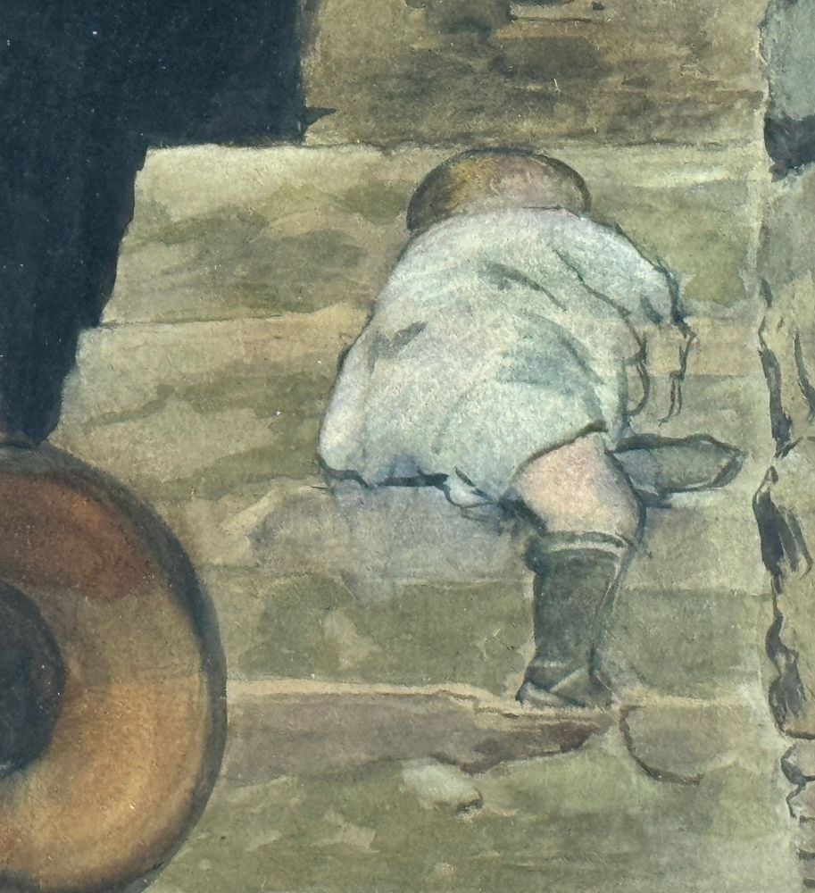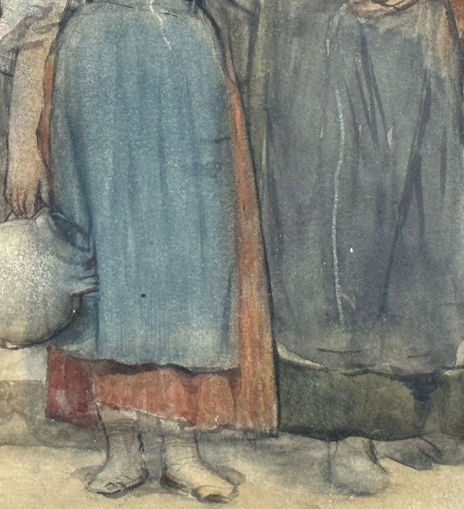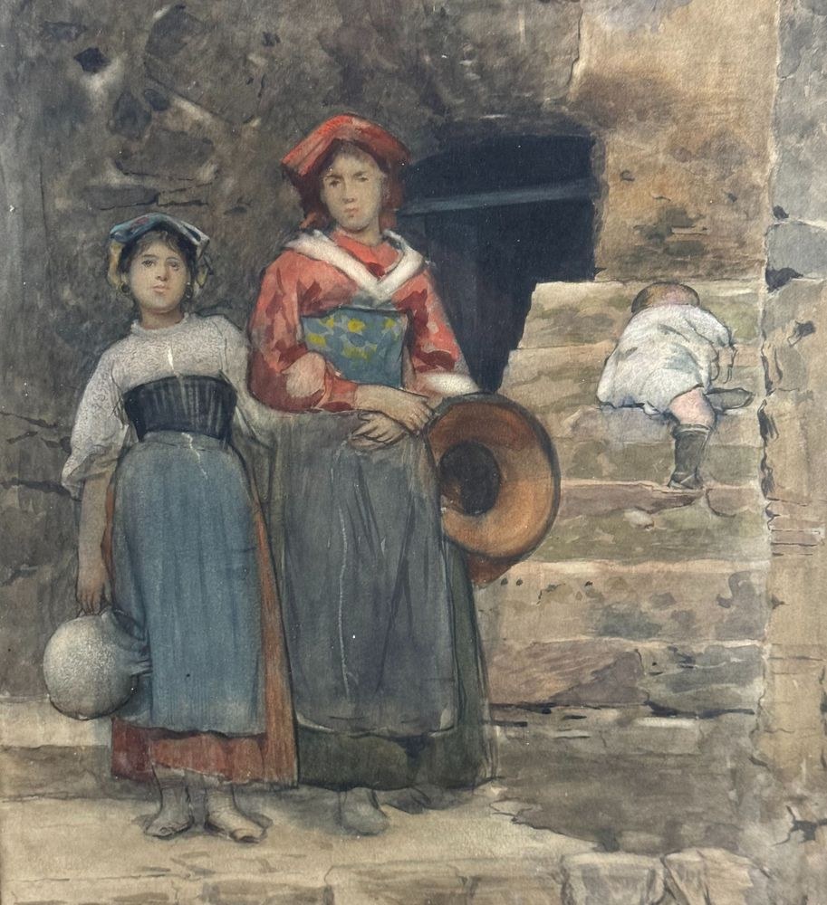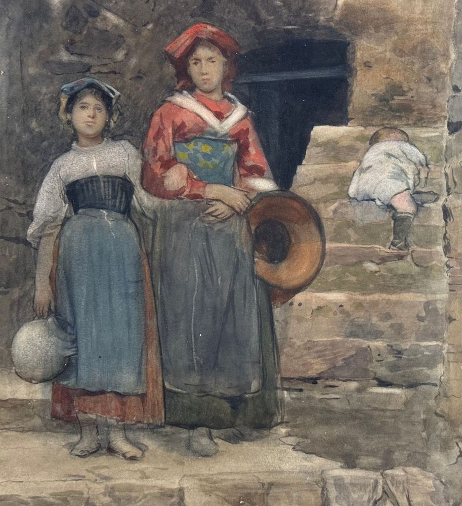 Watercolor on paper, 19th-century Italian school, depicting Peasant Women. Dimensions including frame: 50x67 cm. Dimensions inside the frame: 36x54 cm. Signed at the bottom right by Induni. The artwork is in good condition.