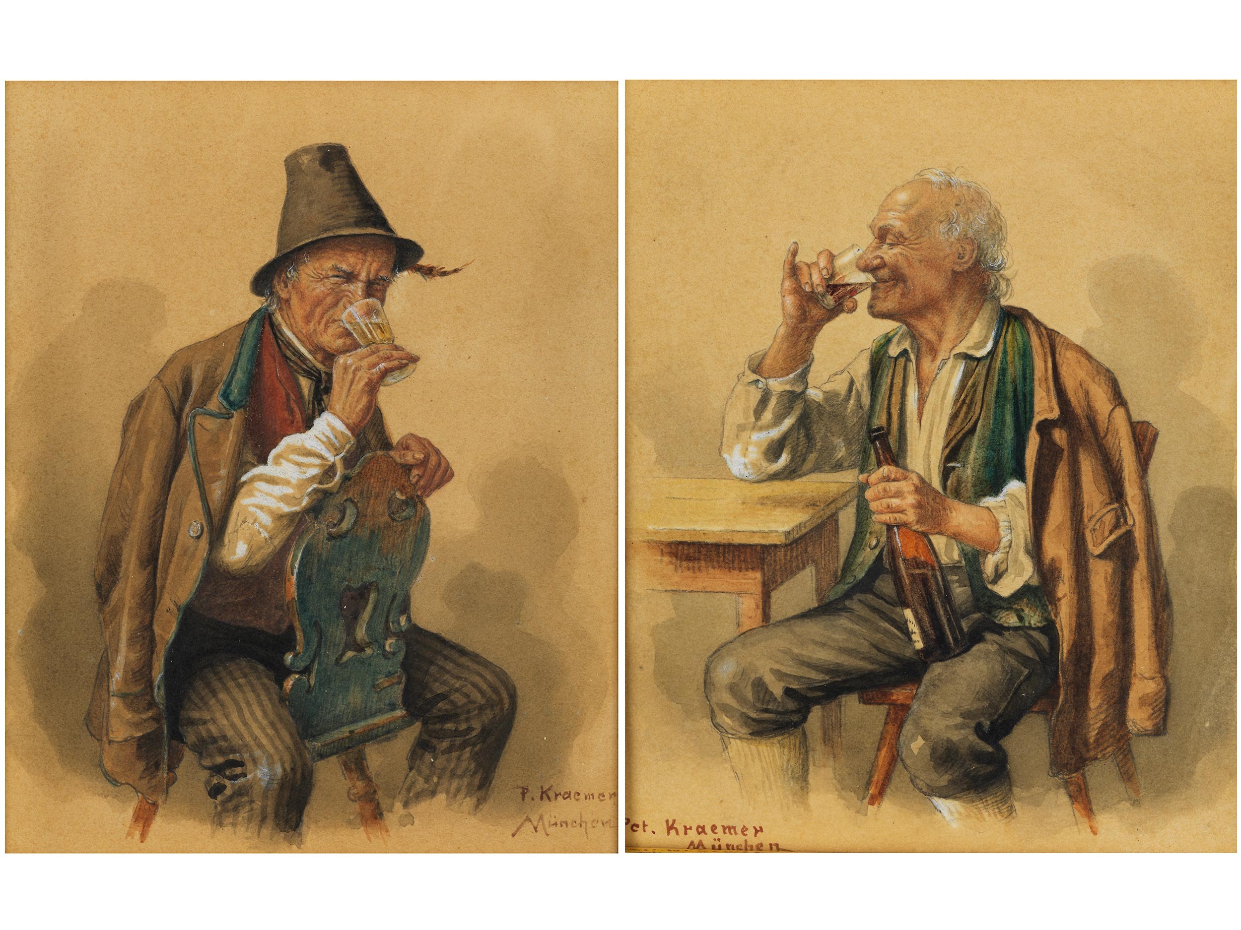 Eines links unten signiert und ortsbezeichnet „Pet. Kraemer München“, das andere rechts unten „P. Kraemer München“.