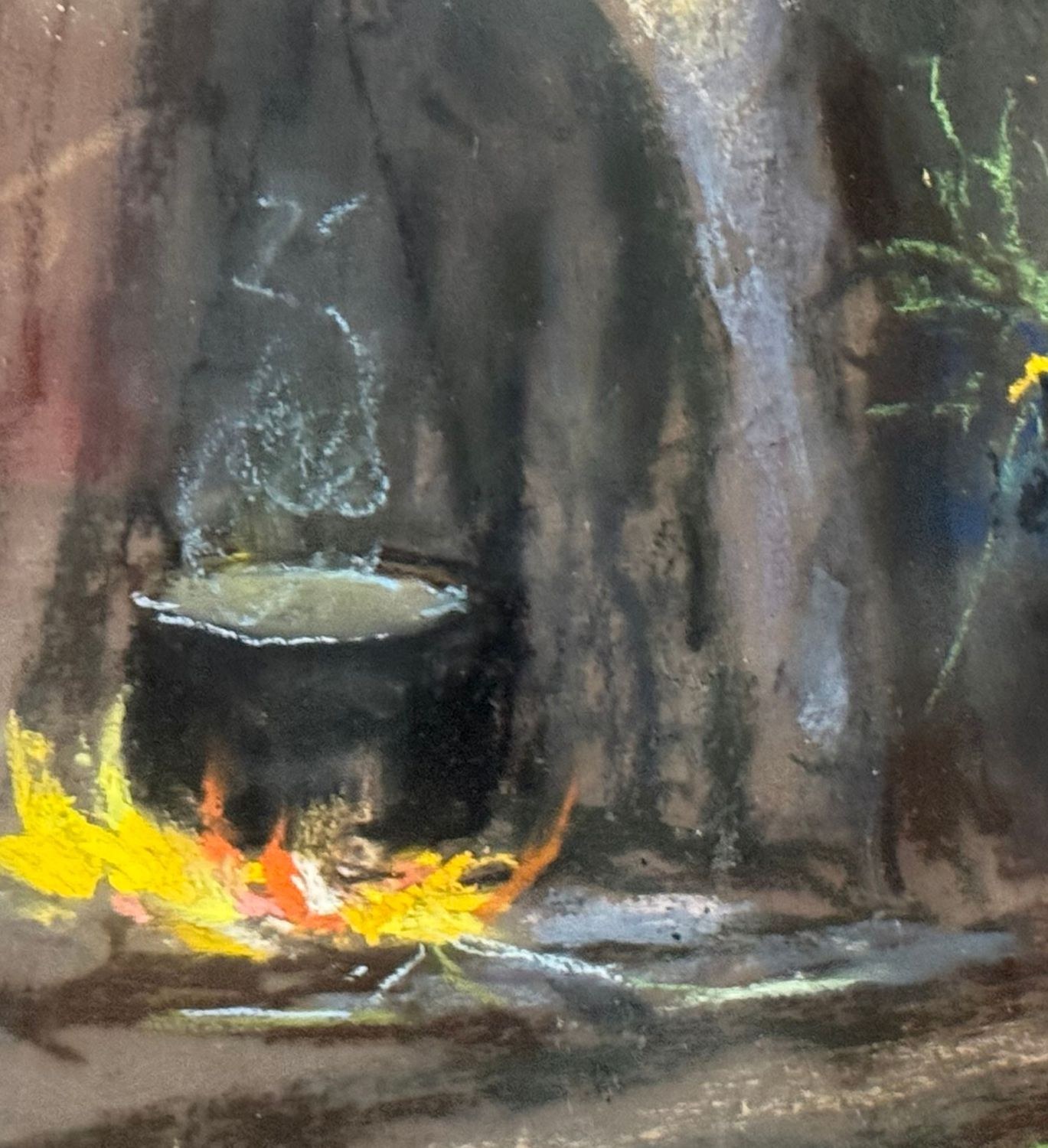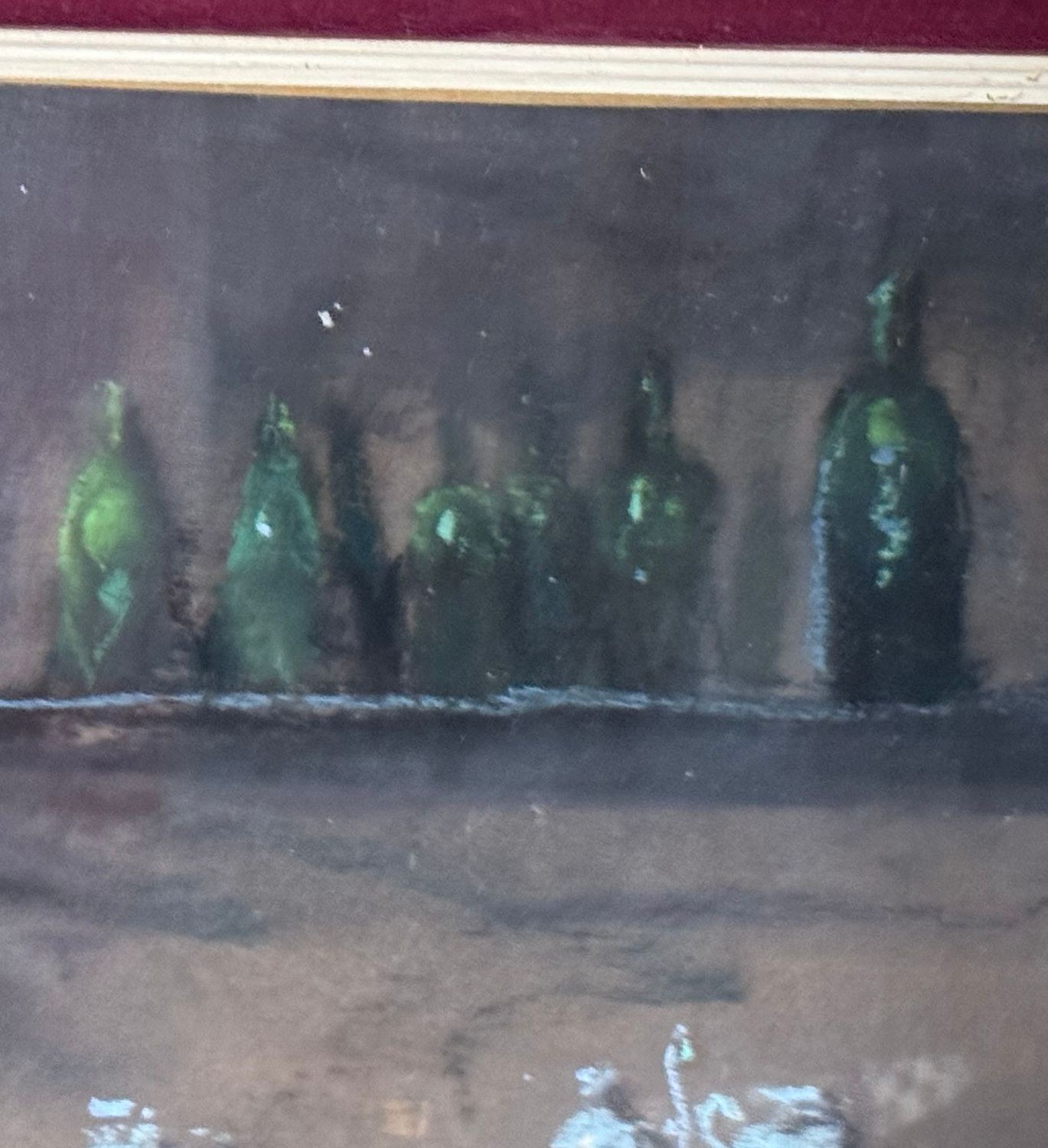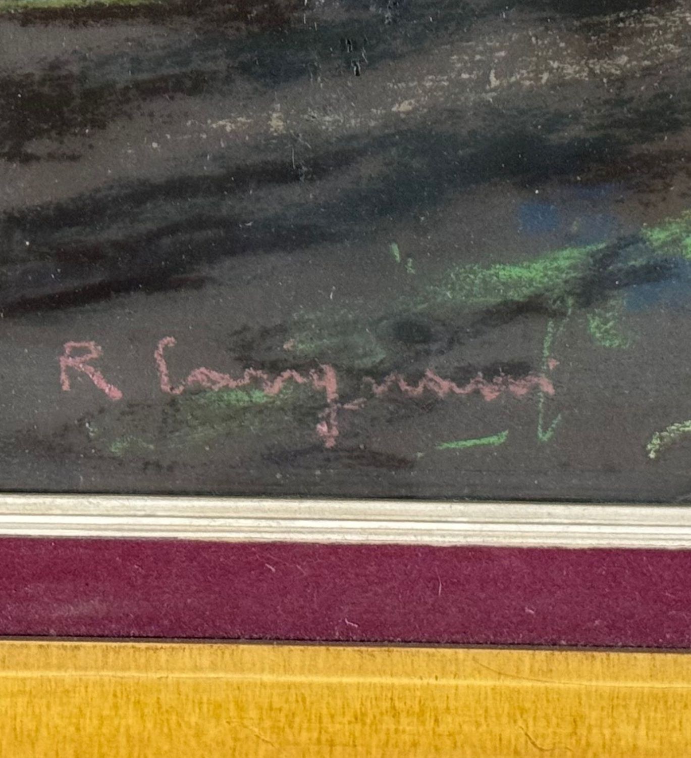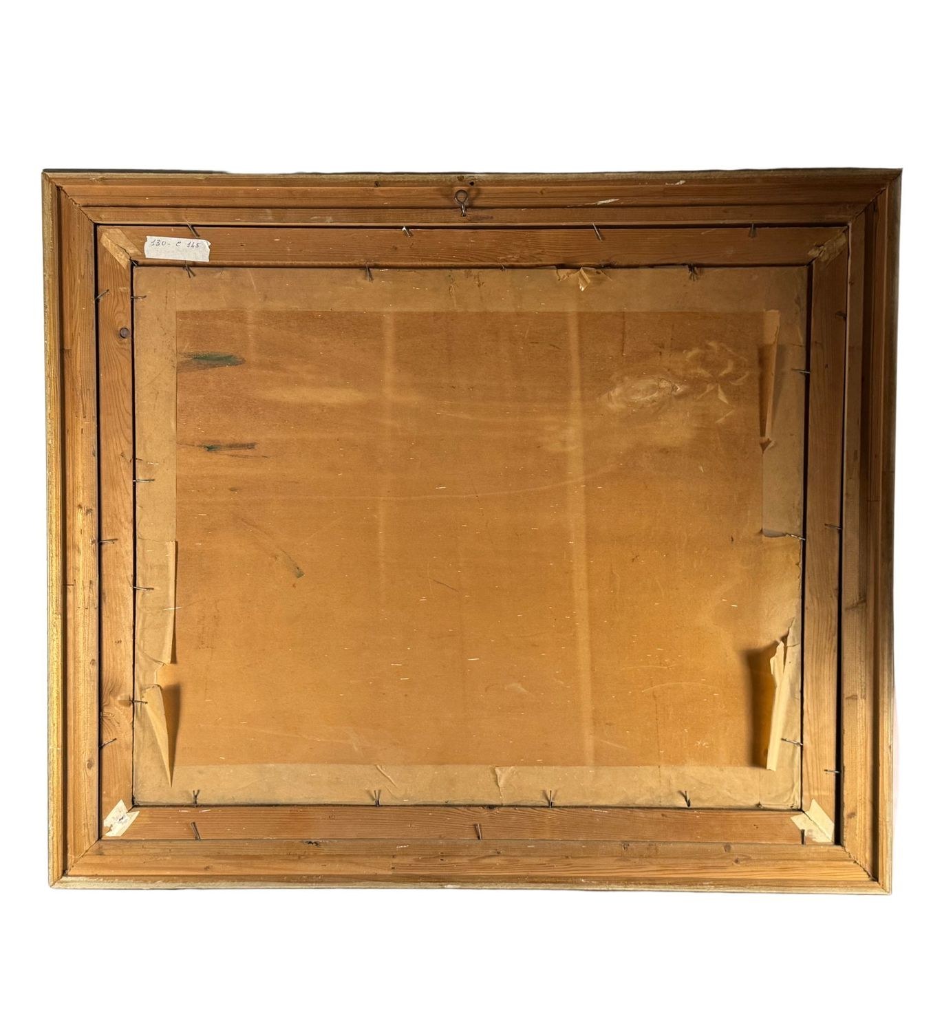 Oil and pastel on board painting, 20th-century period, Italian school, depicting an interior with chickens. Dimensions including frame: 101x86 cm. Inner frame dimensions: 80x60 cm. Bearing signature lower left: R. Carignani. The artwork is in good condition.