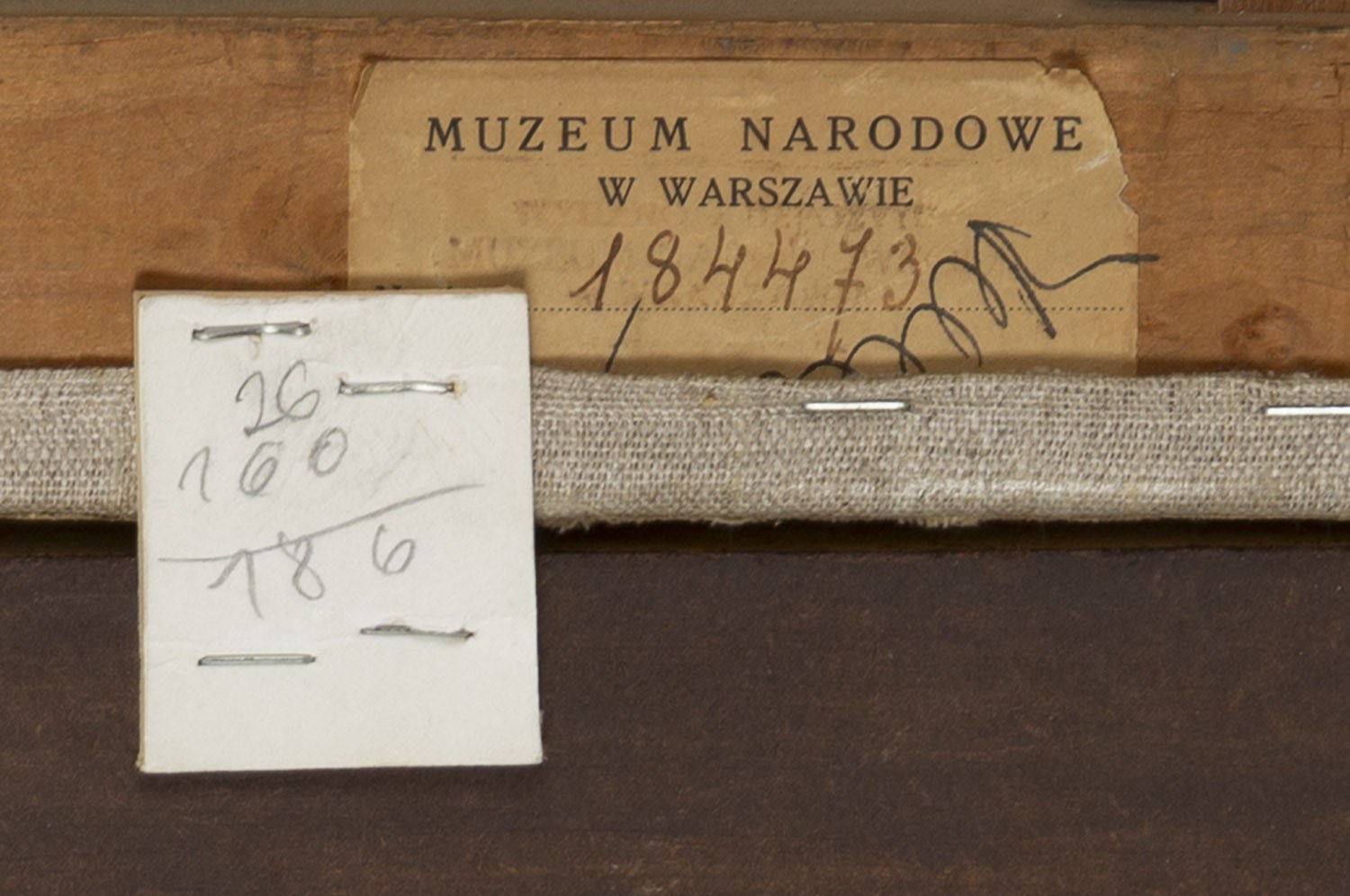 inne tytuły: Stacja; na odwrociu papierowa nalepka wystawowa z Muzeum Jacka Malczewskiego w Radomiu z 2011 roku oraz dwie nalepki Muzeum Narodowego w Warszawie