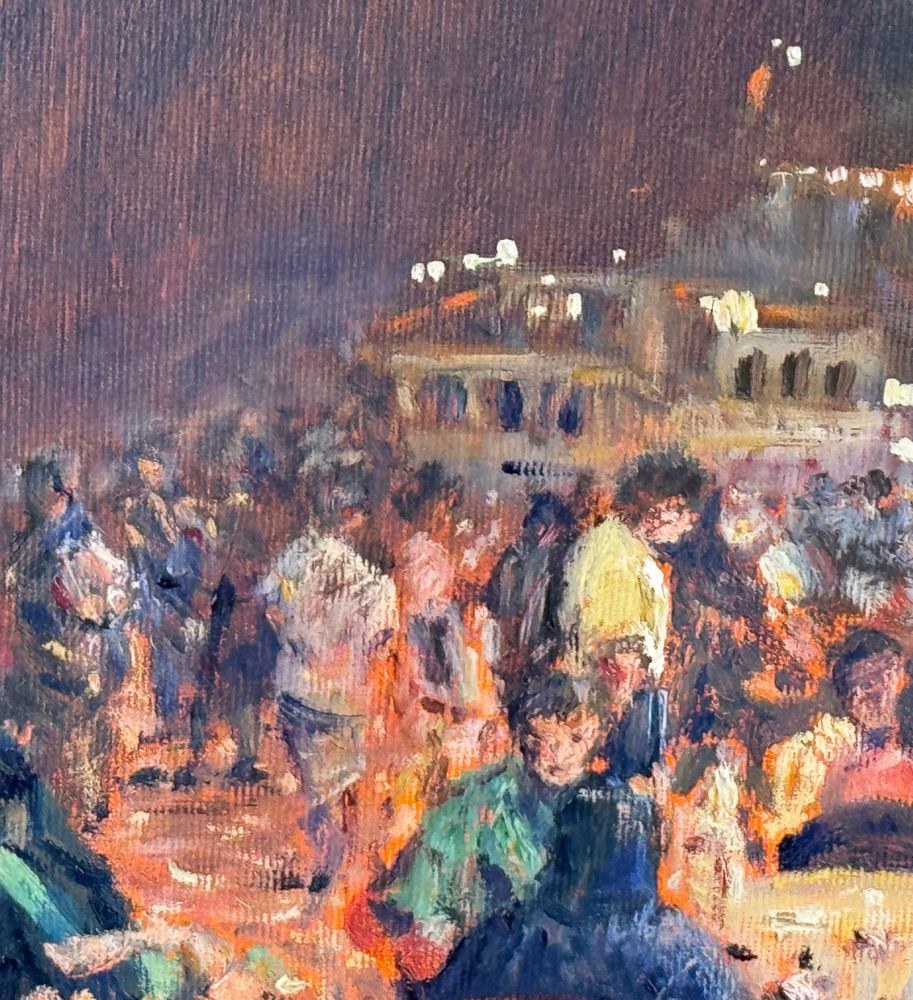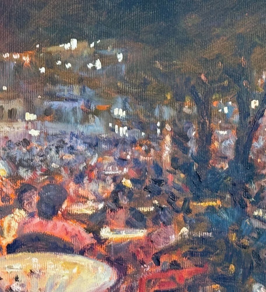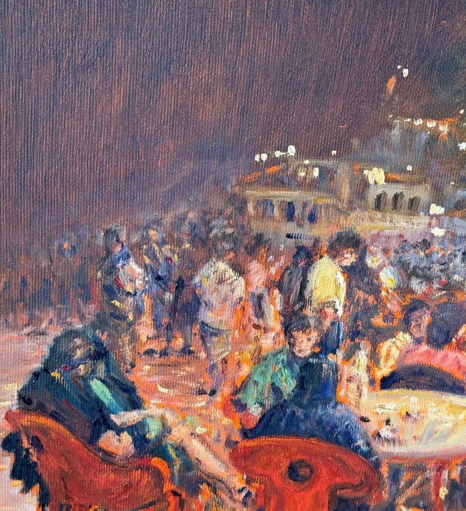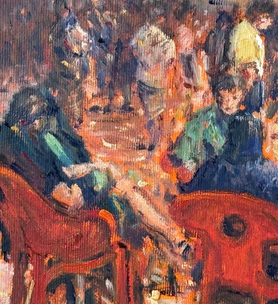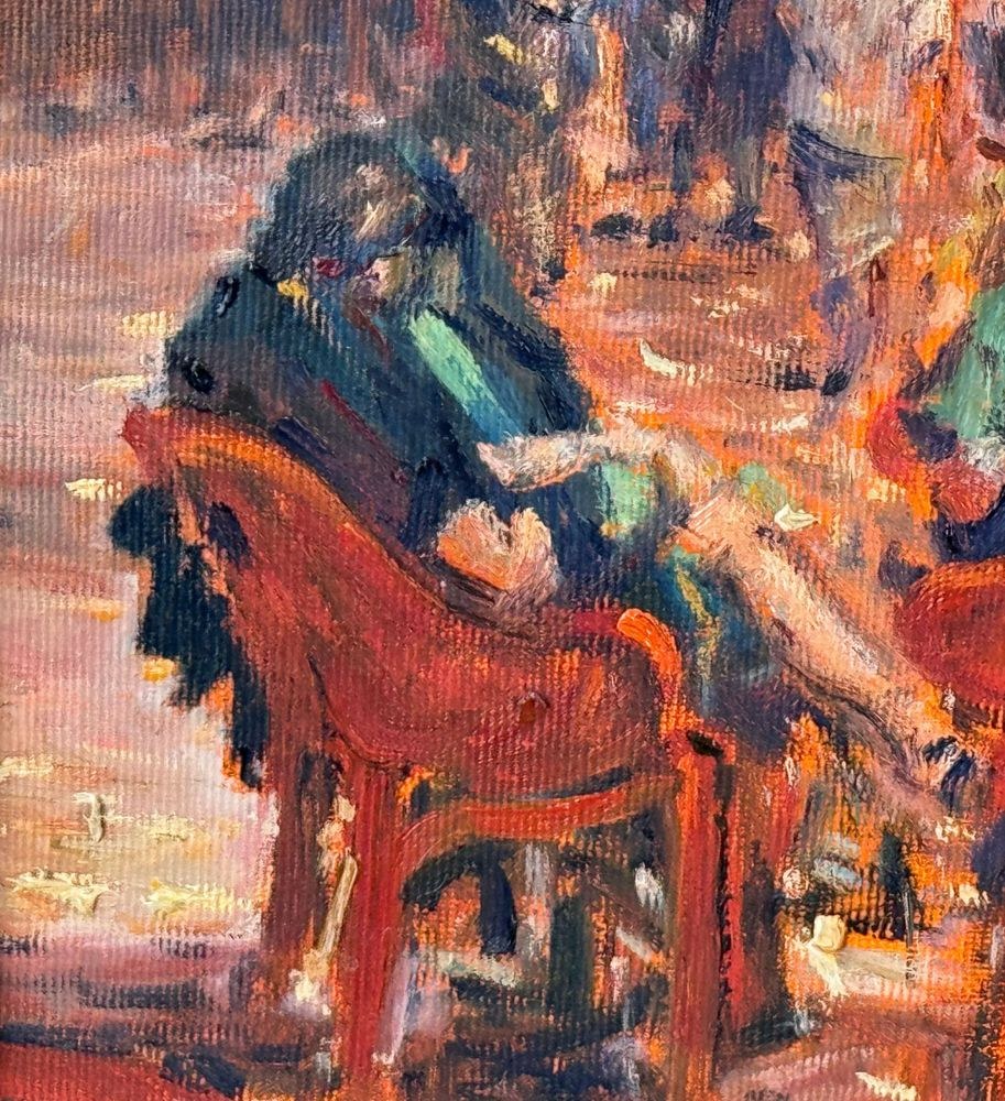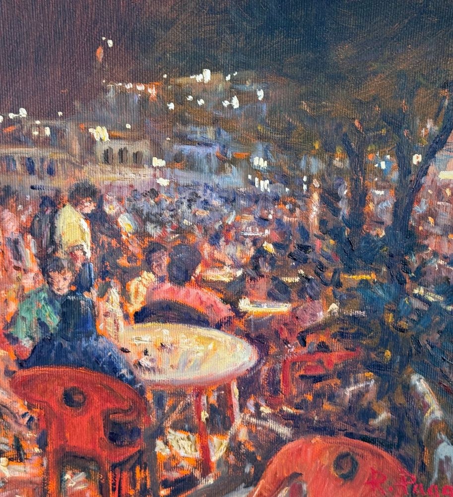 Oil painting on canvas, 20th century, Italian school, titled "At the Snack Bar (Diamante)". Dimensions including the frame: 60x50 cm. Inner frame dimensions: 40x30 cm. Signed in the lower right corner and with authentication on the back by Roberto Pagano. The artwork is in good condition.