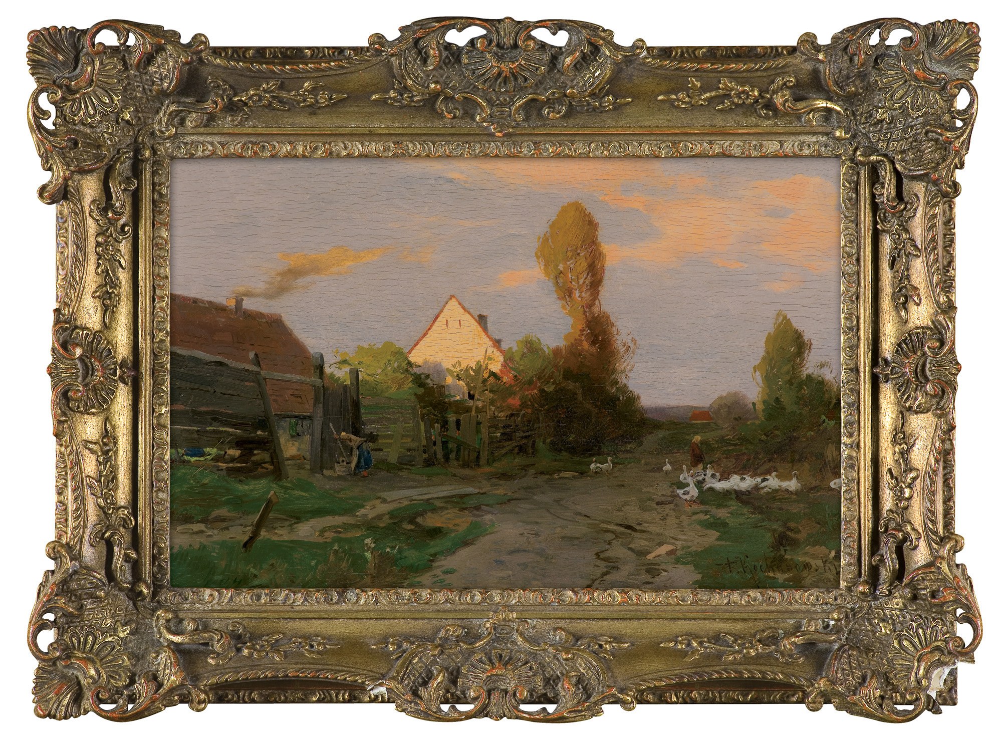 Roman Kochanowski (Kraków 1857 - Freising k. Monachium 1945) - malarz i grafik - był jednym z polskich artystów osiadłych i stałe działających w Monachium. Studia malarskie rozpoczął w Krakowie; początkowo w prywatnej pracowni Maksymiliana Cercha, a w latach 1873- 1875 w Szkole Sztuk Pięknych u Władysława Łuszczkiewicza i pejzażysty Henryka Grabińskiego. Przez następne dwa lata uczył się jeszcze na wydziale pejzażu w Akademii wiedeńskiej. W 1881 przeniósł się do Monachium, gdzie miał własną pracownię, a niebawem założył rodzinę. Często jednak przyjeżdżał do Krakowa, bywał w Poznańskiem, odbył podróż po Galicji i Podolu, rysując krajobrazy i widoki miast, które weszły następnie do albumu wydanego w Wiedniu w roku 1898. Artysta należał do monachijskiego Kunstvereinu, brał udział w wielu wystawach w Niemczech, w Wiedniu, w Londynie; swoje prace przesyłał też na pokazy krajowe. Malował przede wszystkim pejzaże a tylko z rzadka kwiaty i portrety. Stałym i ulubionym motywem jego obrazów był polski, podkrakowski krajobraz z wplecionymi weń postaciami ludzi. Obrazy artysty, malowane często na niewielkich deseczkach, pozbawione warstwy anegdotycznej odznaczają się niecodziennymi walorami malarskimi, harmonią koloru i pełnym liryzmu nastrojem. Zauważane i nagradzane na licznych wystawach były też wysoko cenione na rynku sztuki. W roku 1892, po wystawie w Wiedniu, jeden z obrazów Kochanowskiego zakupił do swoich zbiorów cesarz Franciszek Józef; dwa inne nabyli członkowie cesarskiej rodziny. Wielbicielem jego malarstwa był Karol Józef Luitpold, książę regent Bawarii. Wielka wrażliwość artysty na krajobraz i przyrodę widoczna jest także w jego rysunkach i akwafortach.