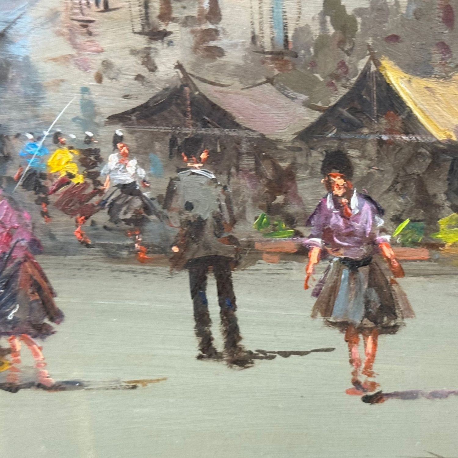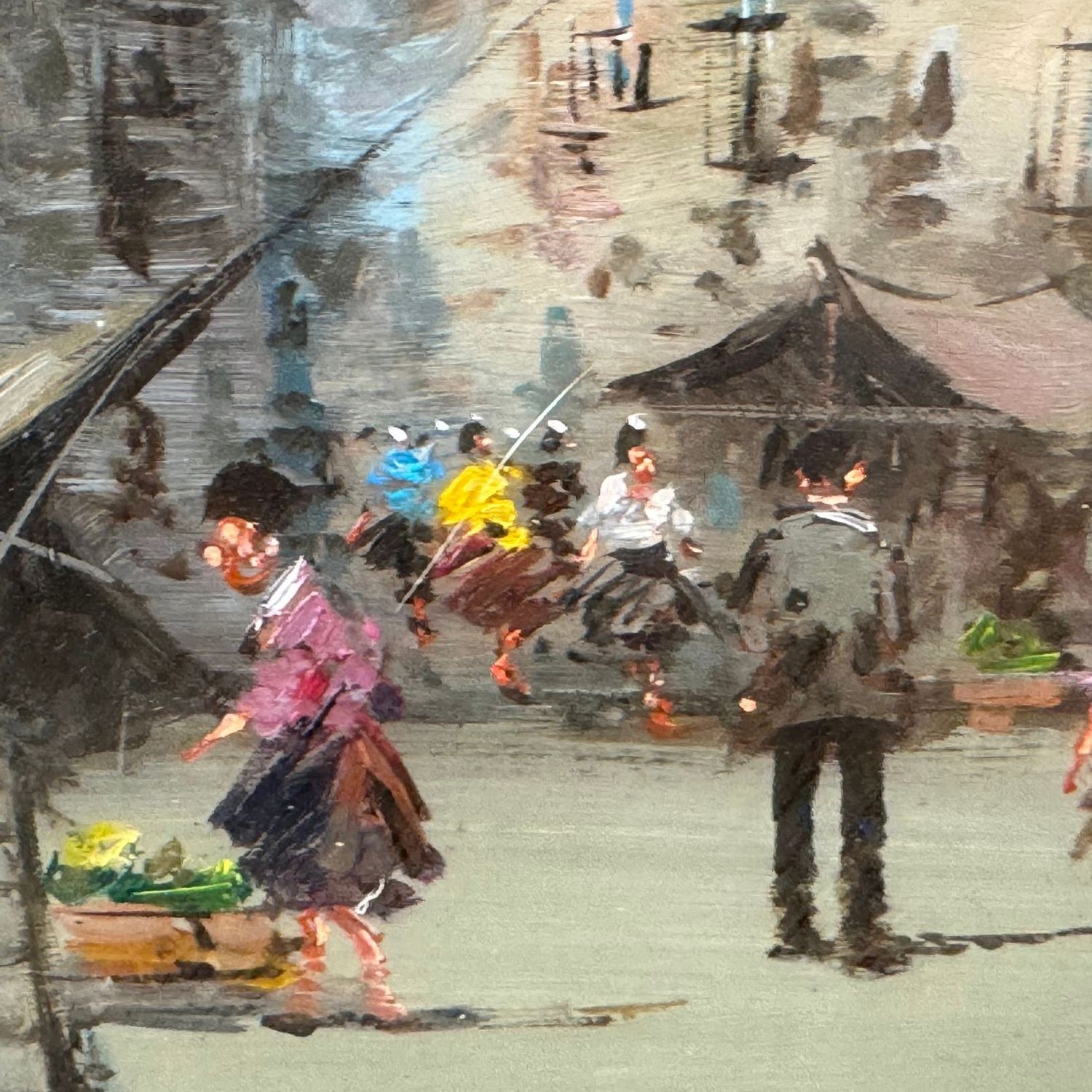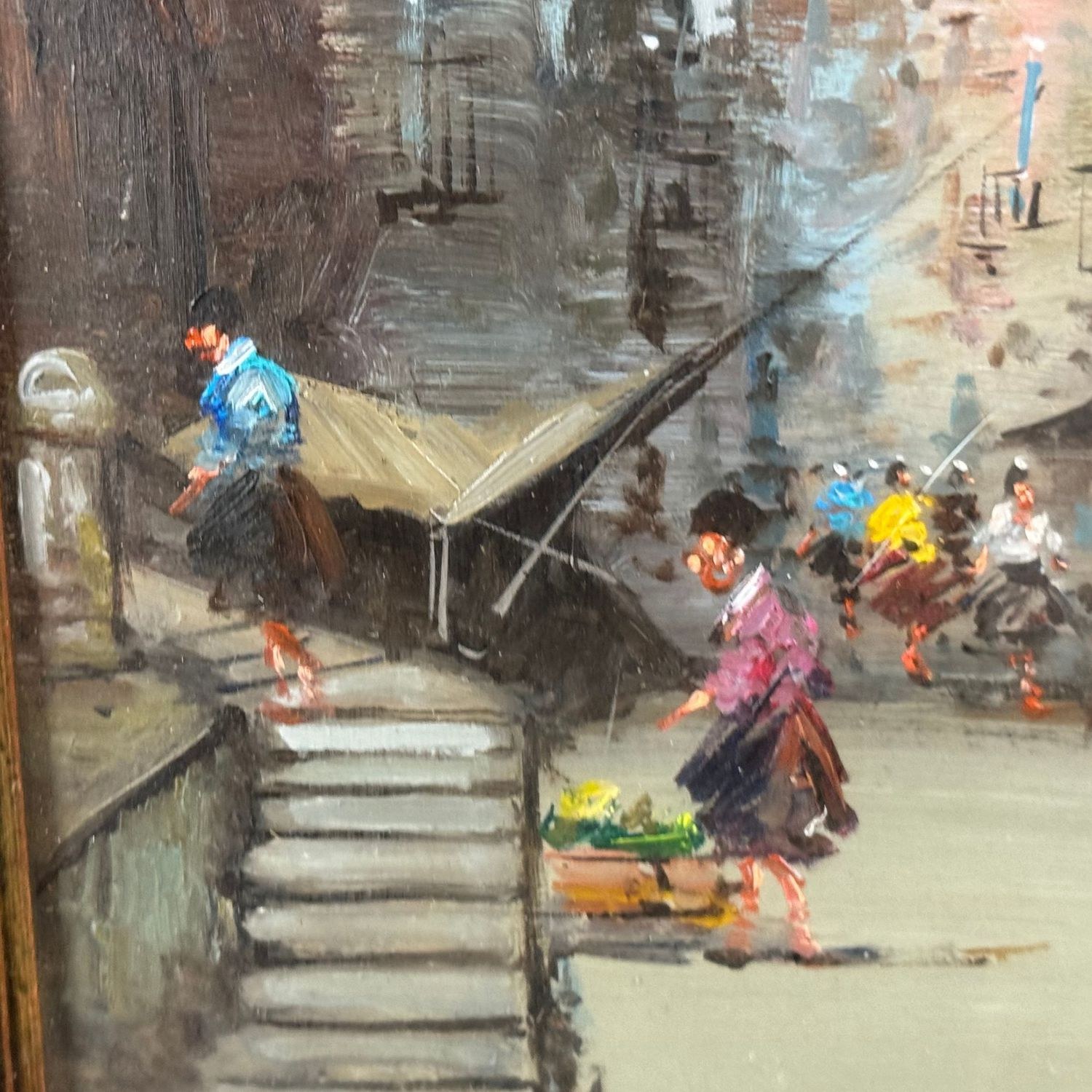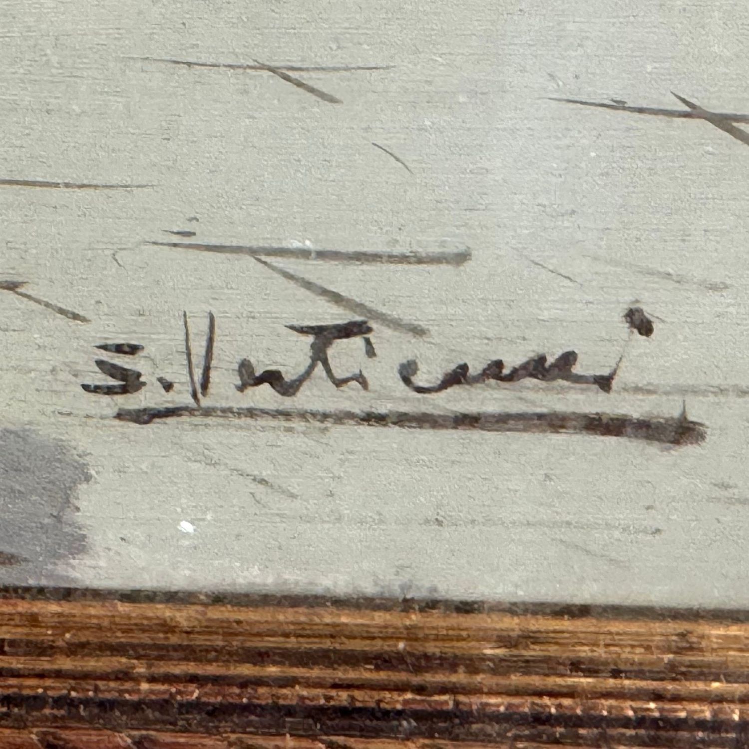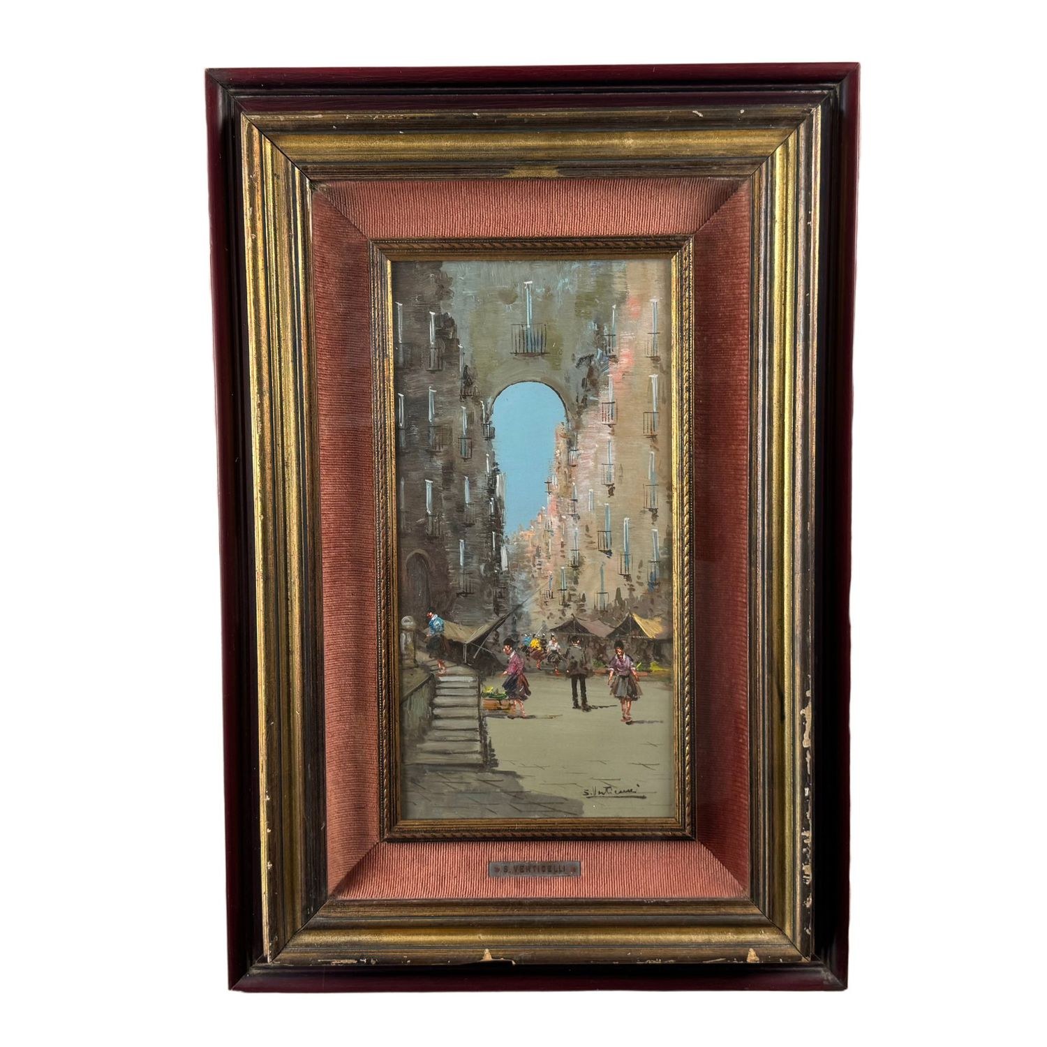 Oil painting on panel, 20th century Italian school, depicting a view of a Neapolitan street. Internal frame dimensions: 20x40 cm. Dimensions including frame: 66x45 cm. Signed lower right by S. Verticelli. Works in good condition.