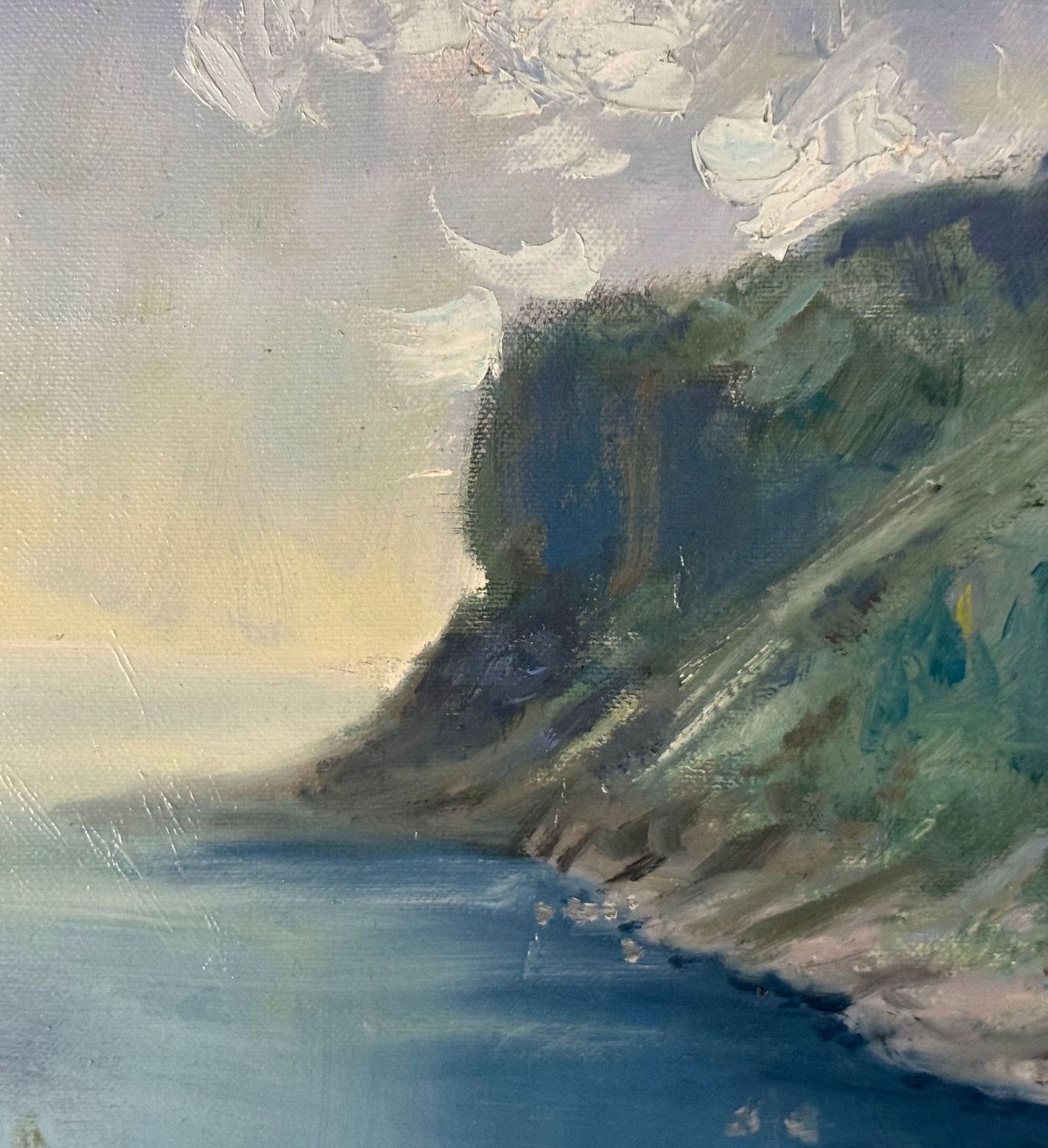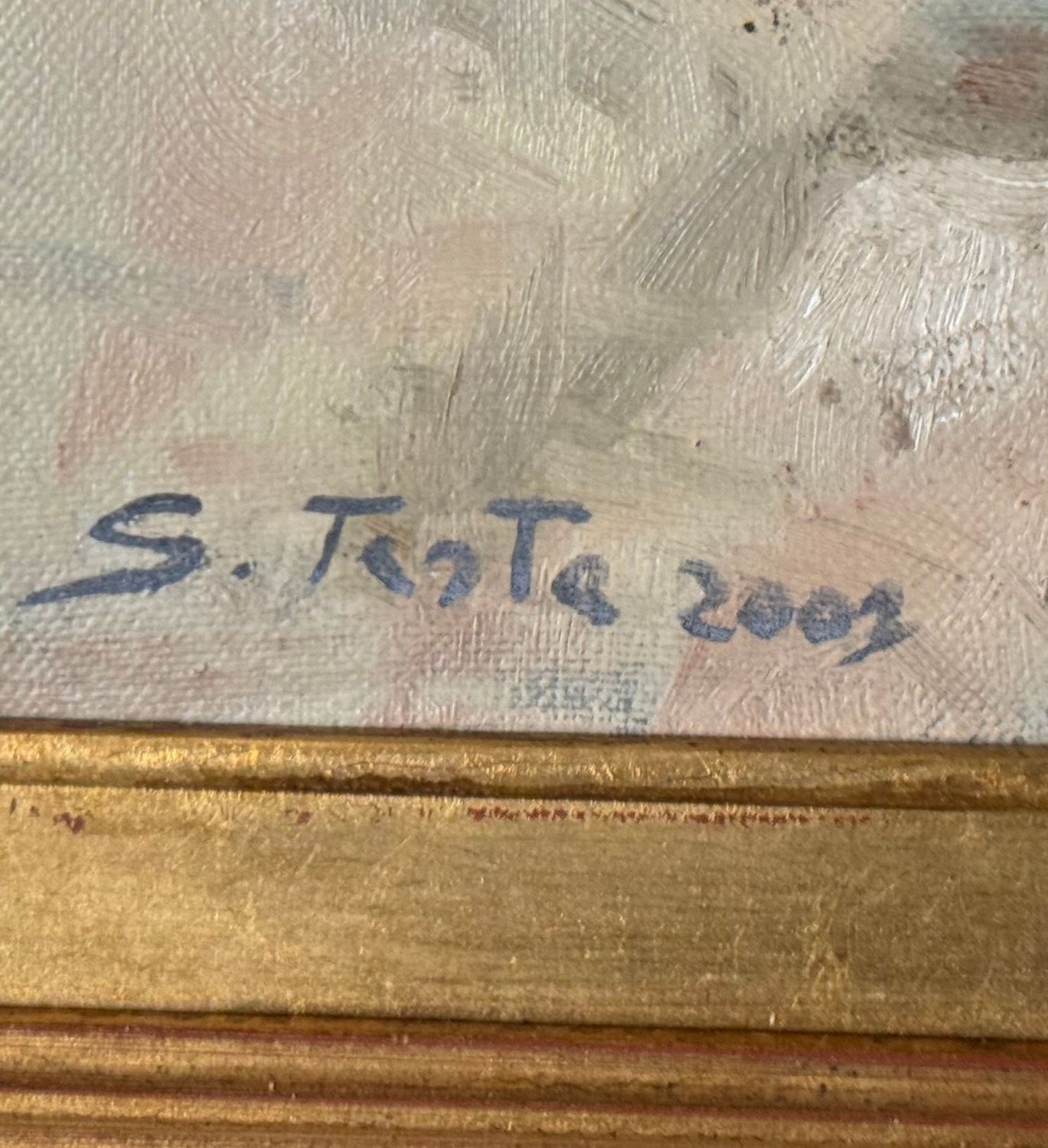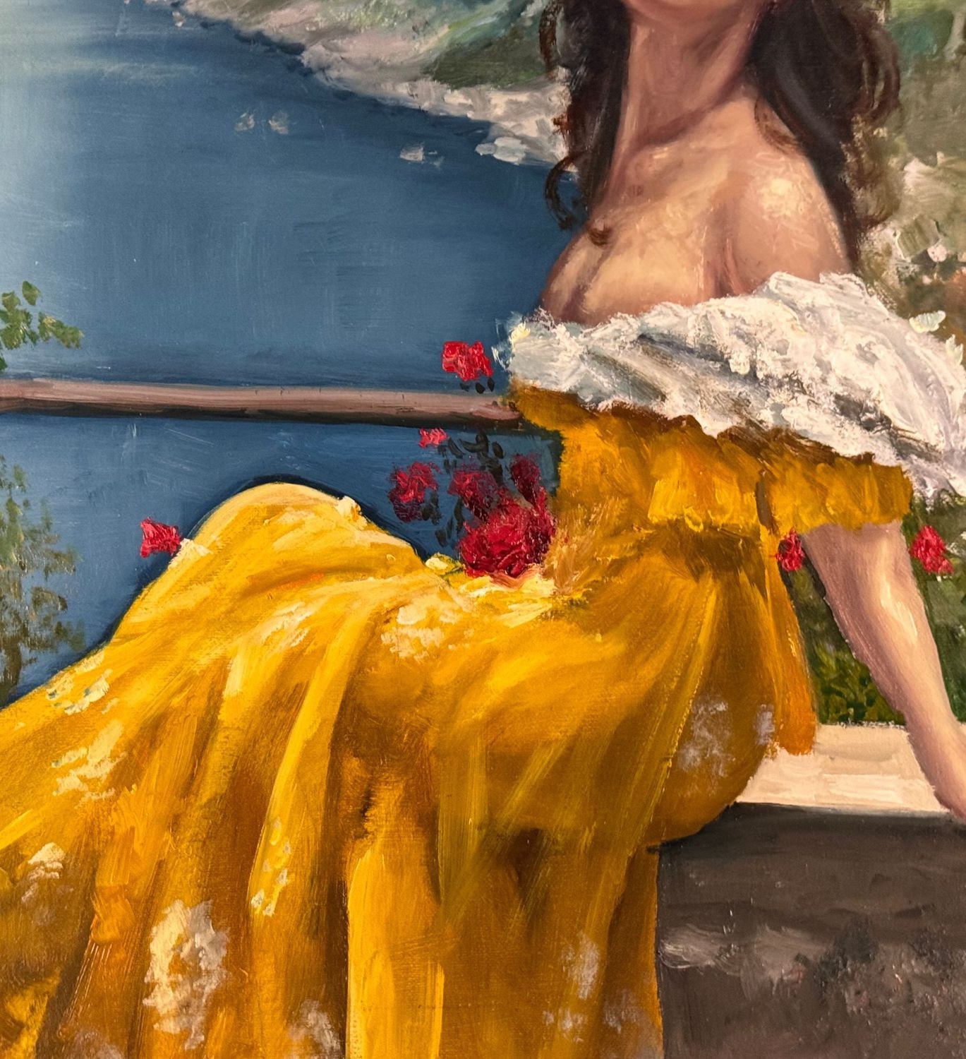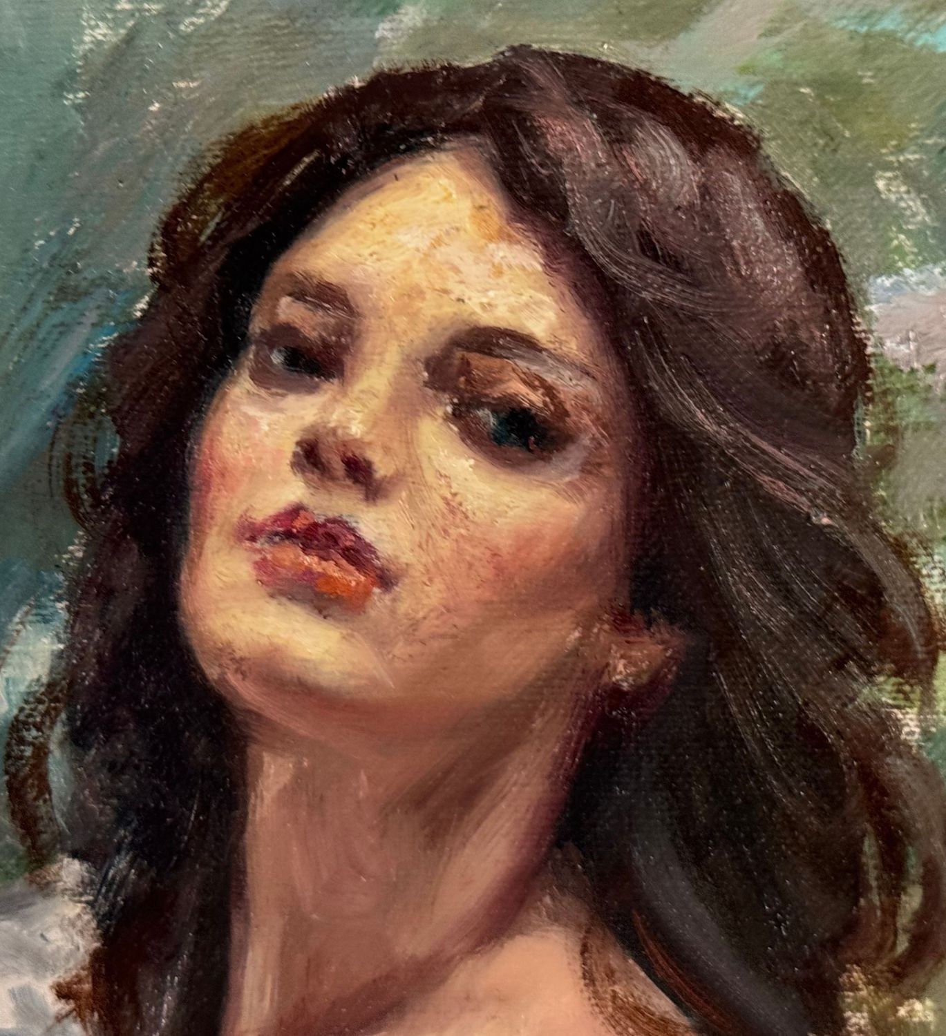 Oil painting on canvas, 20th/21st century Italian school, depicting a portrait of a young woman on the coast. Dimensions including frame: 62x82 cm. Inner frame dimensions: 50x70 cm. Signed lower left by Salvatore Testa. Work in excellent condition.