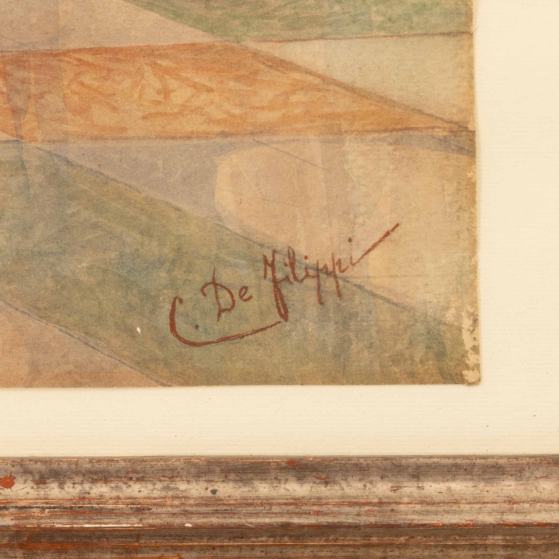 Acquerello raffigurante un gruppo di prelati che giocano a scacchi. Firmato C. De Filippi. In cornice a mecca.