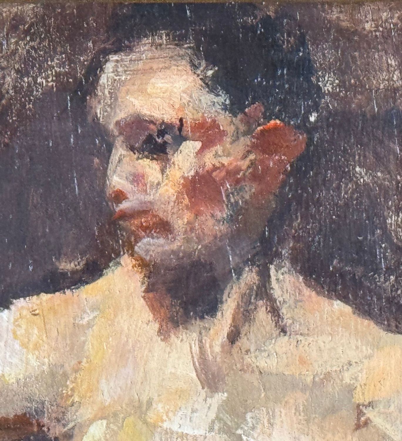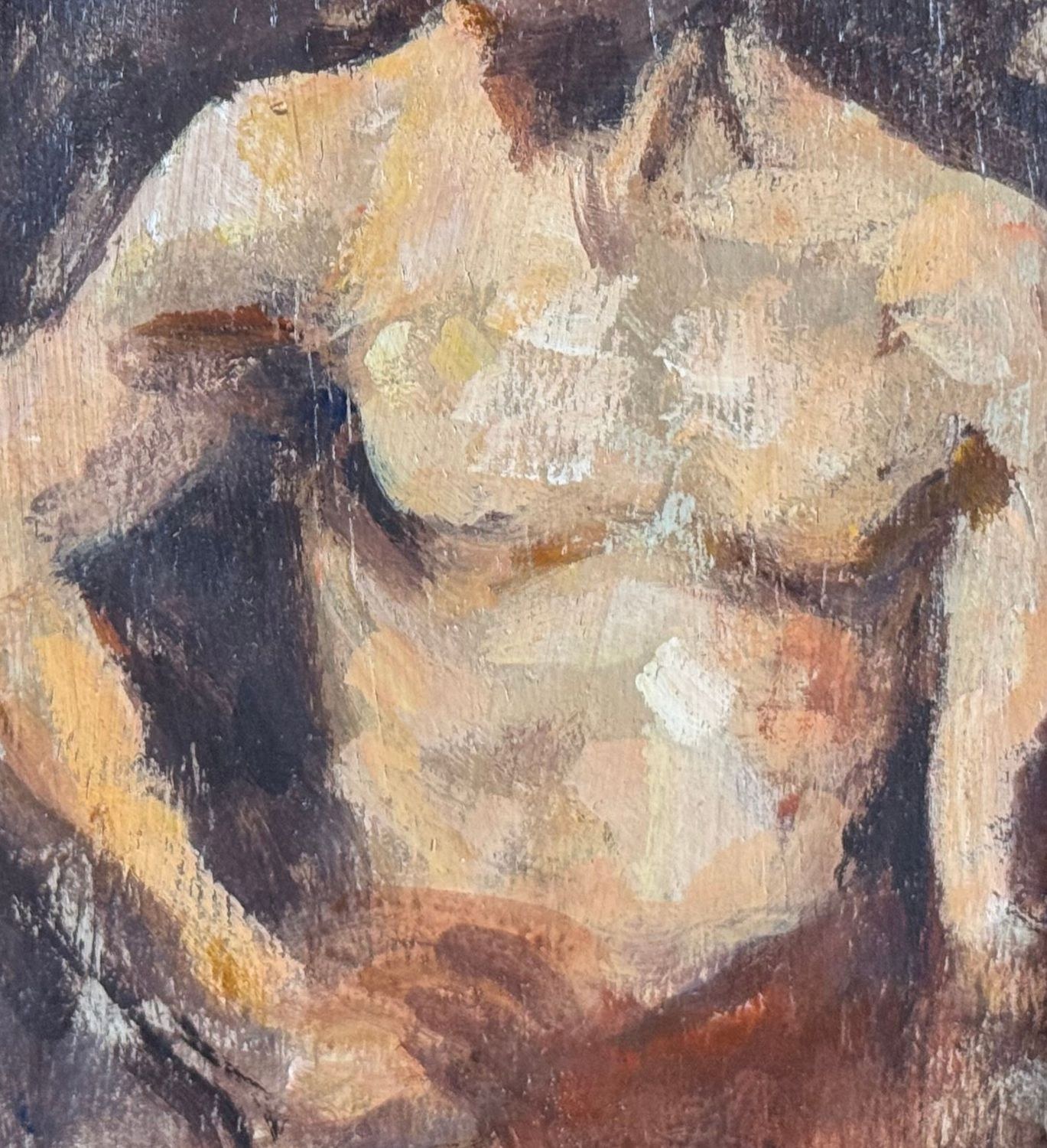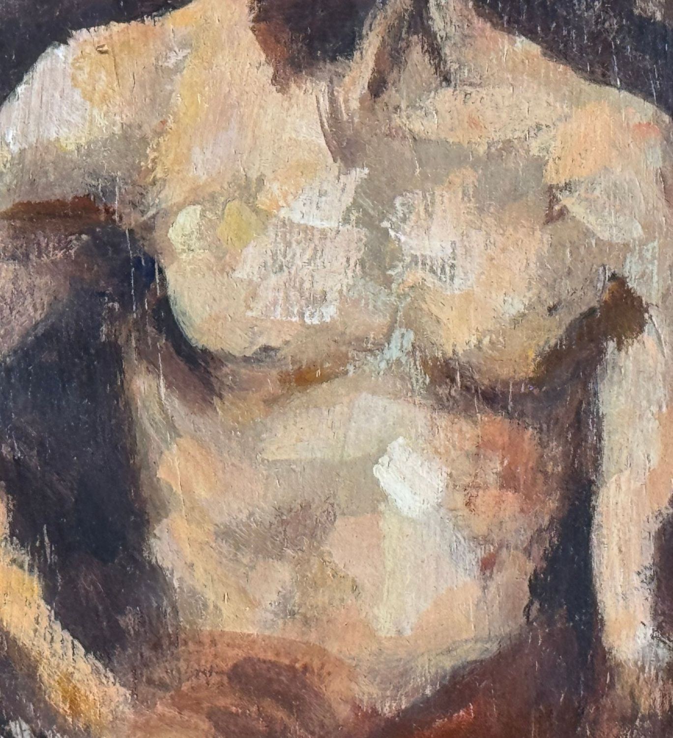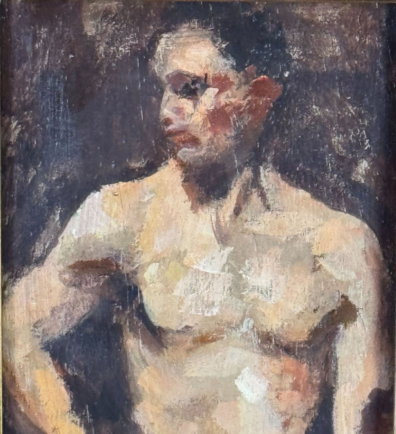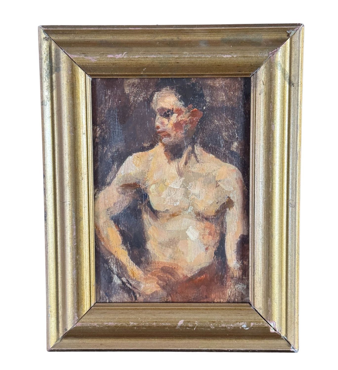 Oil on panel painting, 20th-century period, Italian school, depicting a male nude, artistic sketch. Dimensions including frame: 19x24 cm. Inner frame dimensions: 18x13 cm. Anonymous artist. The artwork is in good condition.