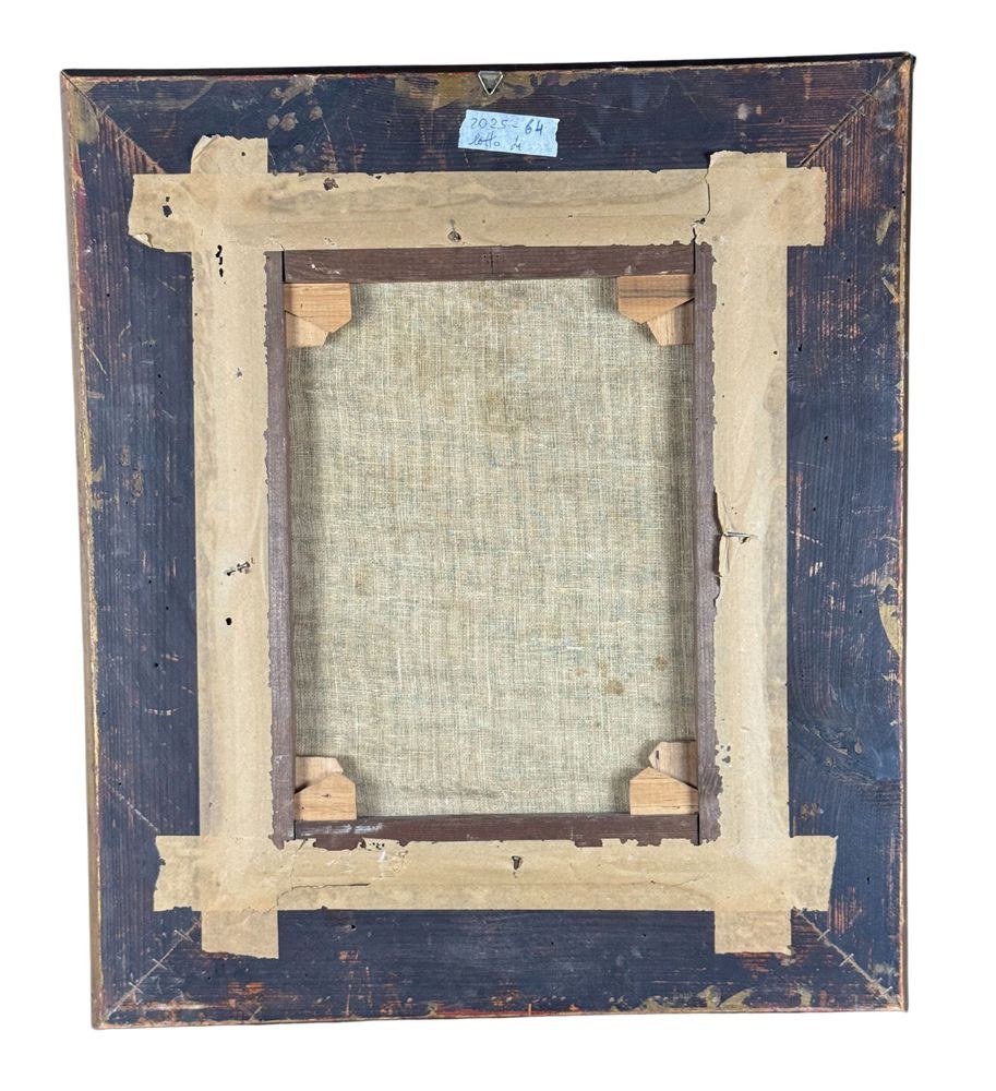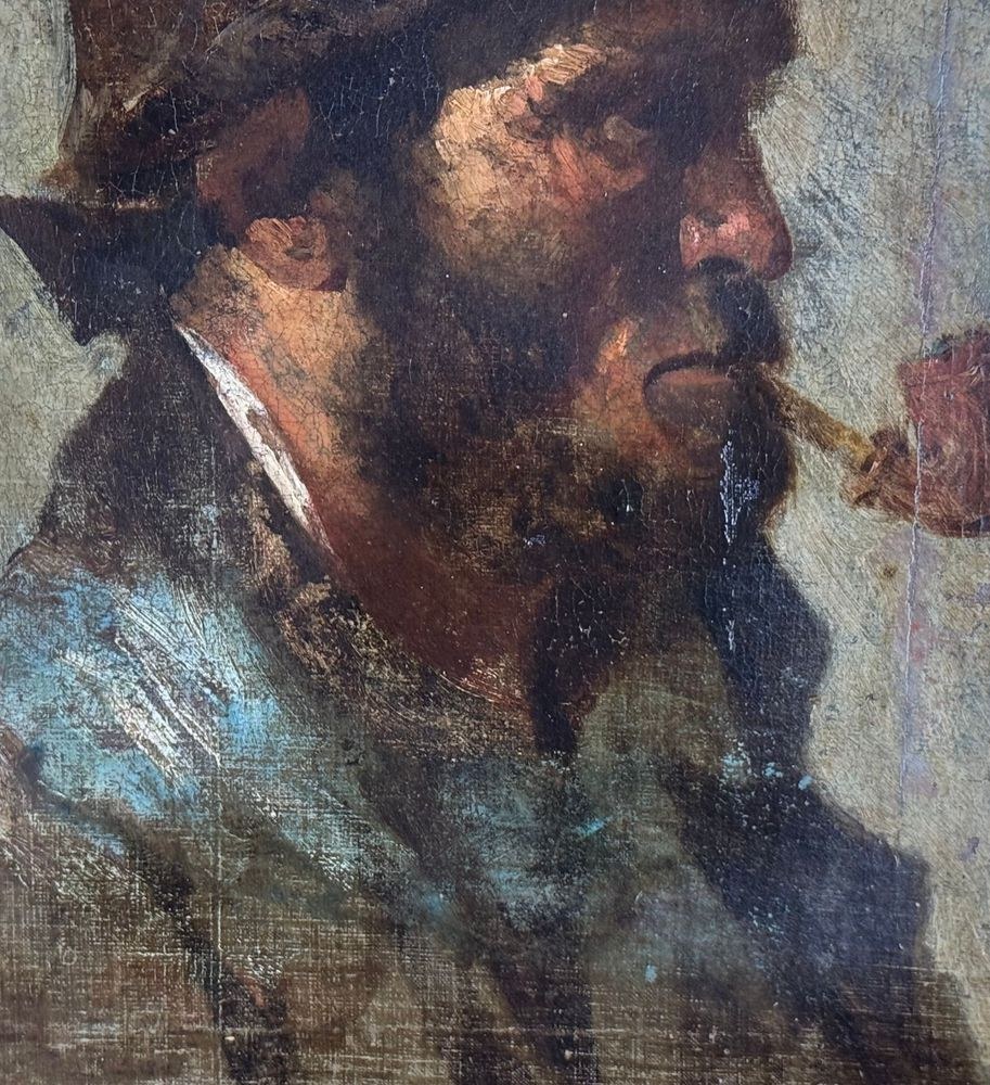 Oil painting on canvas from the 19th century, Italian school, depicting a portrait of a man with a pipe. The work measures 56x66 cm including the frame, with an internal size of 35x45 cm. Anonymous artist. The painting is in good condition, with minor signs of age as shown in the attached photos.