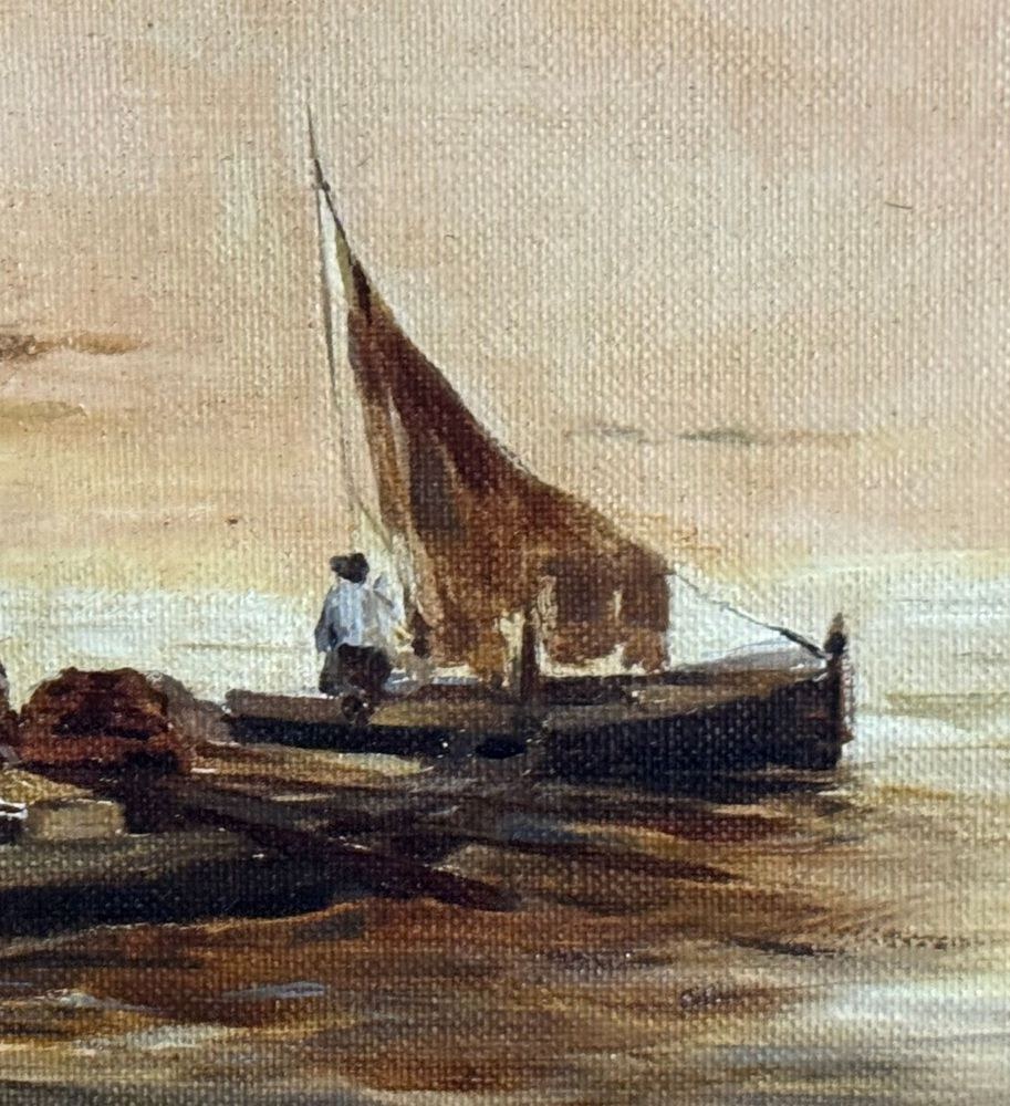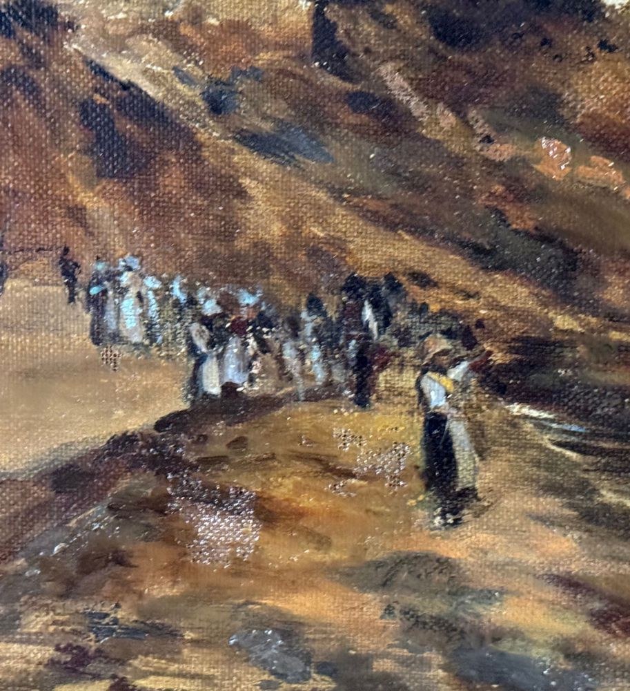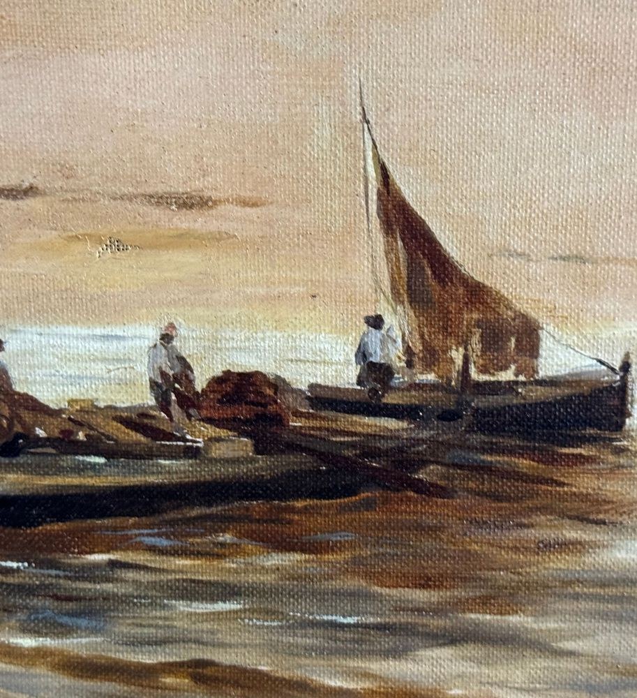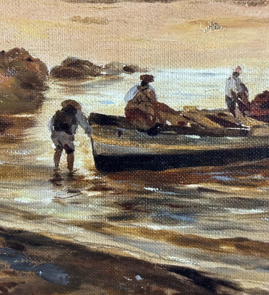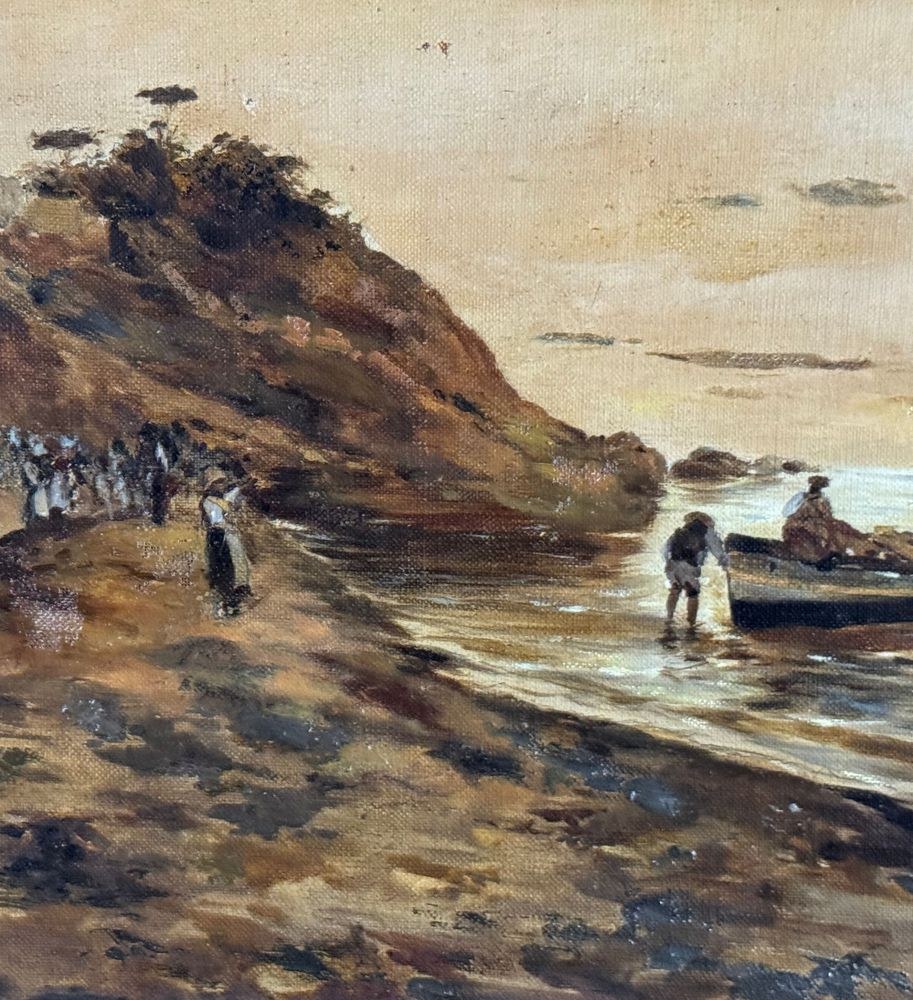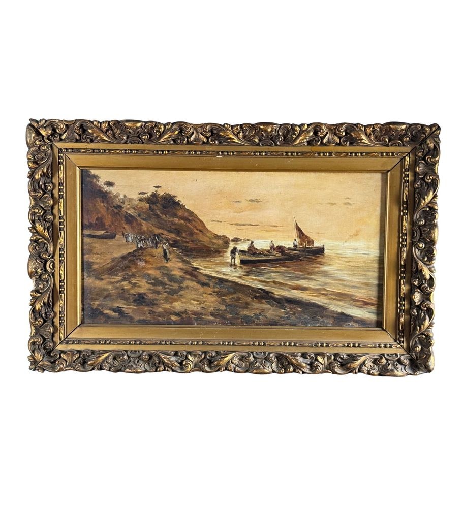Oil on canvas painting, 19th/20th-century Neapolitan school, depicting a view of the Neapolitan coastline. Dimensions including frame: 42x70 cm. Dimensions within the frame: 28x54 cm. Anonymous artist. The work is in good condition.