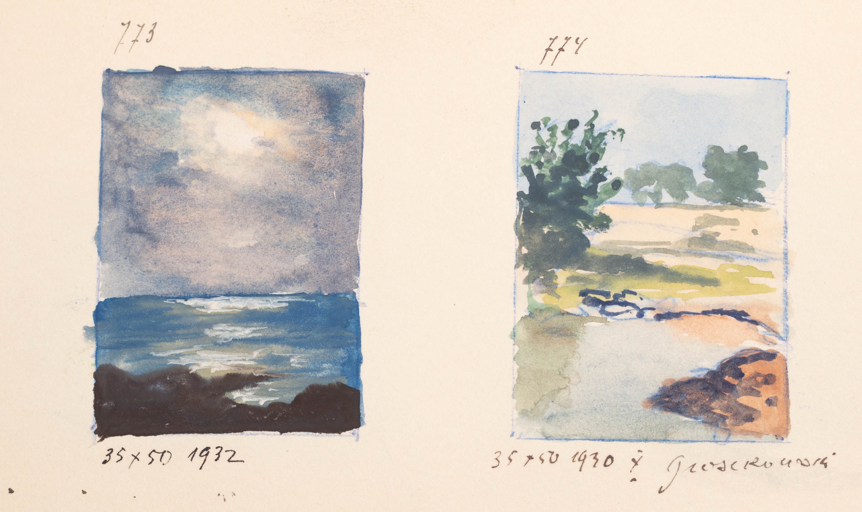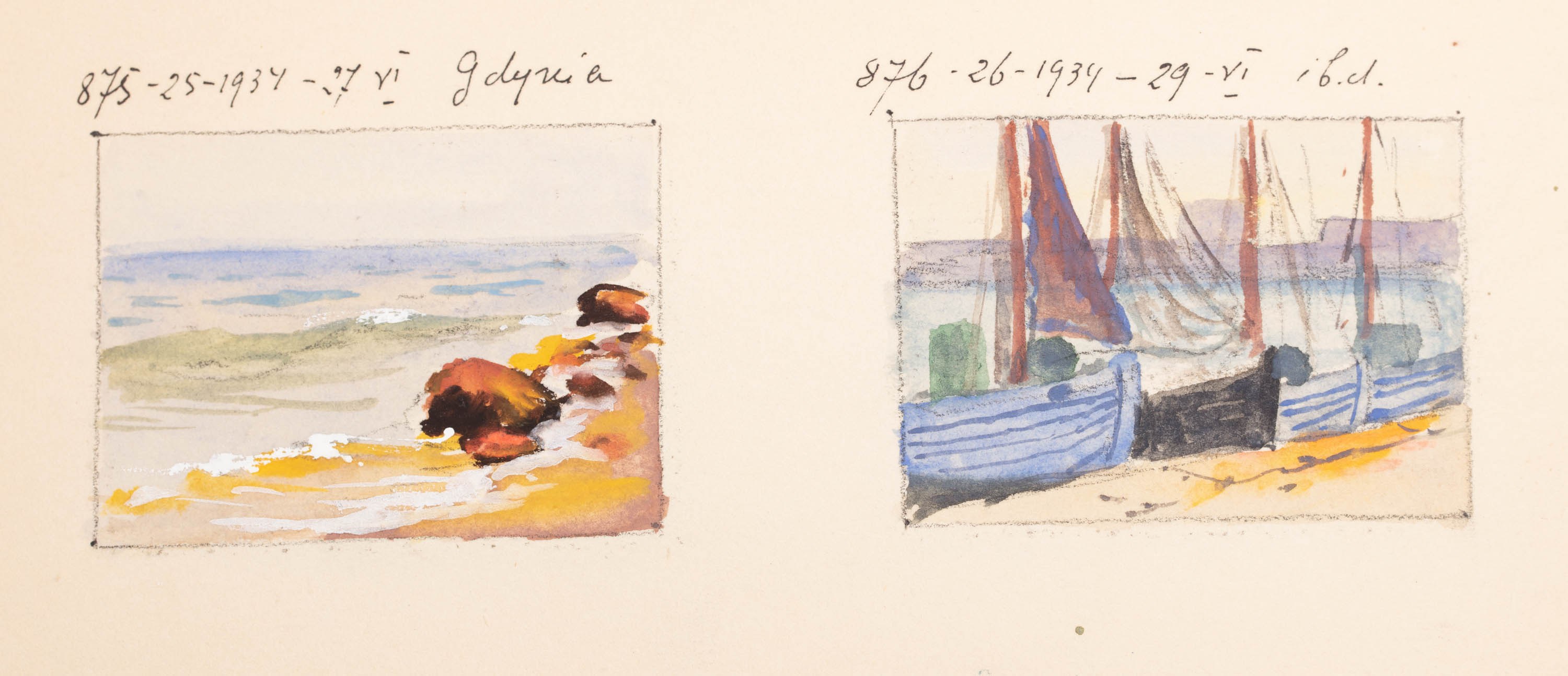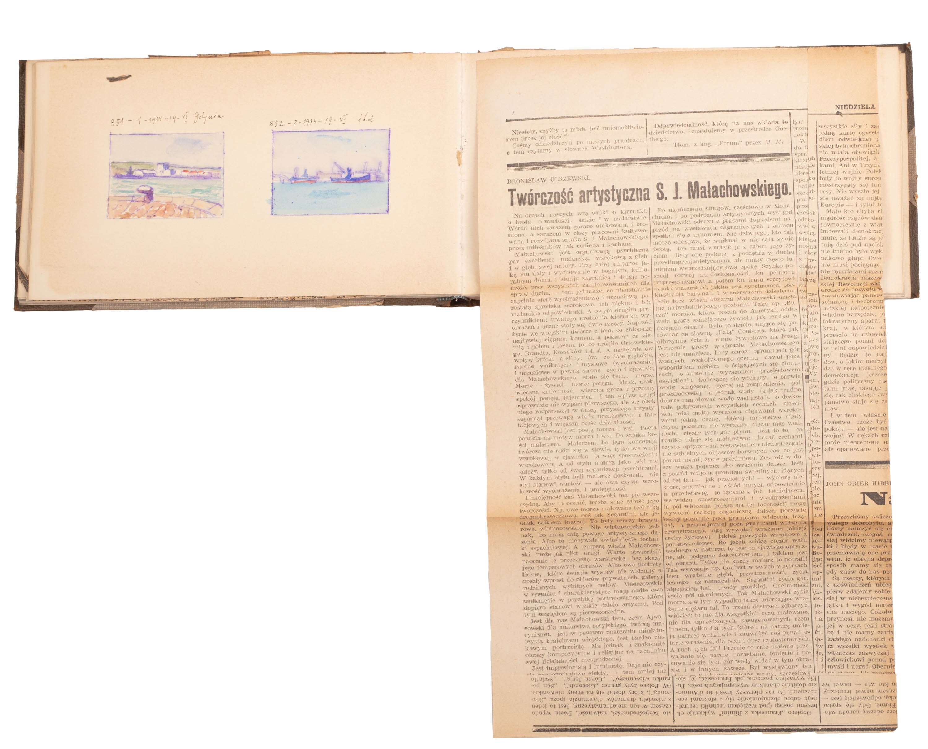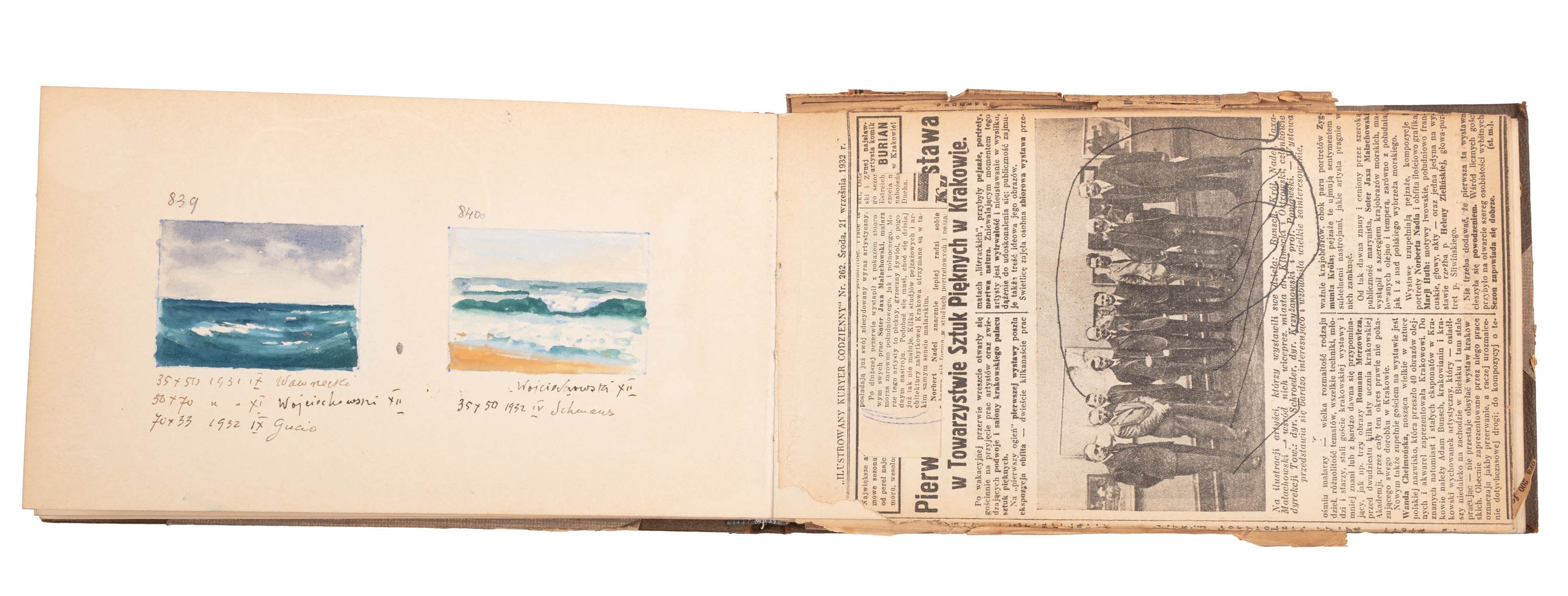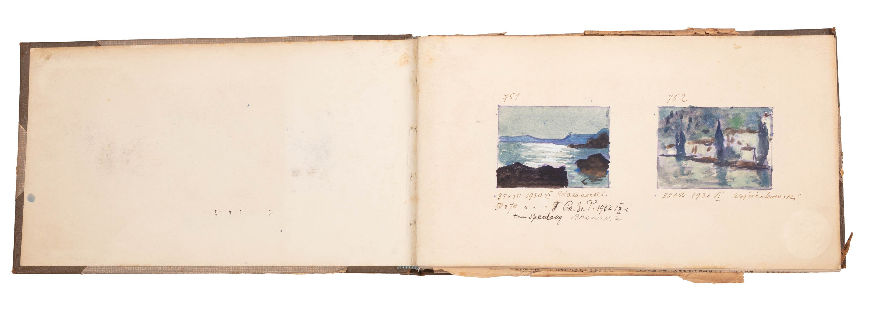Autorski szkicownik z około 180 akwarelami, 3 zdjęciami obrazów oraz wycinkami prasowymi zebranymi przez malarza, lata 1930 - 1939