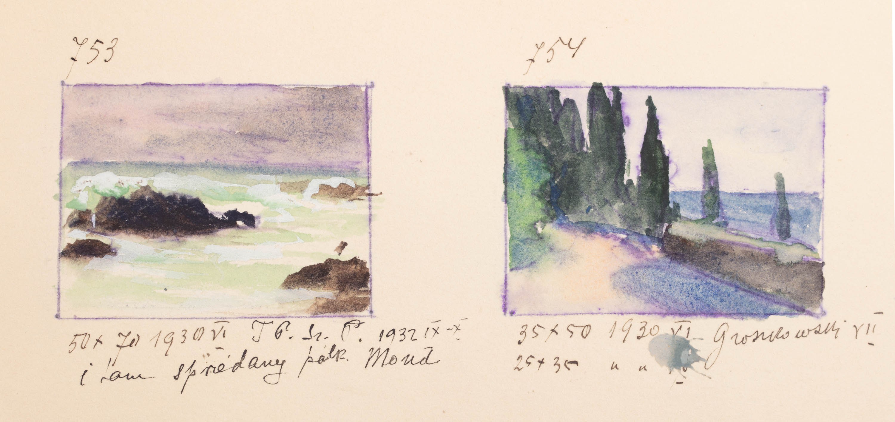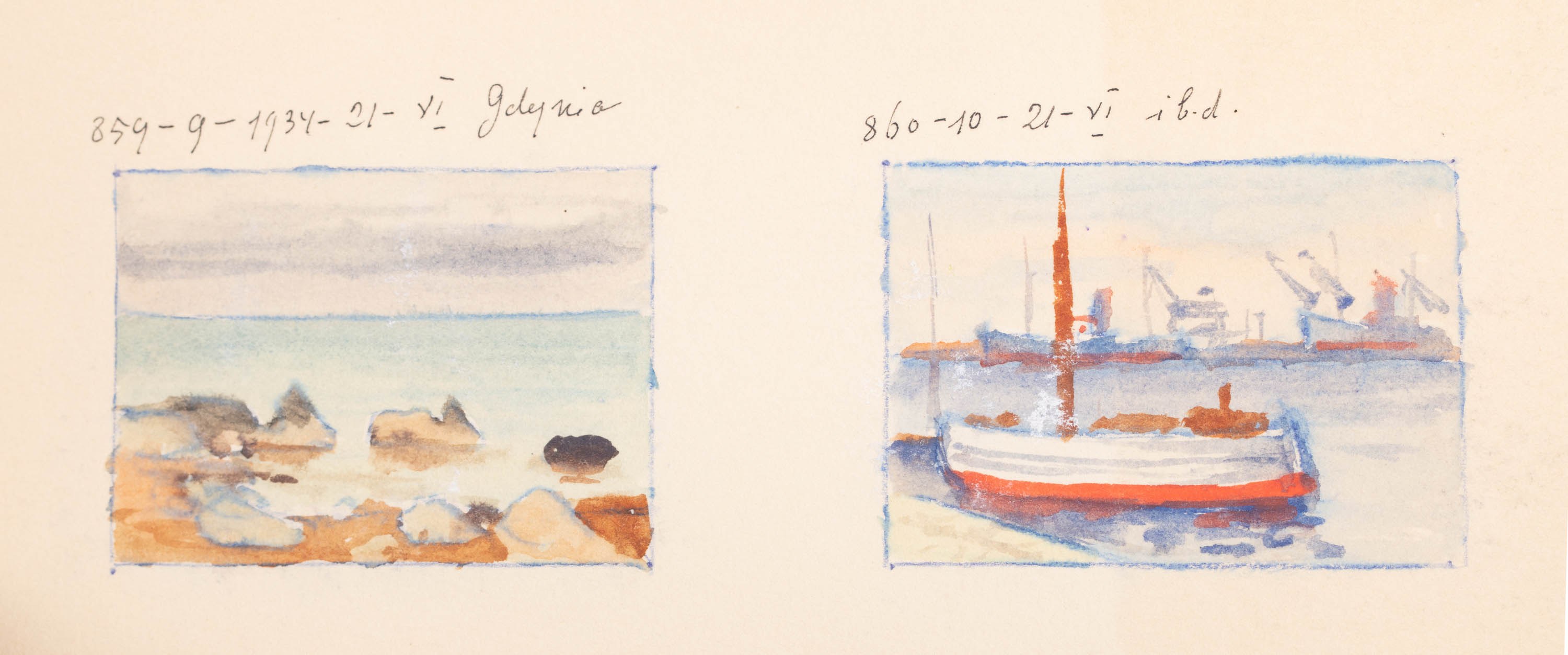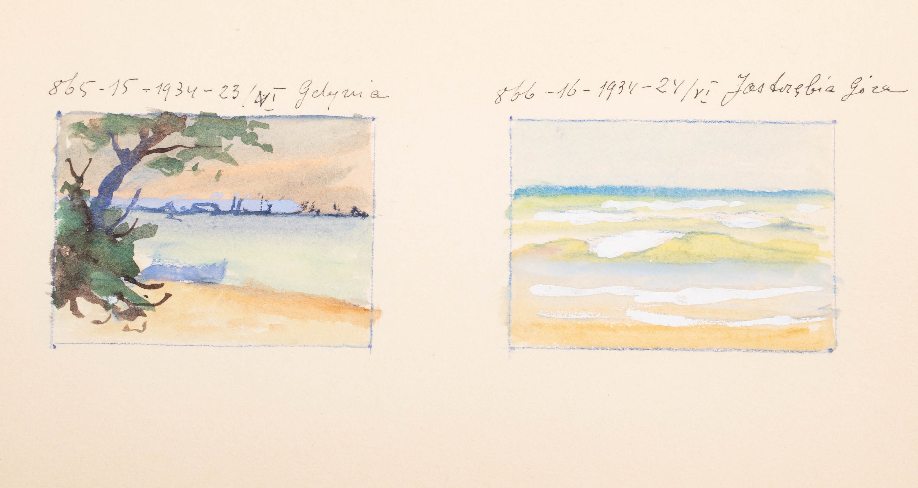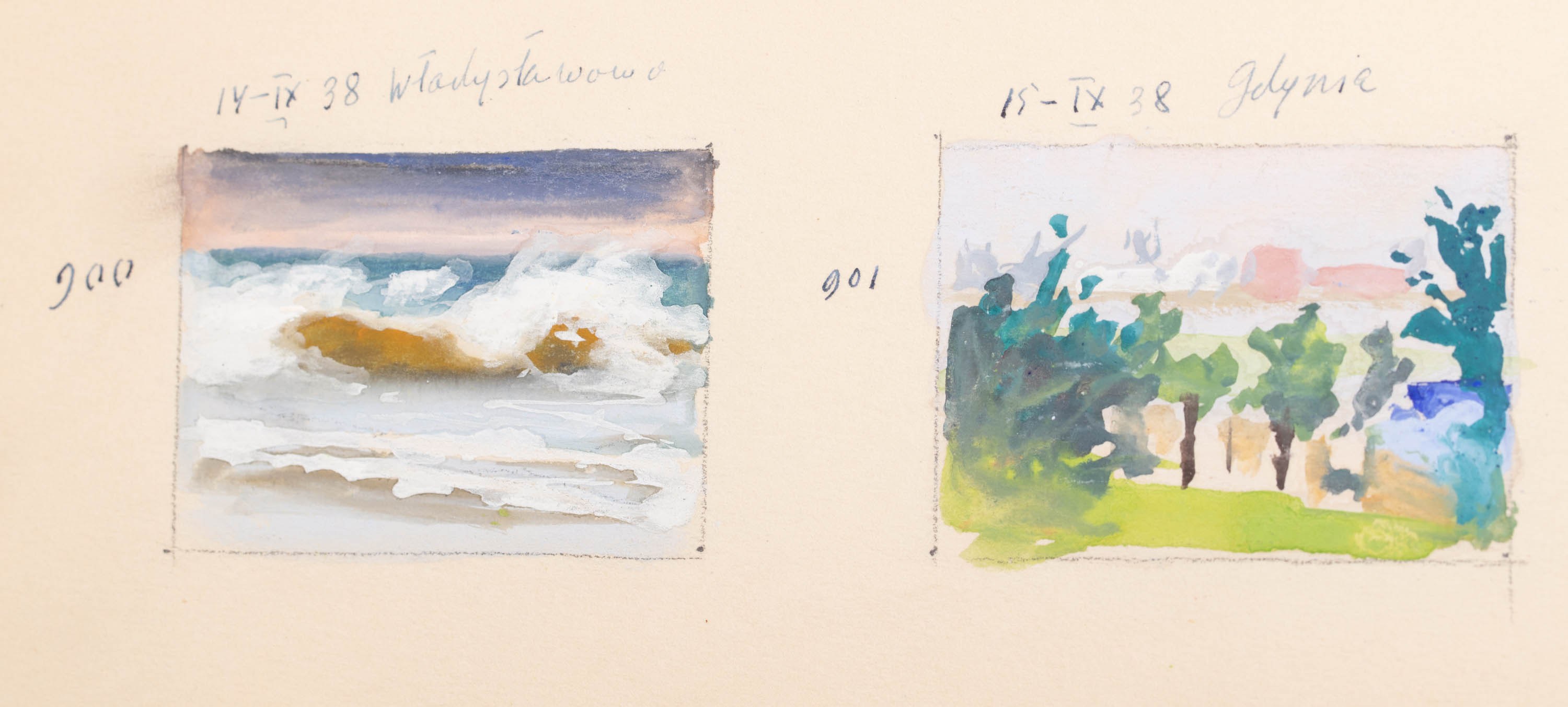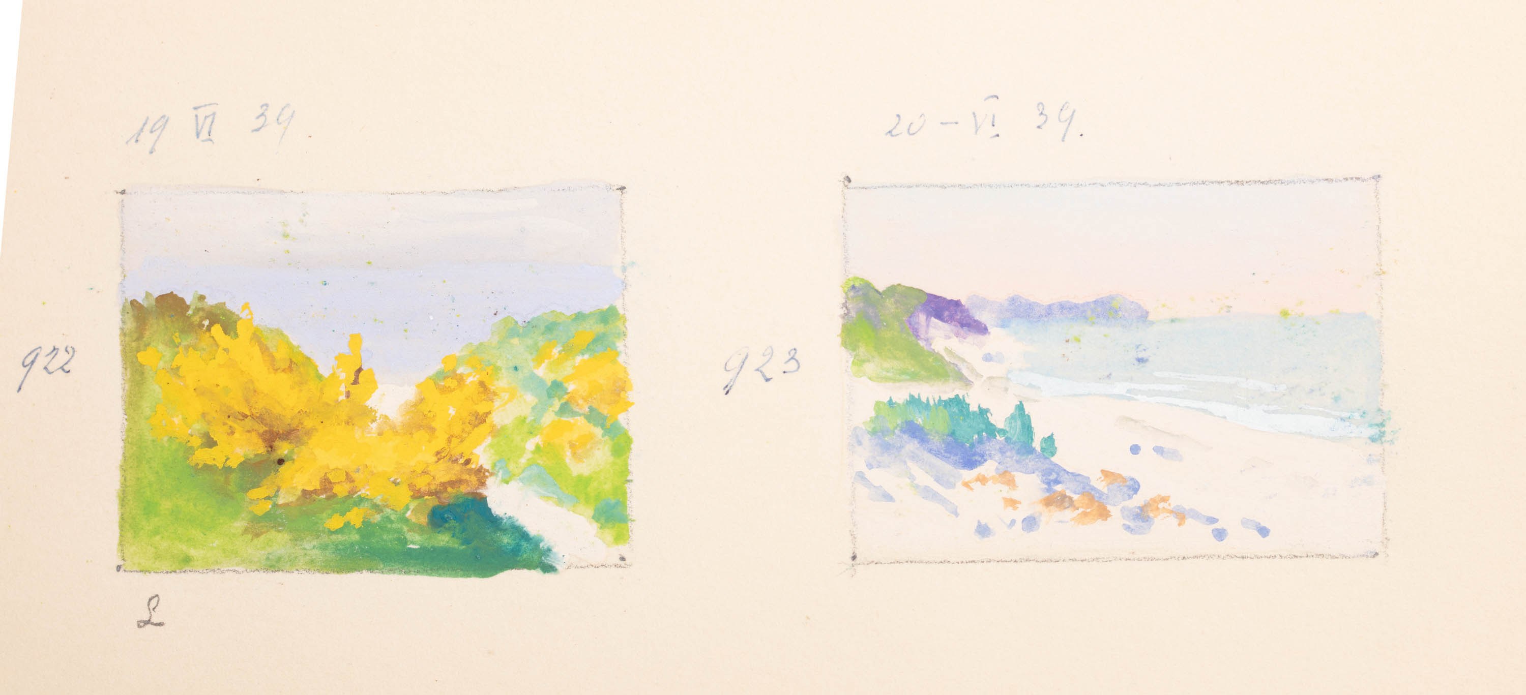 Autorski szkicownik z około 180 akwarelami, 3 zdjęciami obrazów oraz wycinkami prasowymi zebranymi przez malarza, lata 1930 - 1939