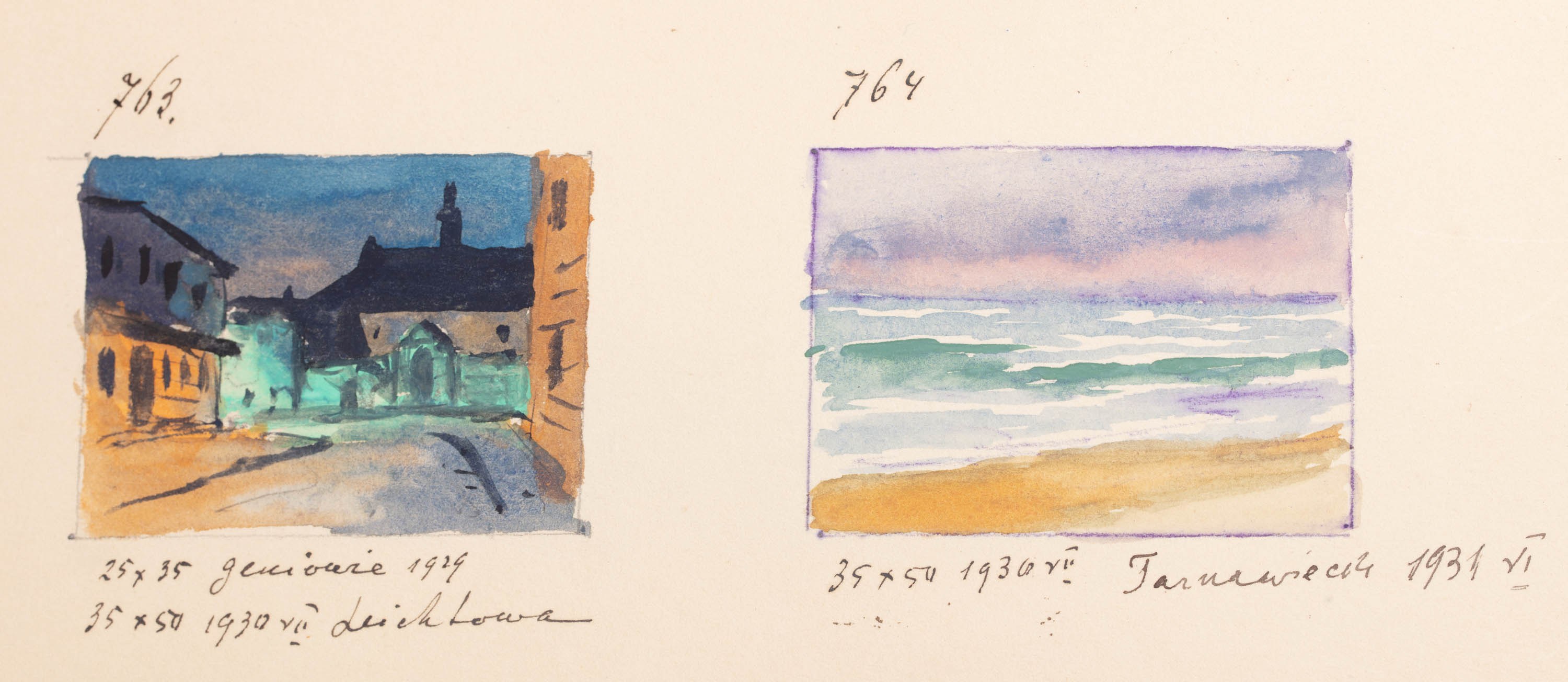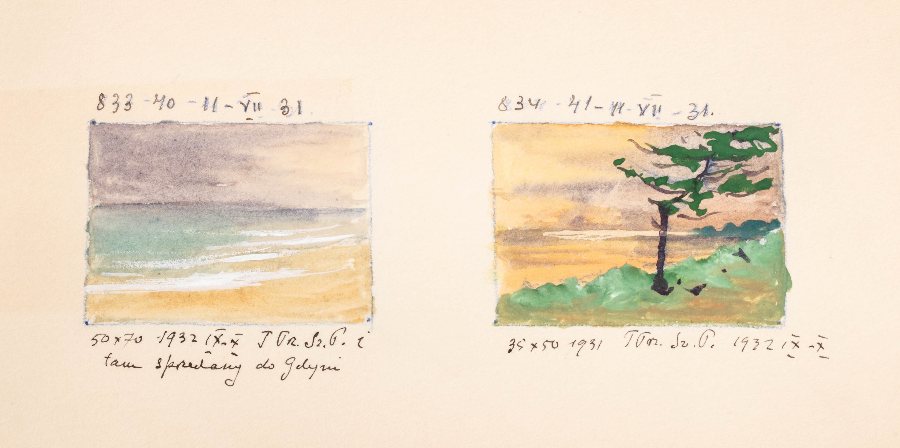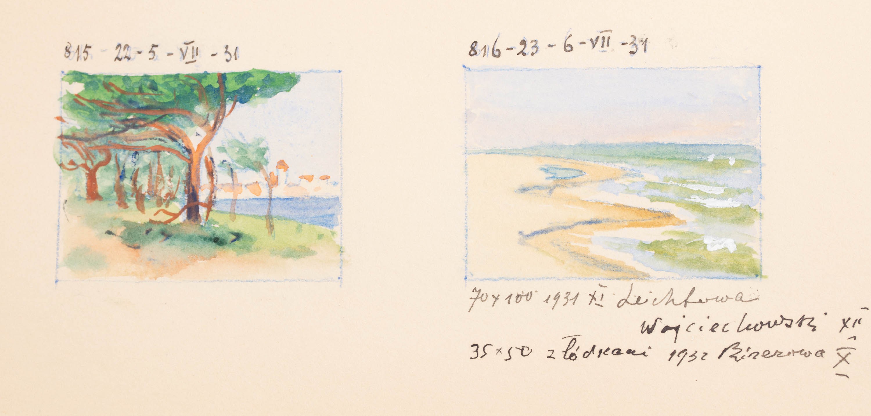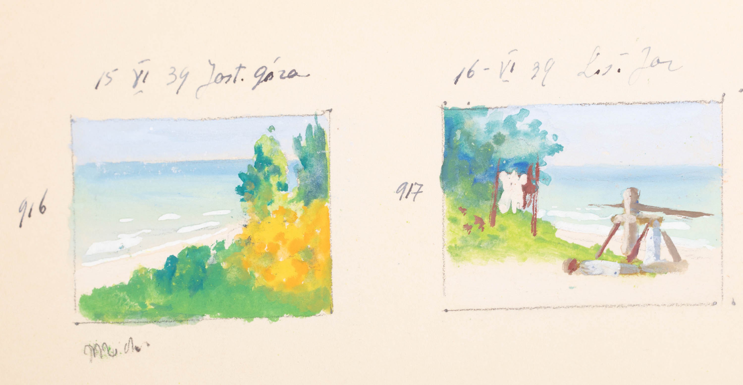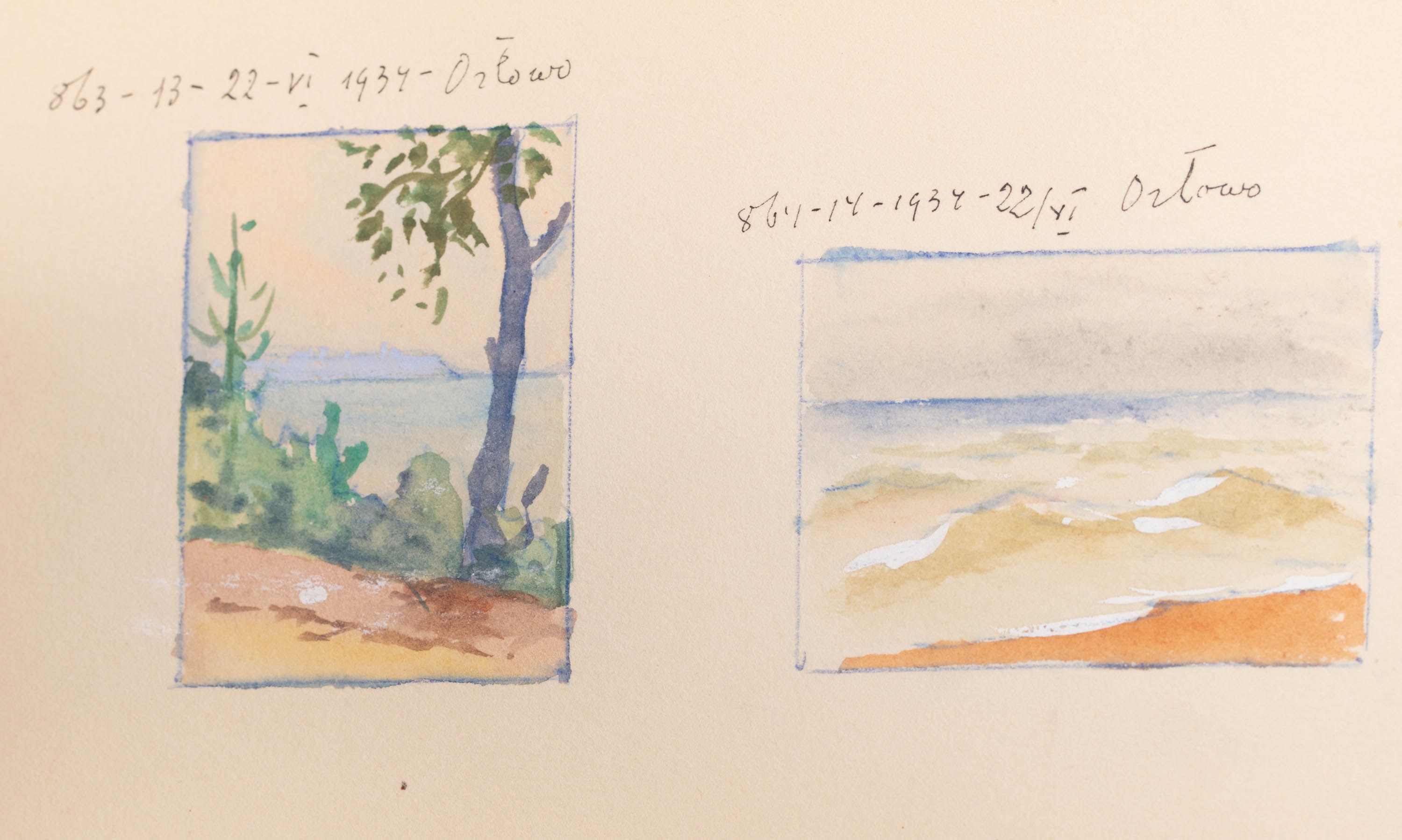 Autorski szkicownik z około 180 akwarelami, 3 zdjęciami obrazów oraz wycinkami prasowymi zebranymi przez malarza, lata 1930 - 1939