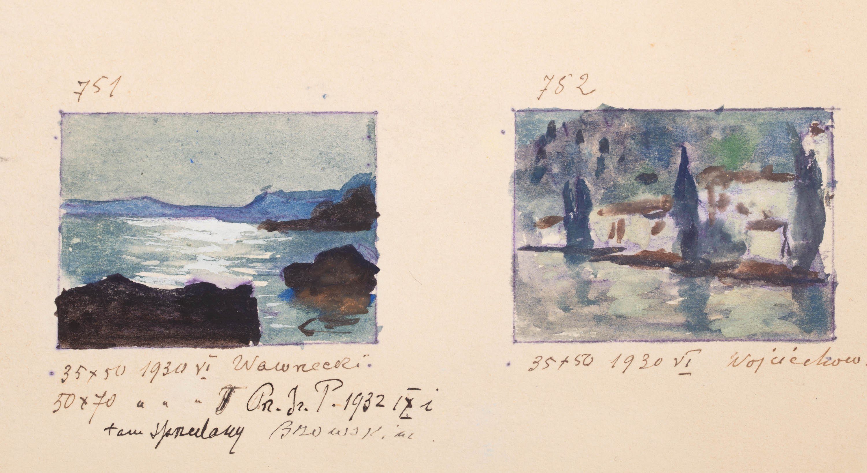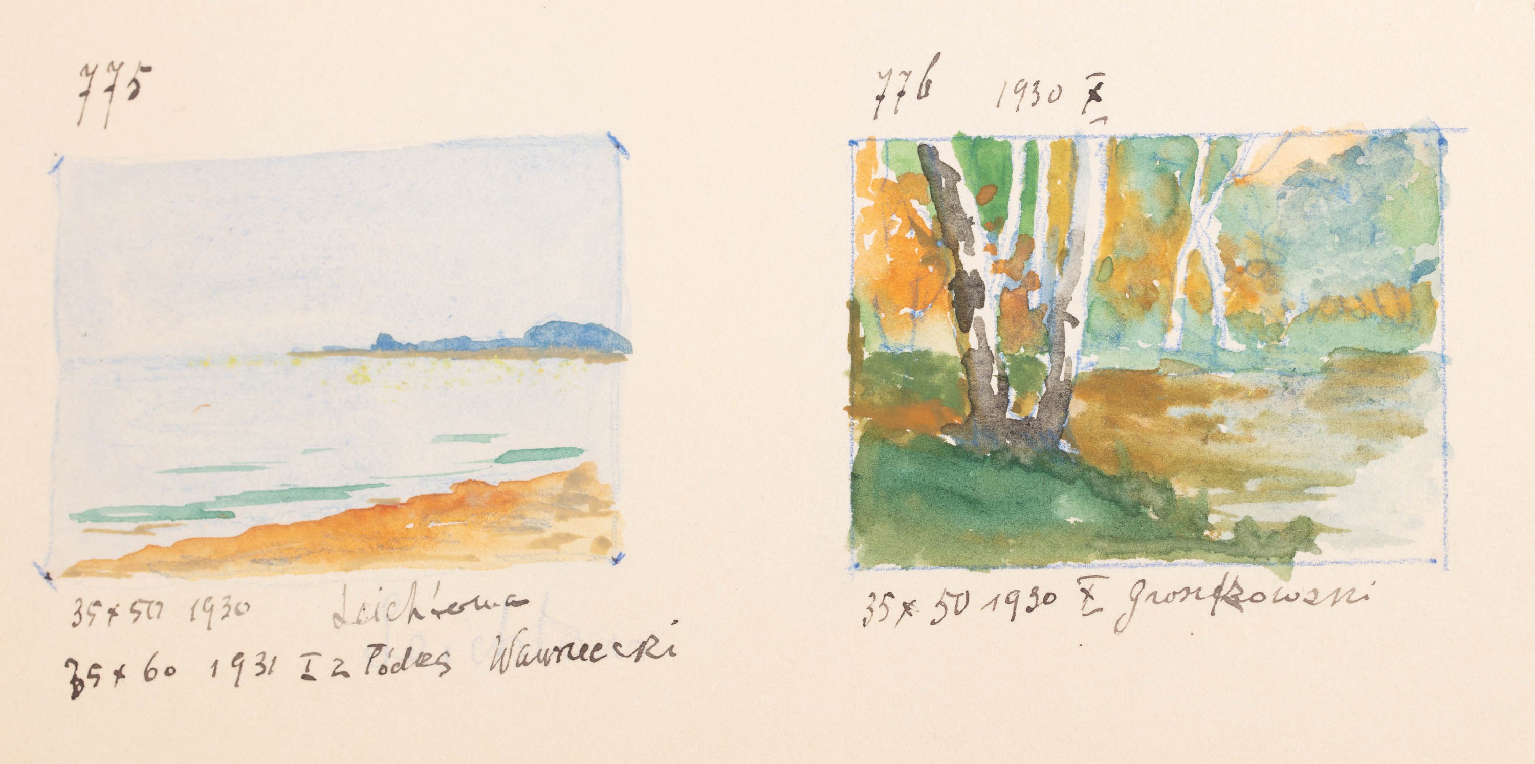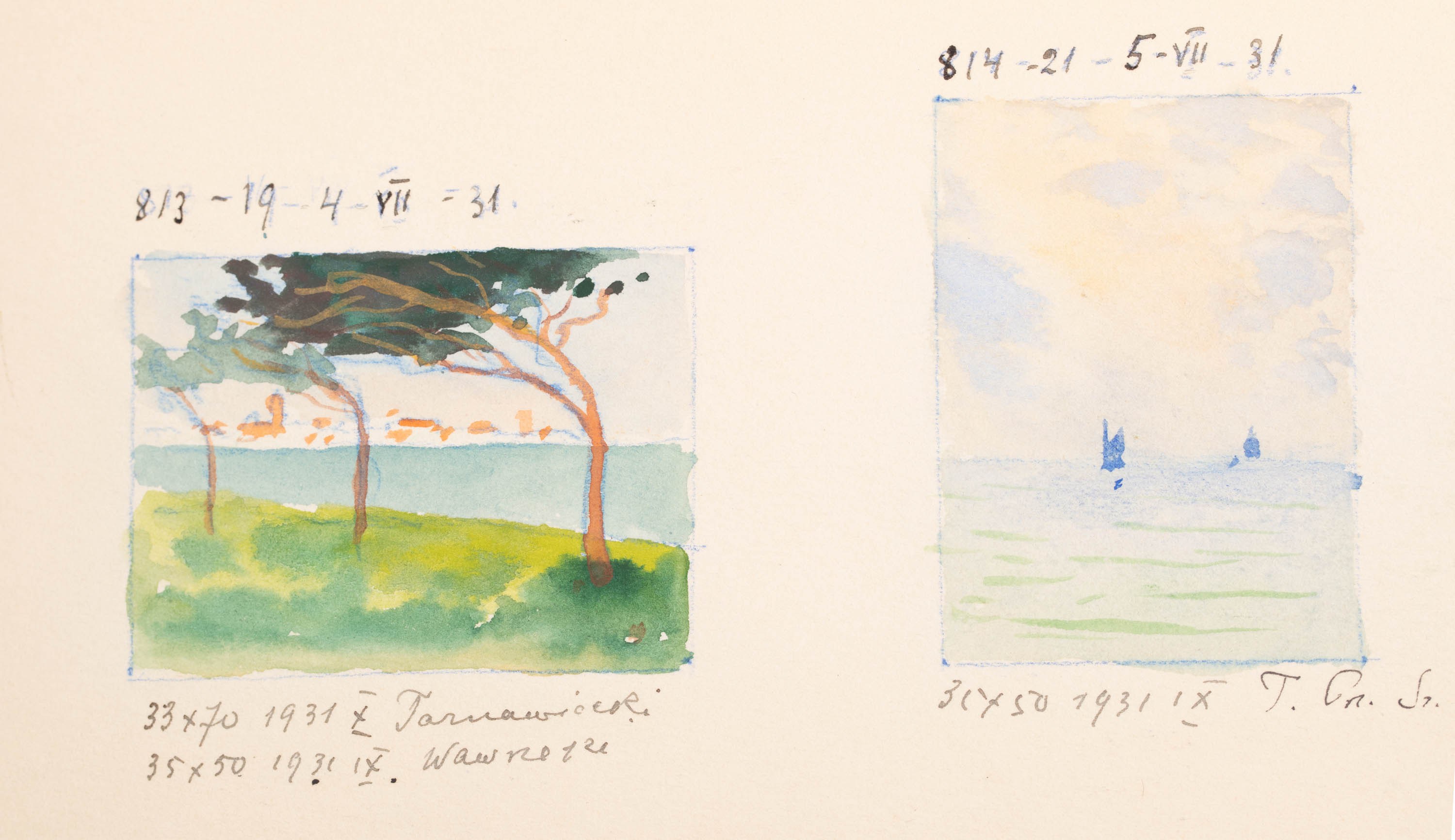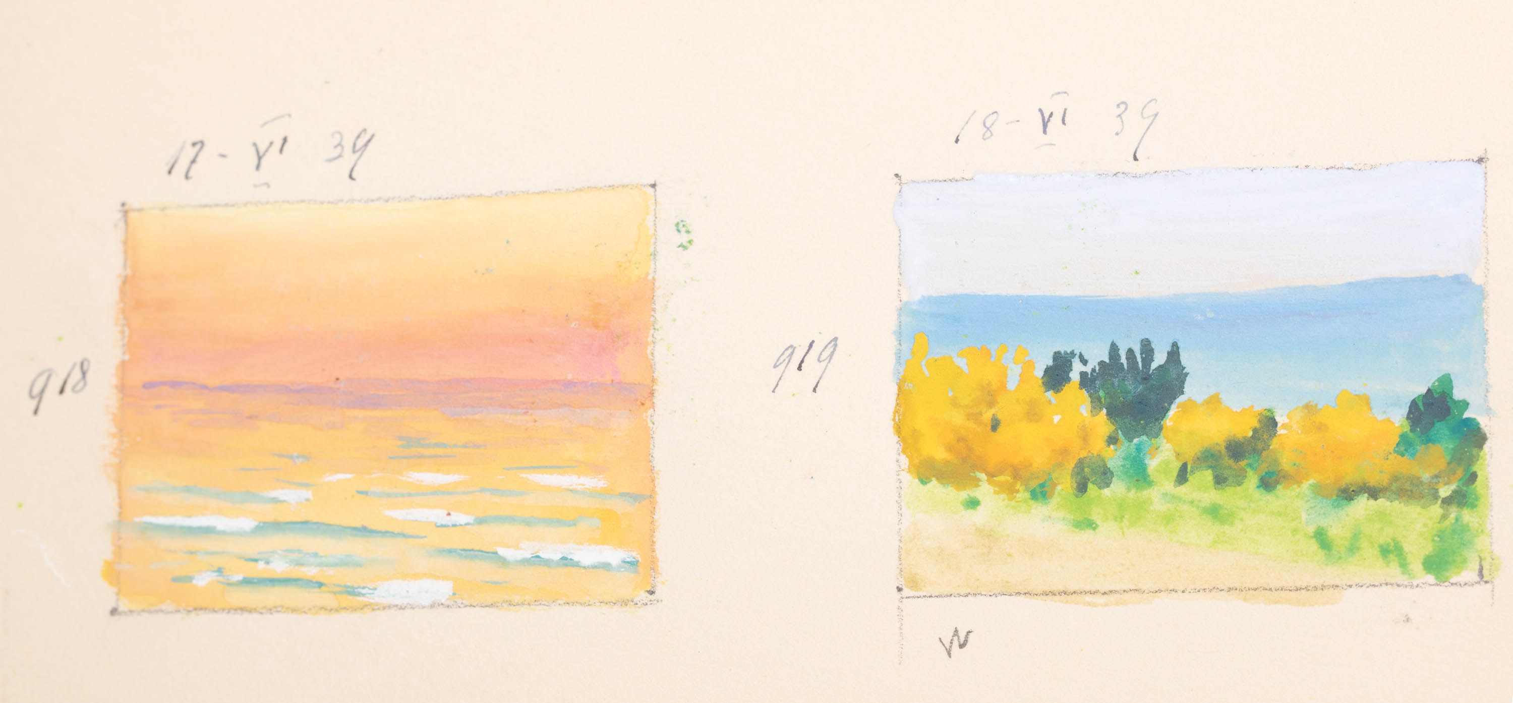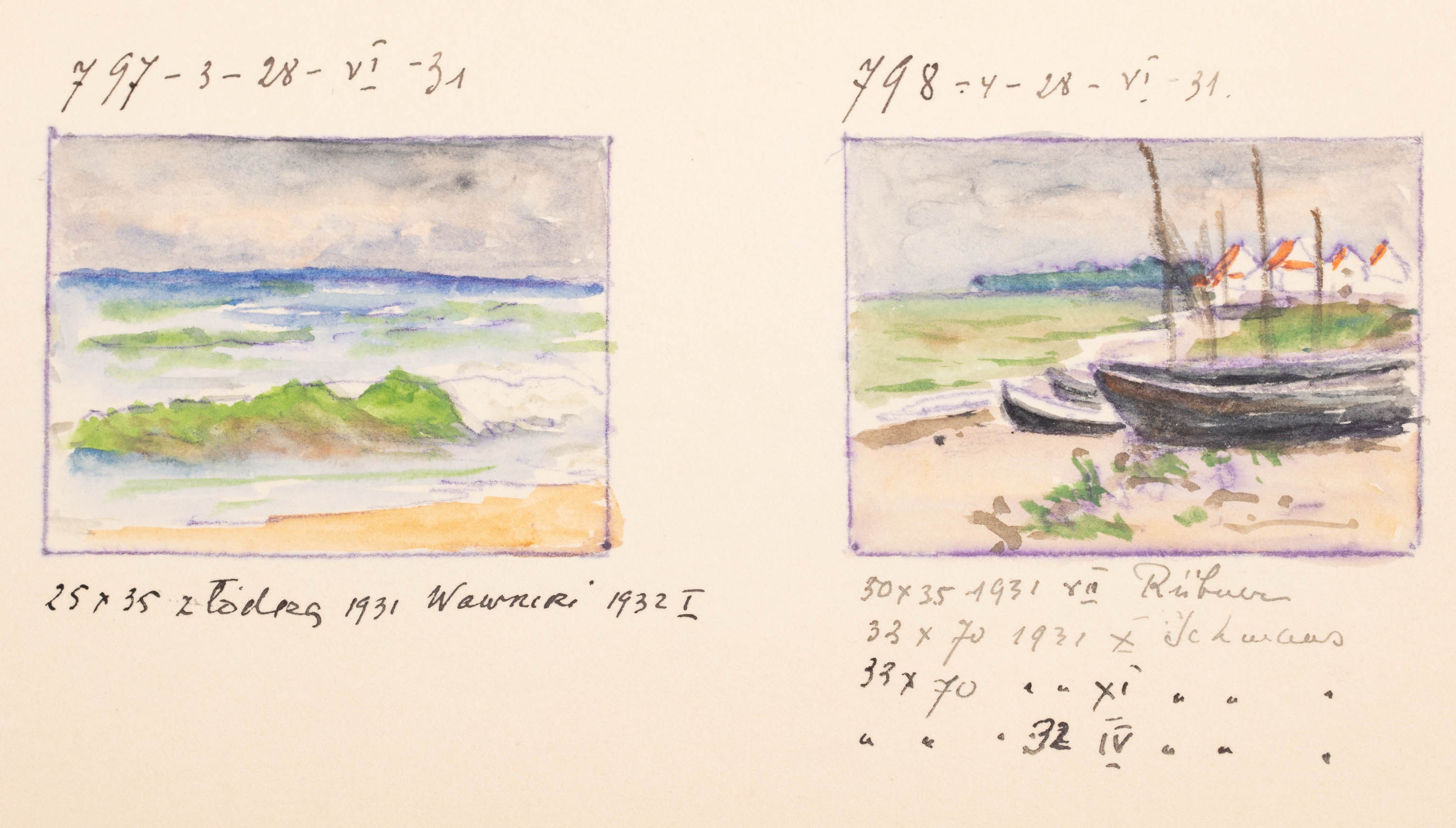 Autorski szkicownik z około 180 akwarelami, 3 zdjęciami obrazów oraz wycinkami prasowymi zebranymi przez malarza, lata 1930 - 1939